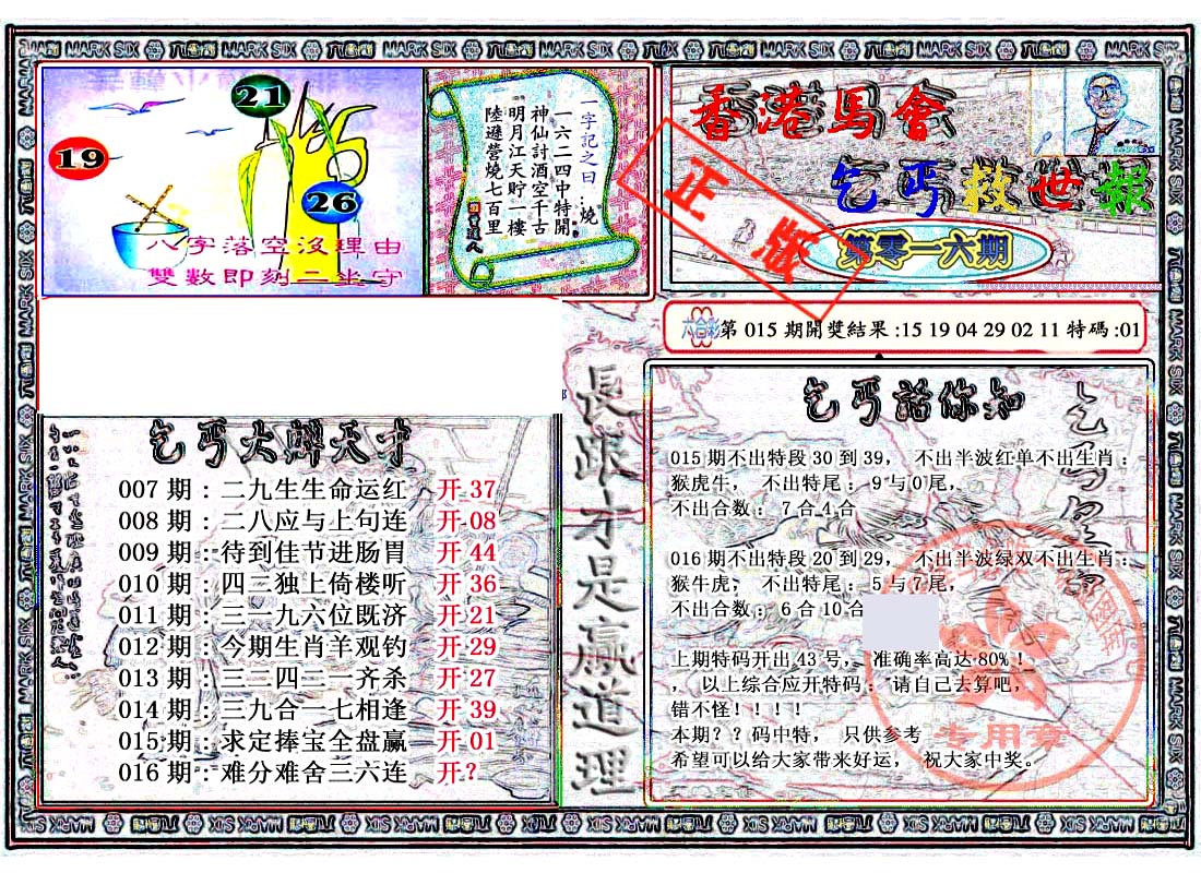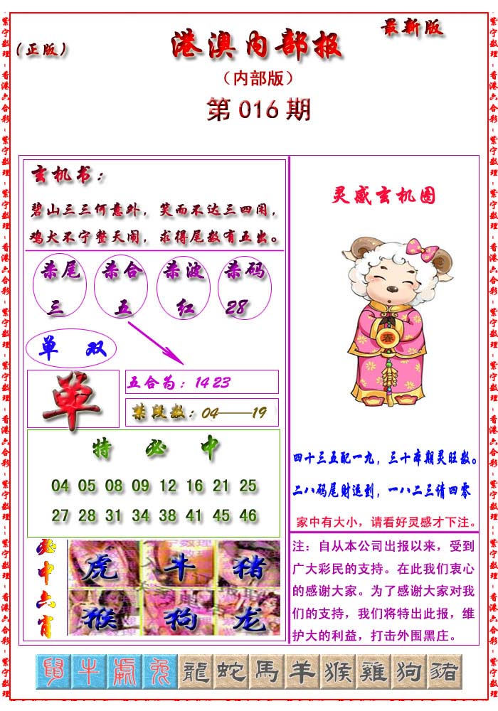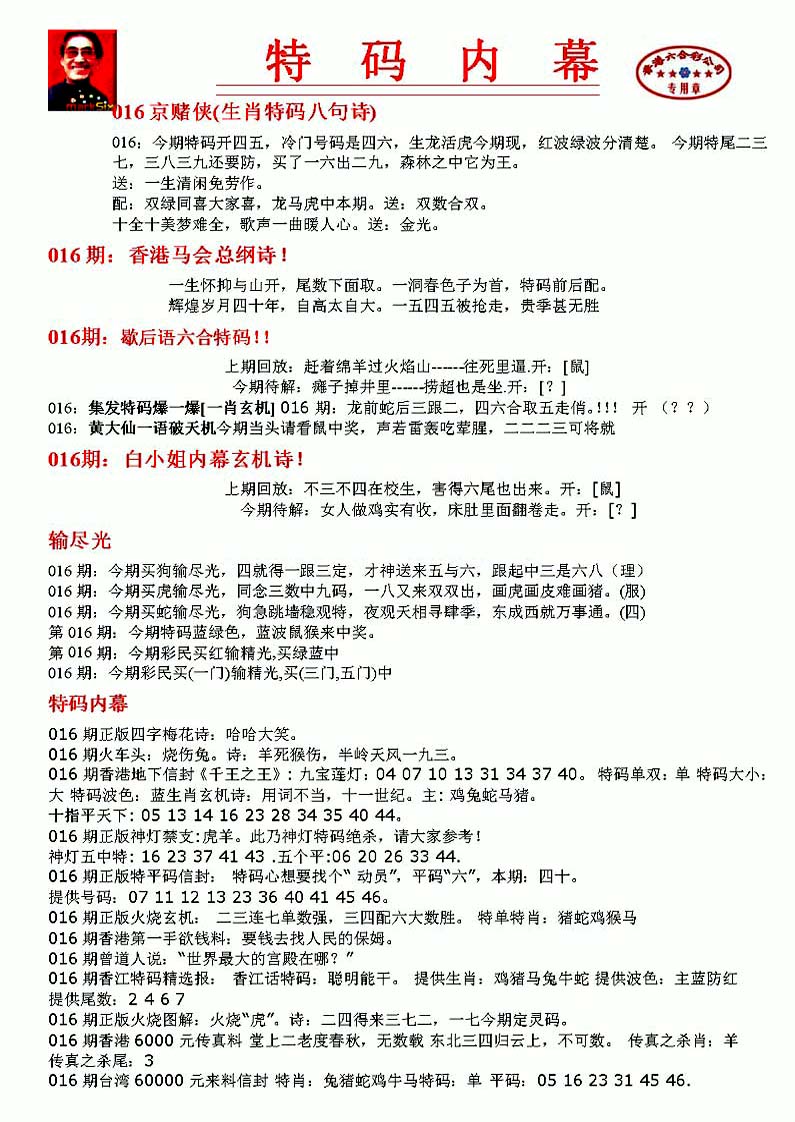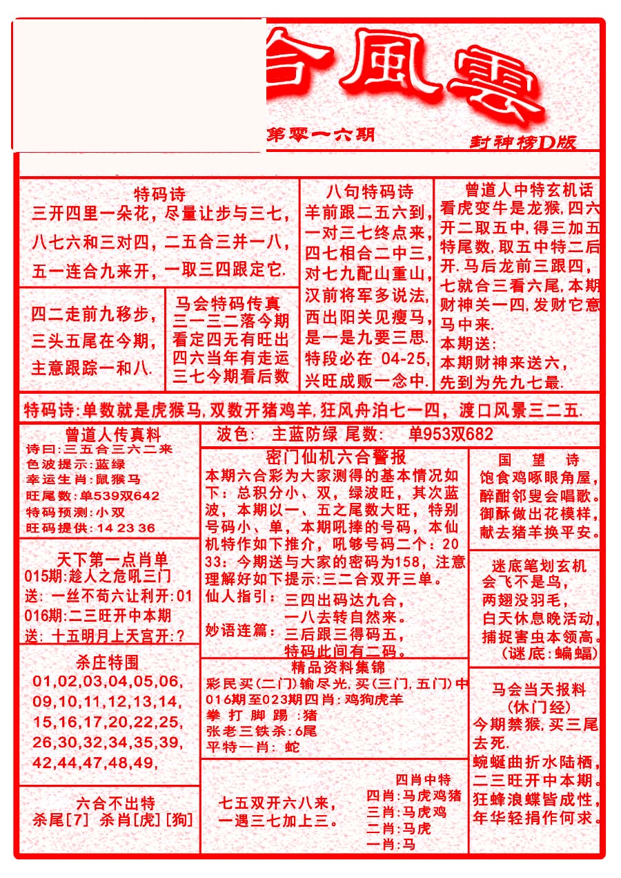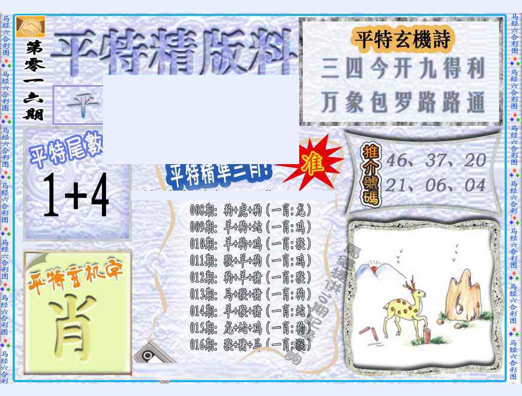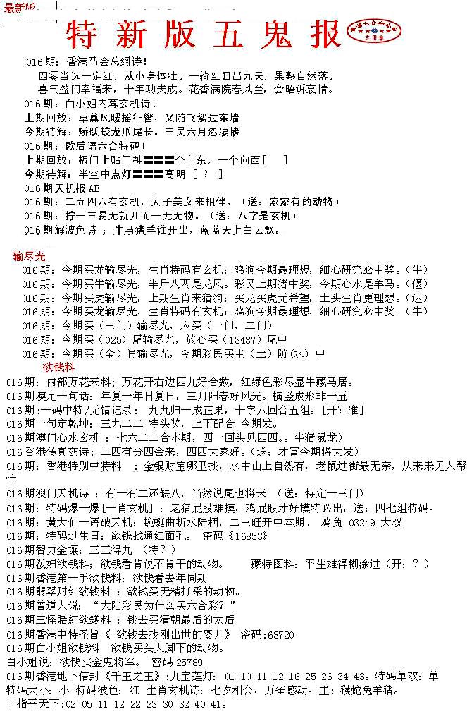 | 063 | 六合禅机A | 064 | 六合禅机B | 069 | 特 新 报A | 070 | 特 新 报B | |||||||||||||||||||||||||||||||||||||||||||||||||||