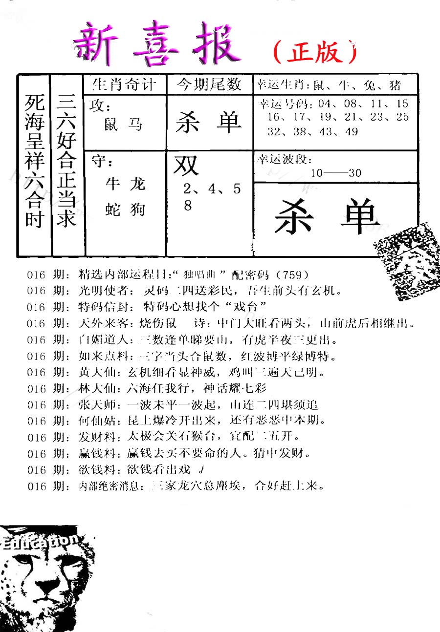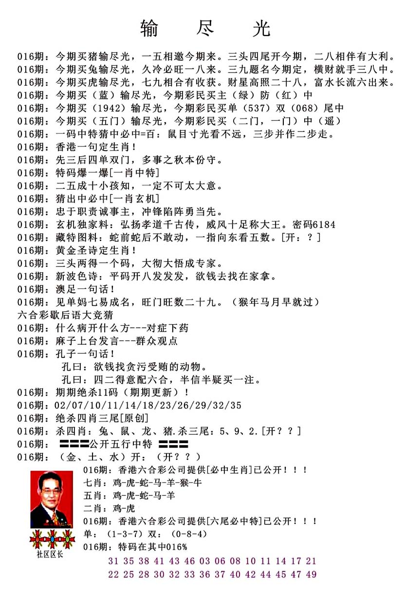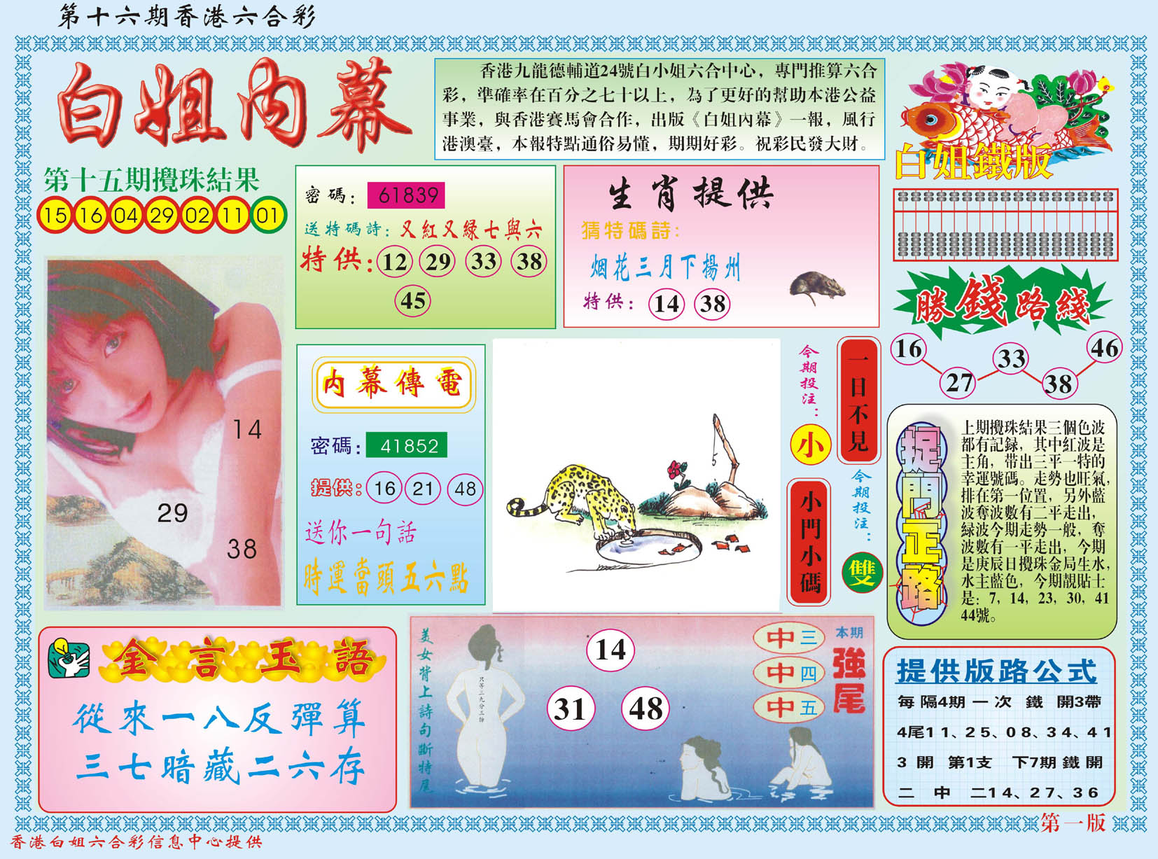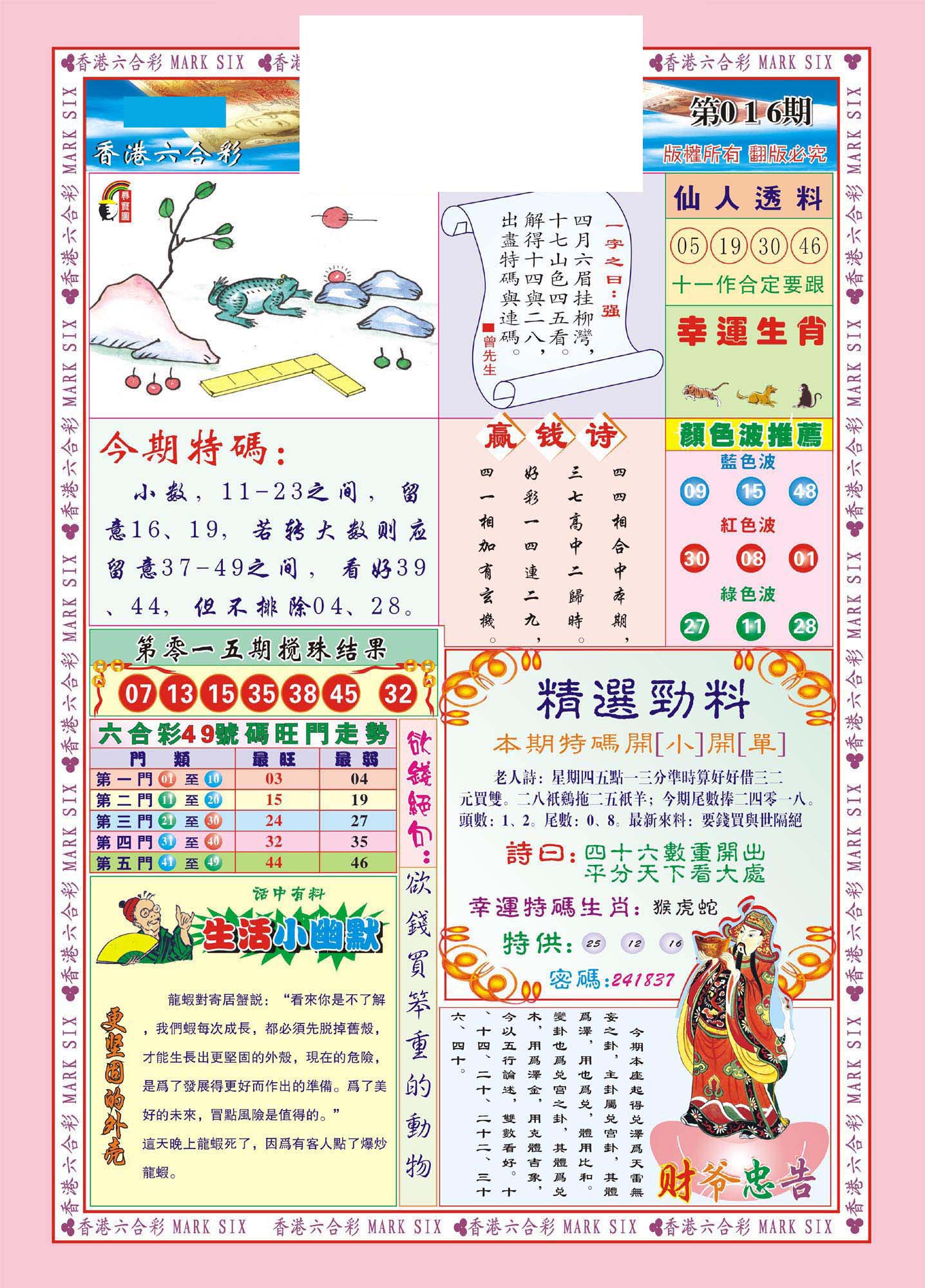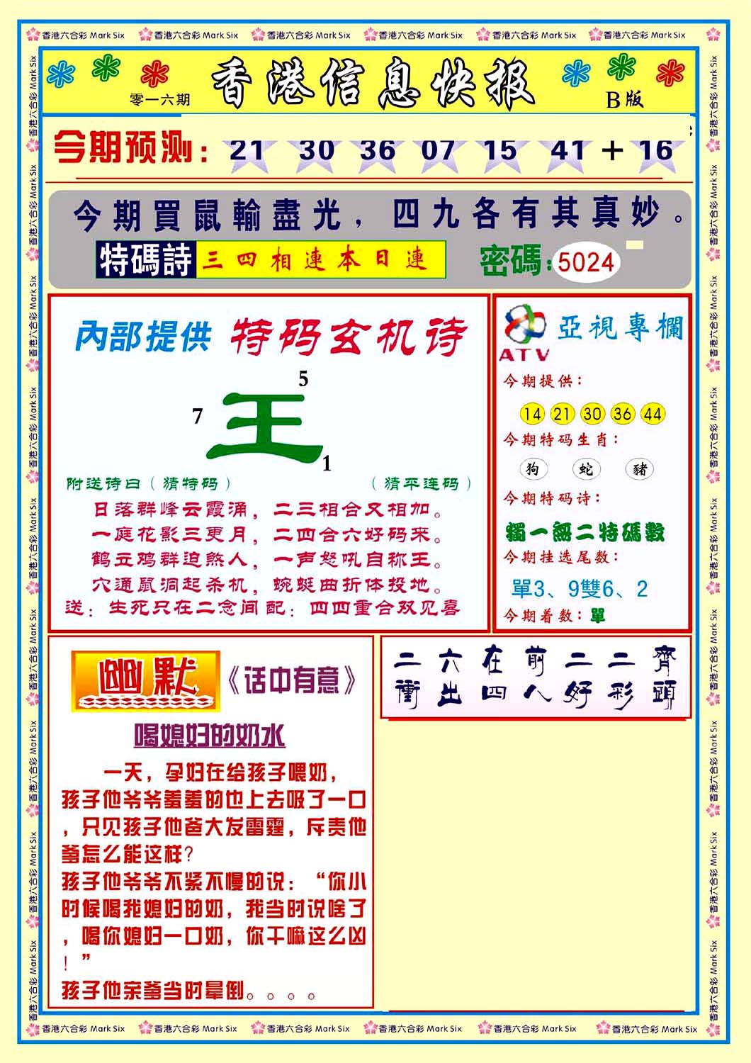 | 063 | 六合禅机A | 064 | 六合禅机B | 069 | 特 新 报A | 070 | 特 新 报B | |||||||||||||||||||||||||||||||||||||||||||||||||||