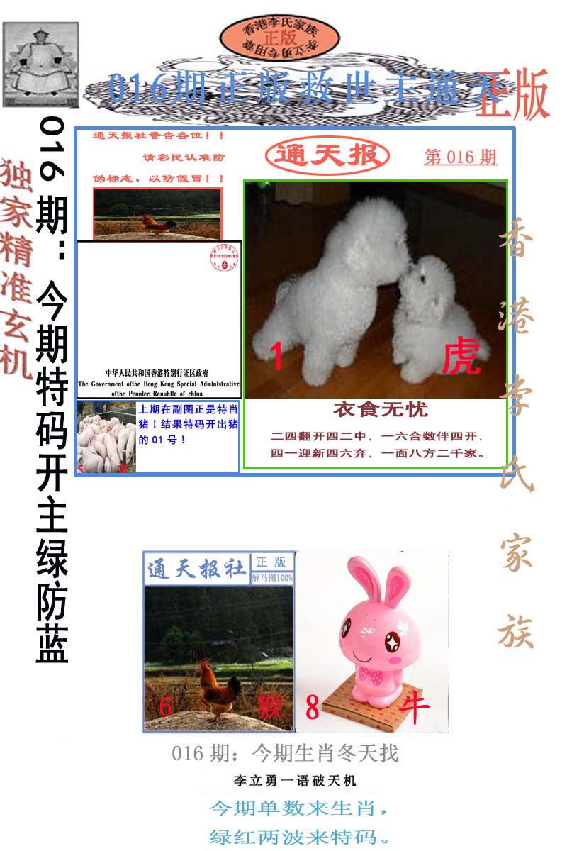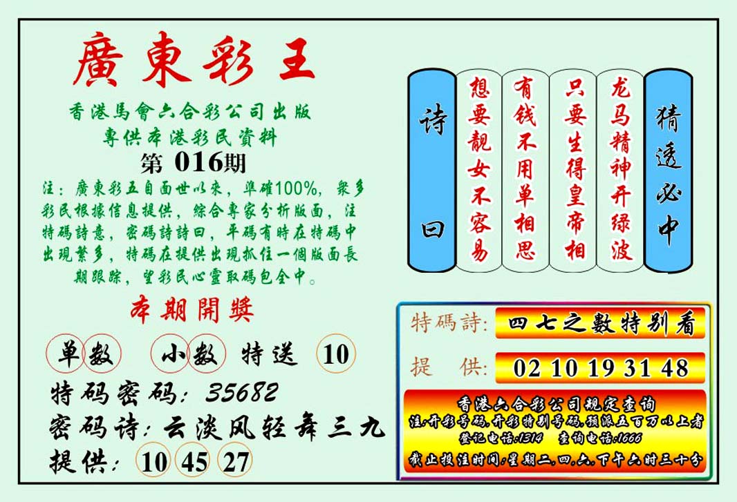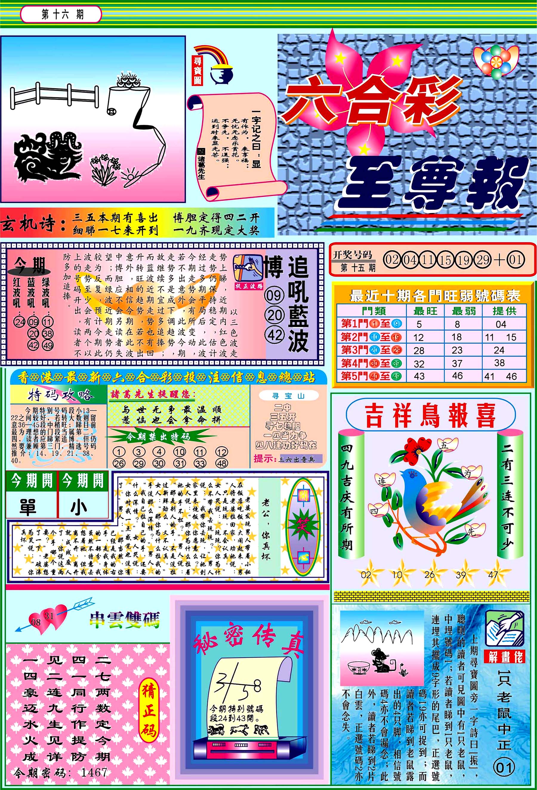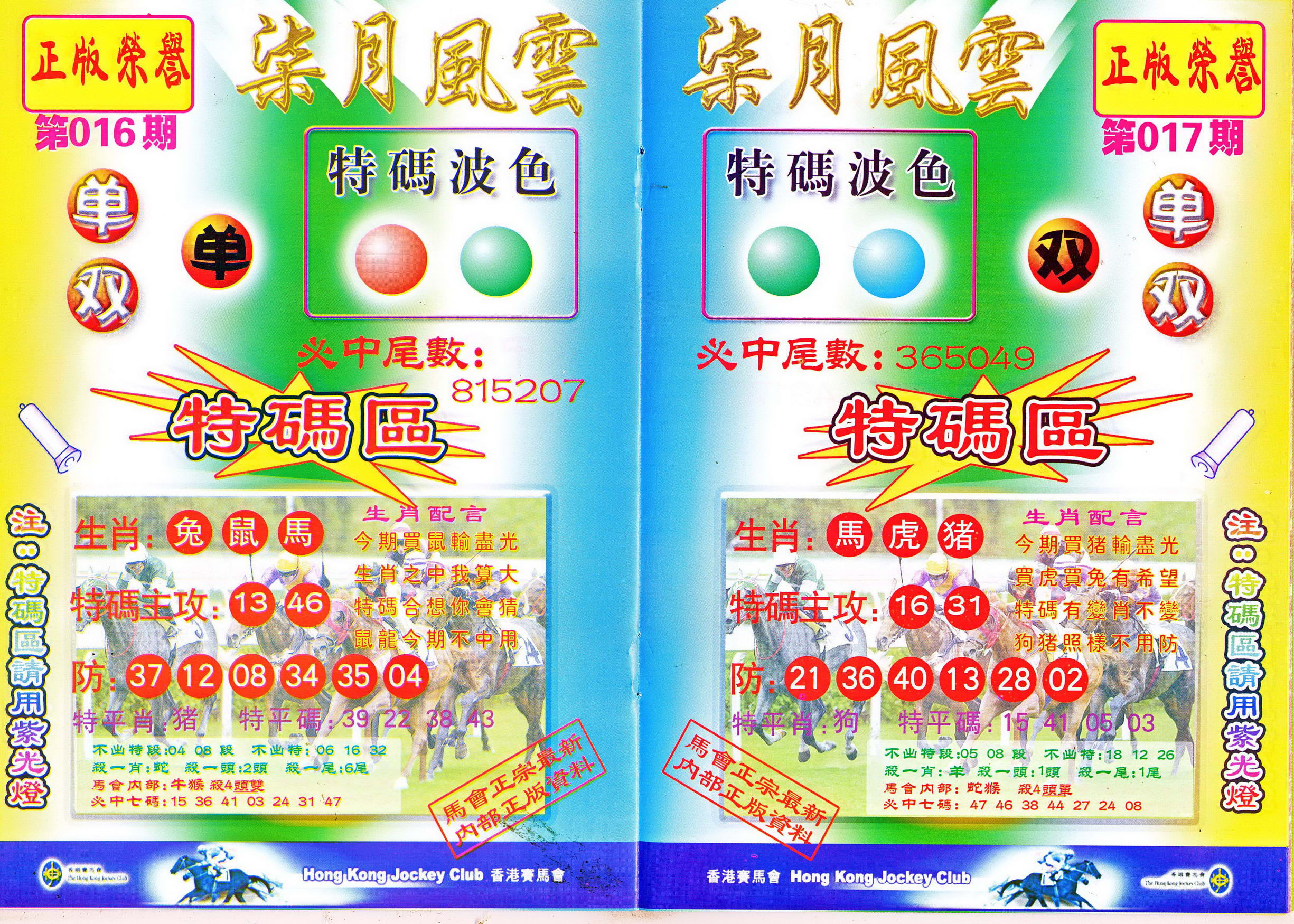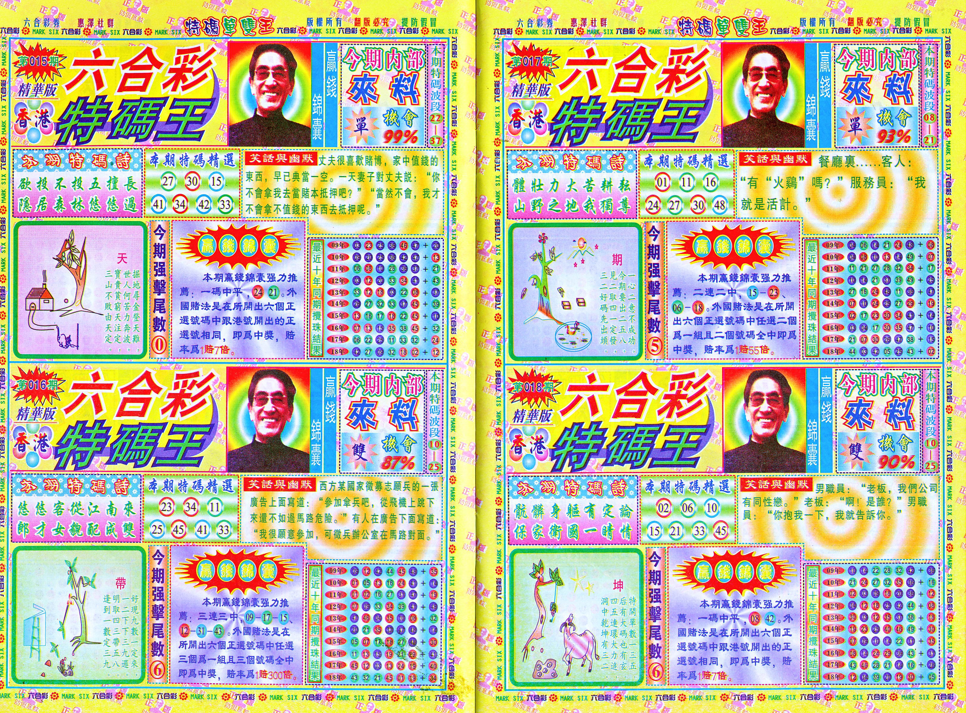| 1765 | 黄大仙救世报 | 1766 | 香港马会专刊A | 1767 | 香港马会专刊B | 1768 | 赌王心经 |