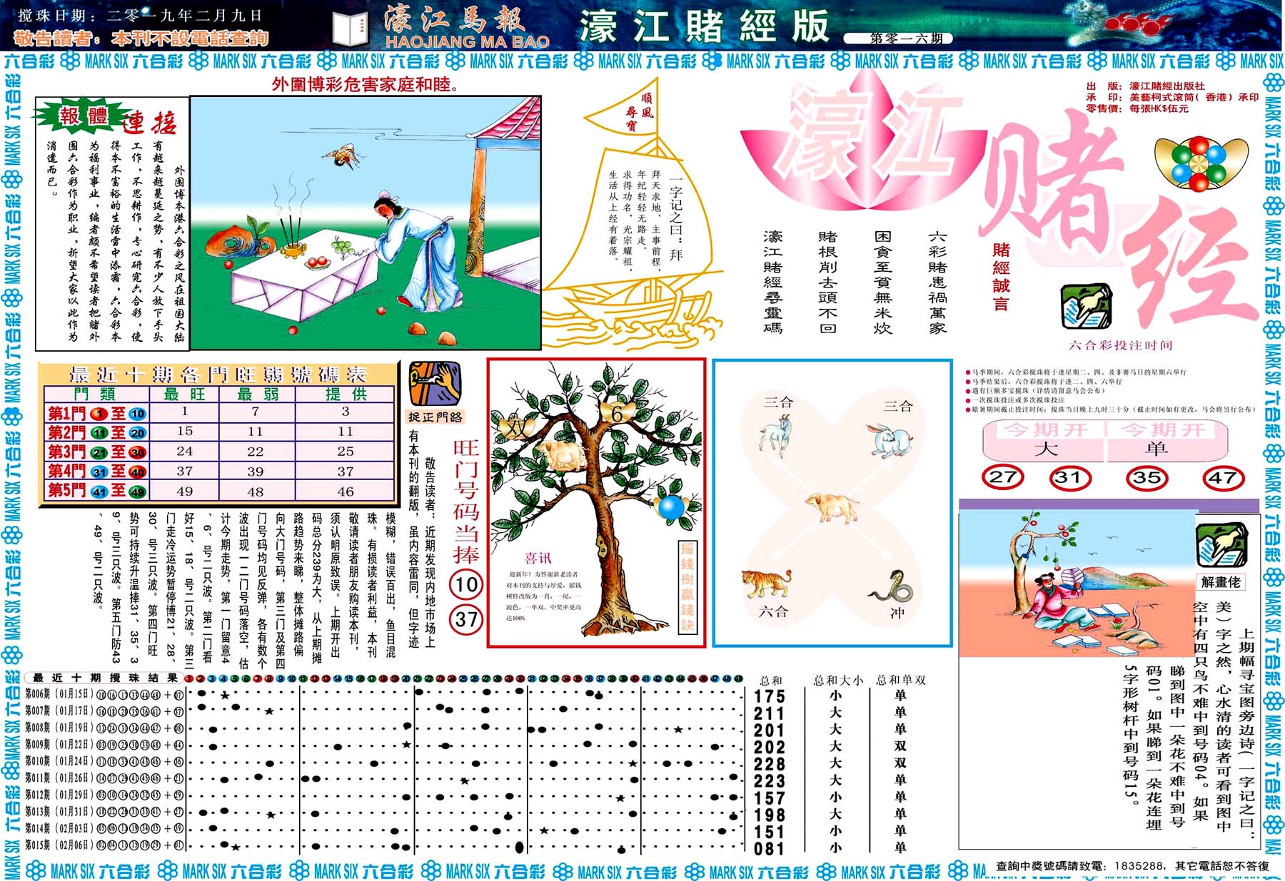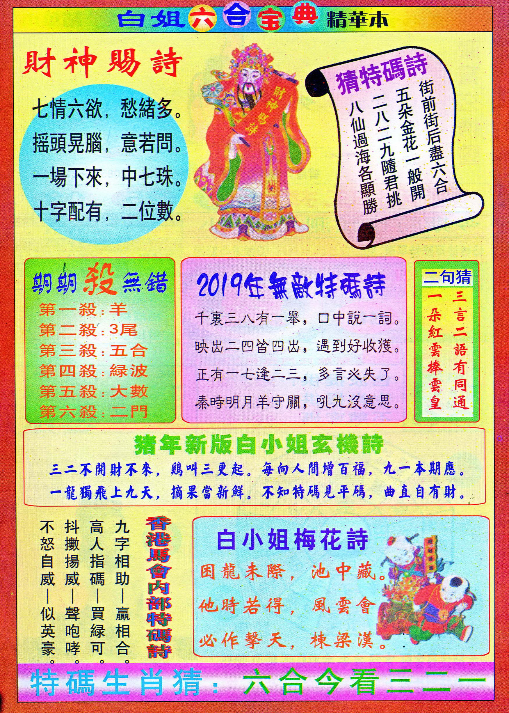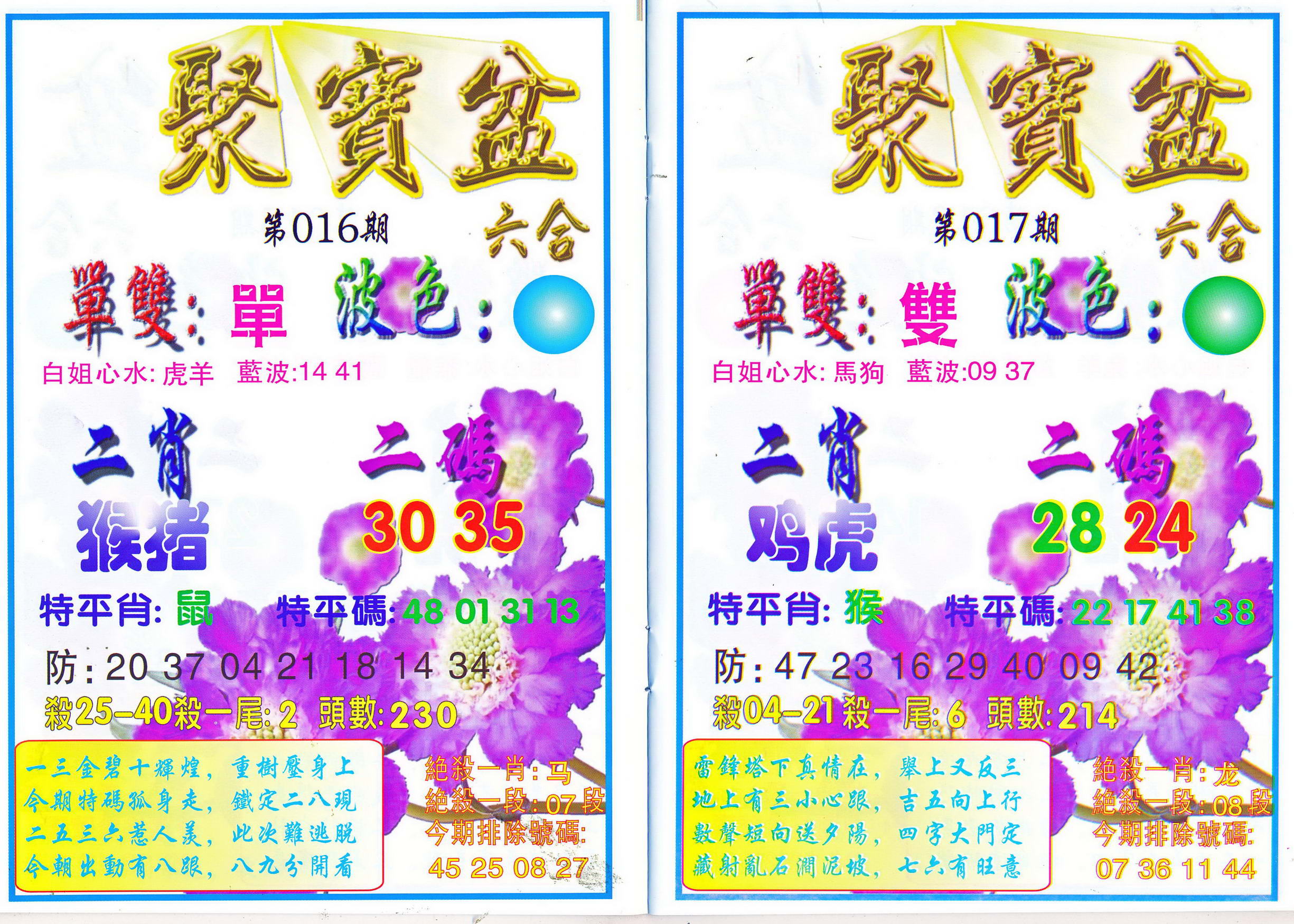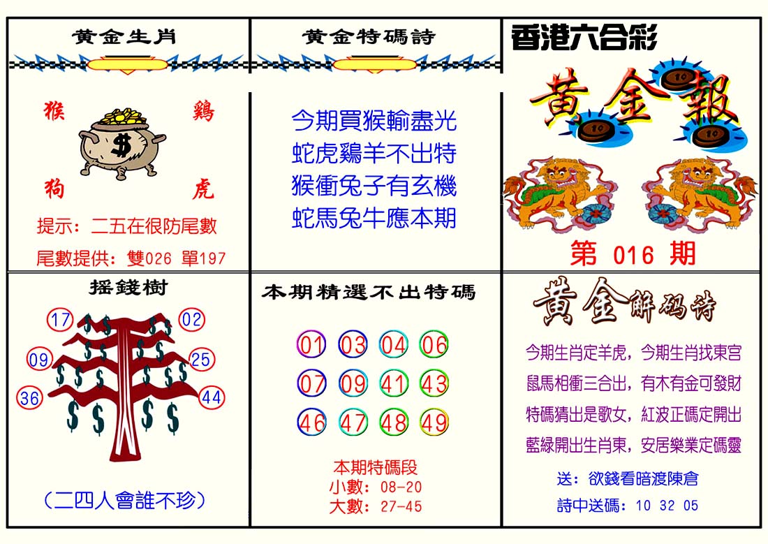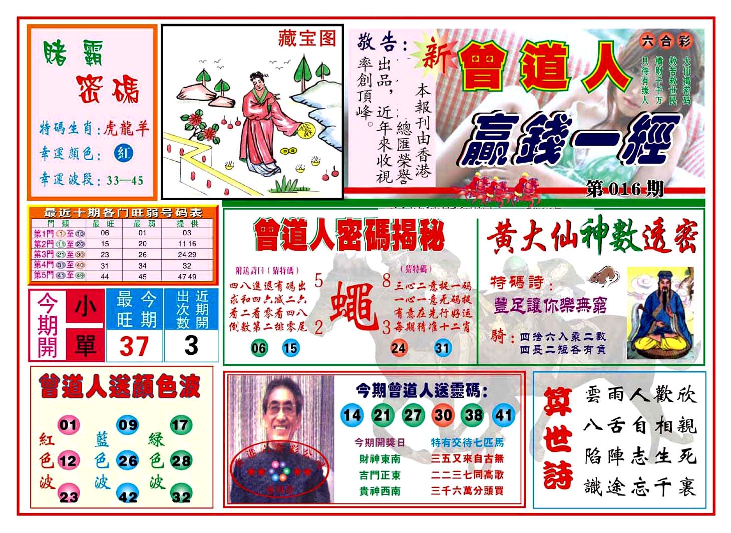 | 1765 | 黄大仙救世报 | 1766 | 香港马会专刊A | 1767 | 香港马会专刊B | 1768 | 赌王心经 |