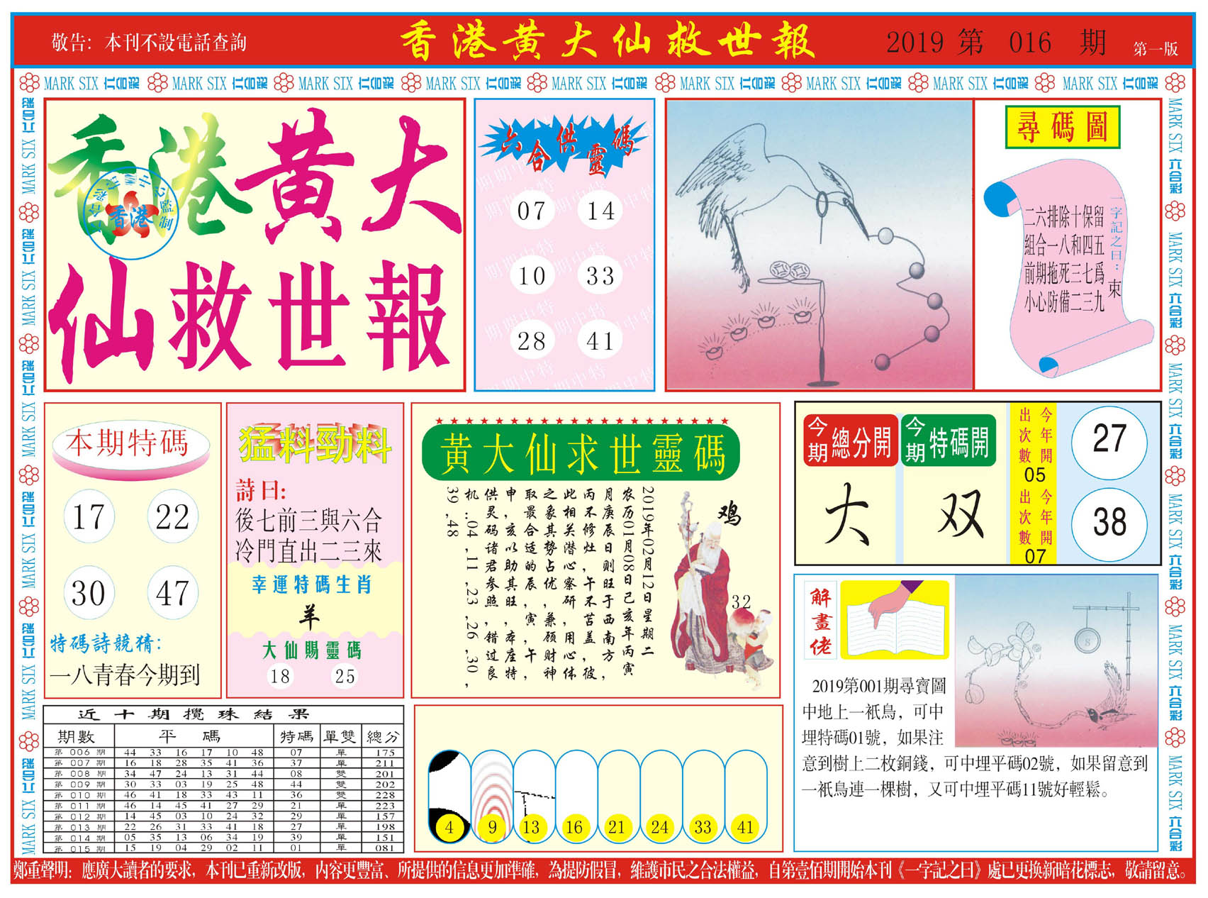| 019 | 黄大仙救世报A | 020 | 黄大仙救世报B | 021 | 香港黄大仙报A | 022 | 香港黄大仙报B | |||||||||||||||||||||||||||||||||||||||||||||||||||