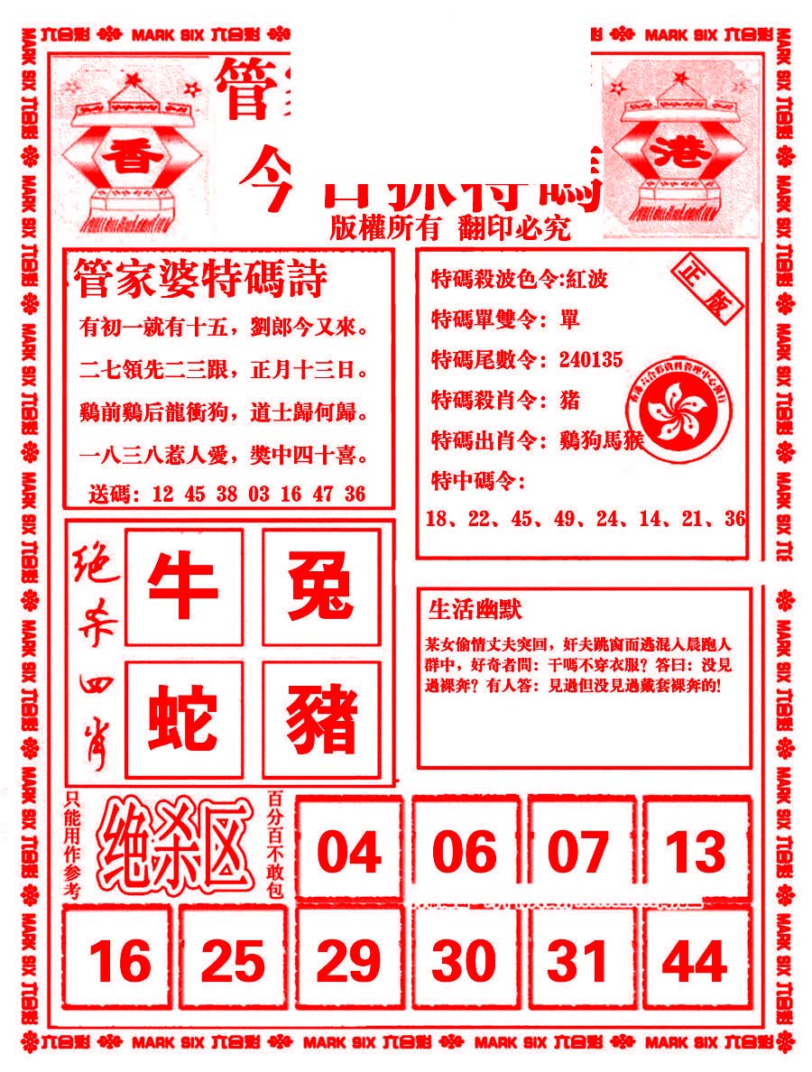 | 441 | 六合解霸A | 442 | 六合解霸B | 445 | 白姐特新刊A | 446 | 白姐特新刊B | |||||||||||||||||||||||||||||||||||||||||||||||||||