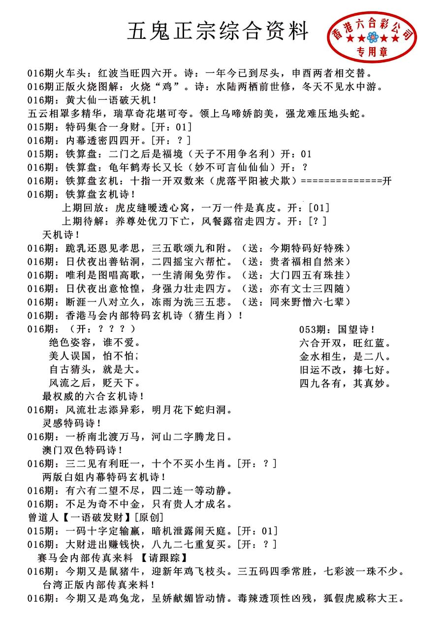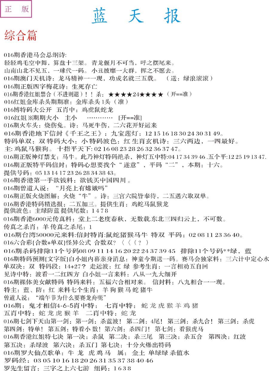 | 1577 | 精选 | 1579 | 伟哥神龙报 | 1581 | 精准传真报 | 1582 | 新天线宝宝内幕报 | |||||||||||||||||||||||||||||||||||||||||||||||||||