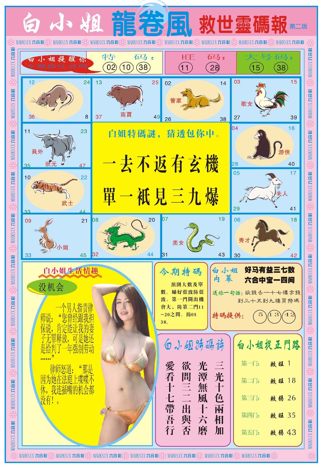 | 1336 | 统一玄机报 | 1337 | 正宗青龙五鬼报A | 1338 | 正宗青龙五鬼报B | 1339 | 美女六肖报 | |||||||||||||||||||||||||||||||||||||||||||||||||||