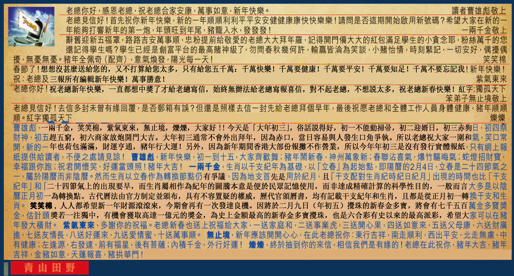 | 1476 | 香港嘉云公司电传 | 1477 | 宋韶光内部版 | 1478 | 财神报 | 1479 | 大富大贵 | |||||||||||||||||||||||||||||||||||||||||||||||||||