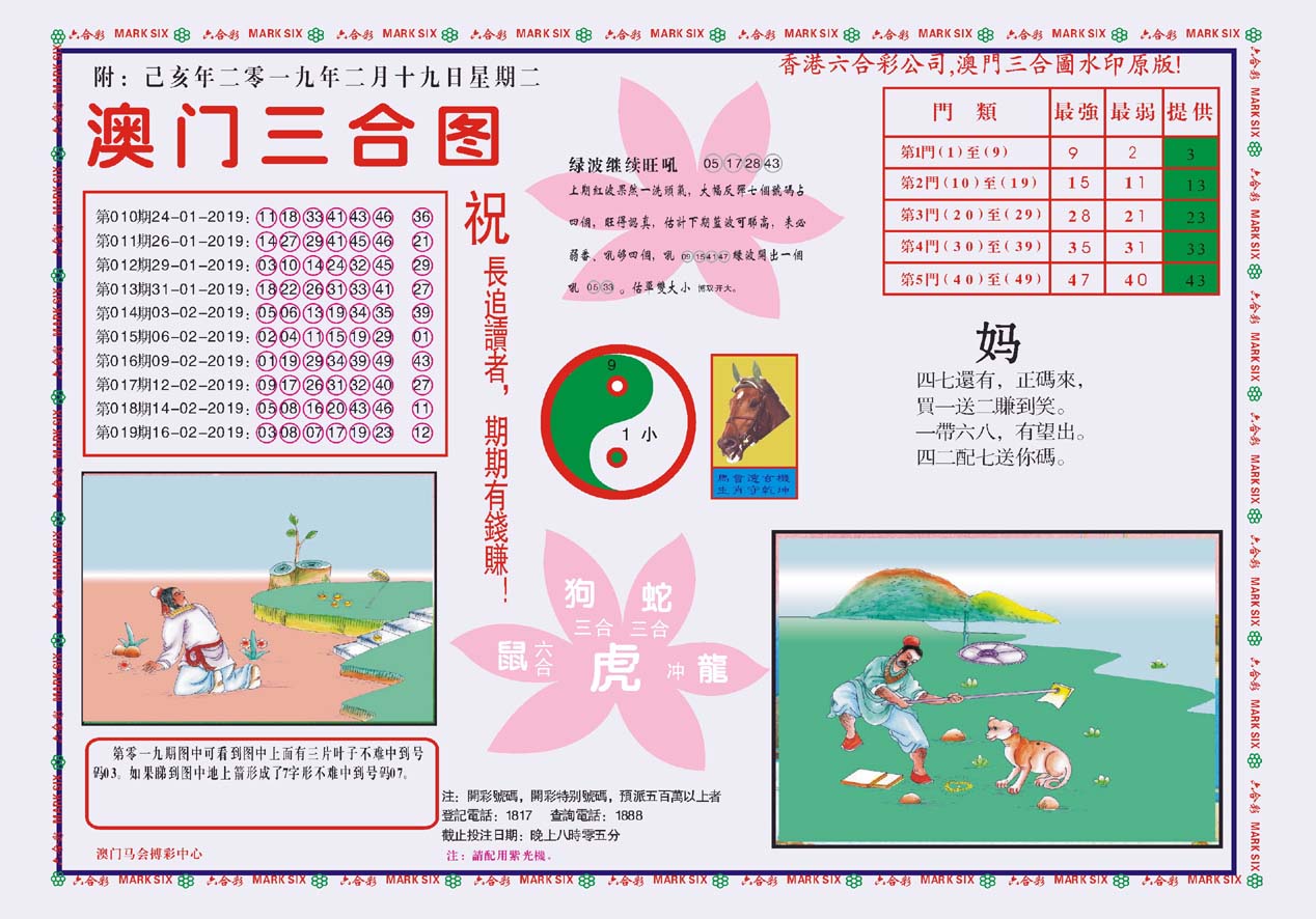 | 531 | 黄大仙射箭(杂毛) | 532 | 凤凰马经(杂毛) | 561 | 百家汇A | 562 | 百家汇B | |||||||||||||||||||||||||||||||||||||||||||||||||||