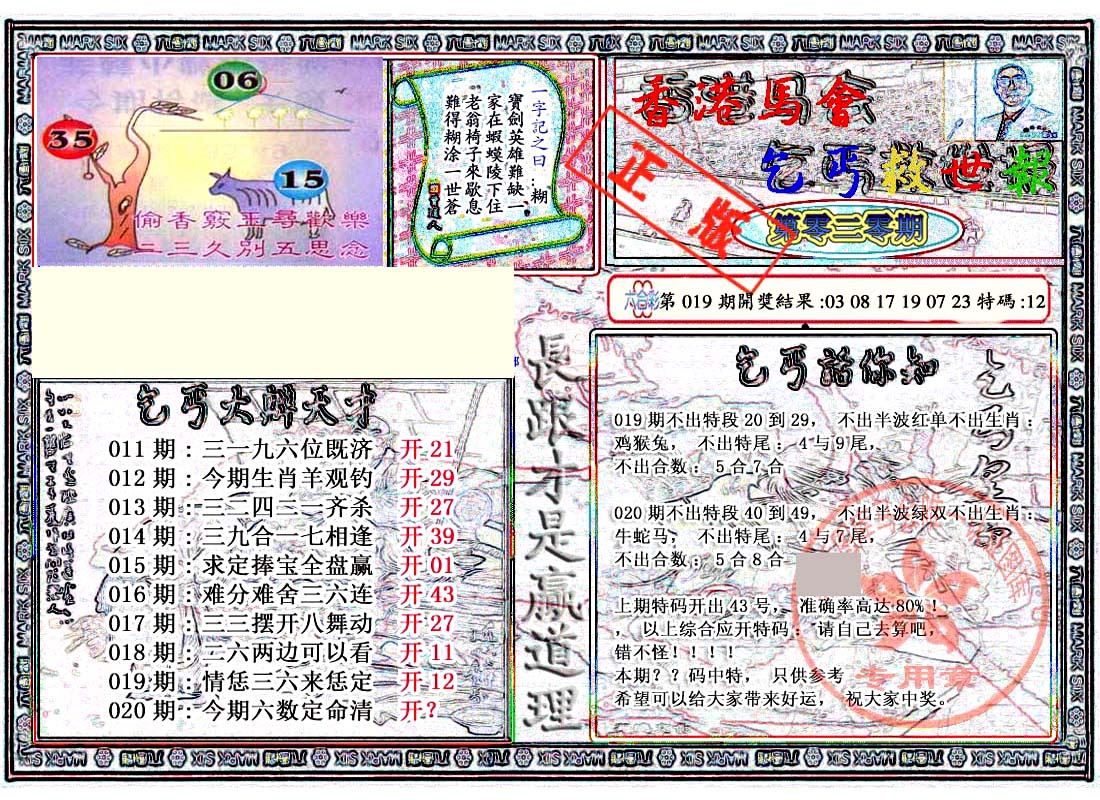 | 1336 | 统一玄机报 | 1337 | 正宗青龙五鬼报A | 1338 | 正宗青龙五鬼报B | 1339 | 美女六肖报 | |||||||||||||||||||||||||||||||||||||||||||||||||||