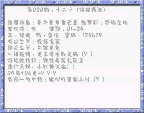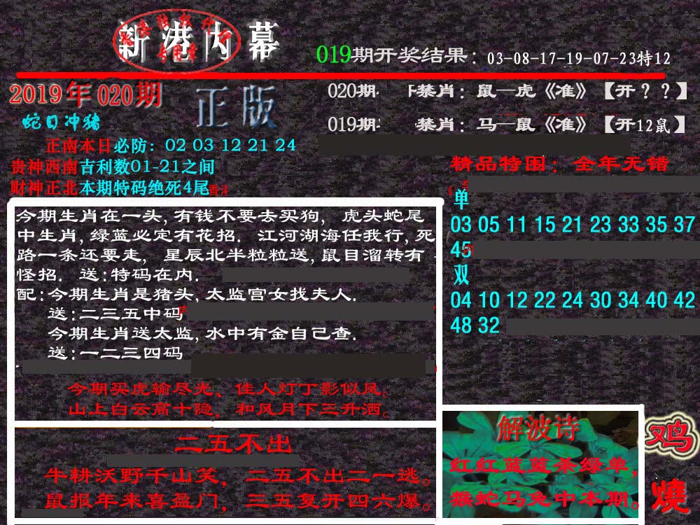 | 233 | 内幕玄机加大版A | 234 | 内幕玄机加大版B | 235 | 六合心经A | 236 | 六合心经B | |||||||||||||||||||||||||||||||||||||||||||||||||||