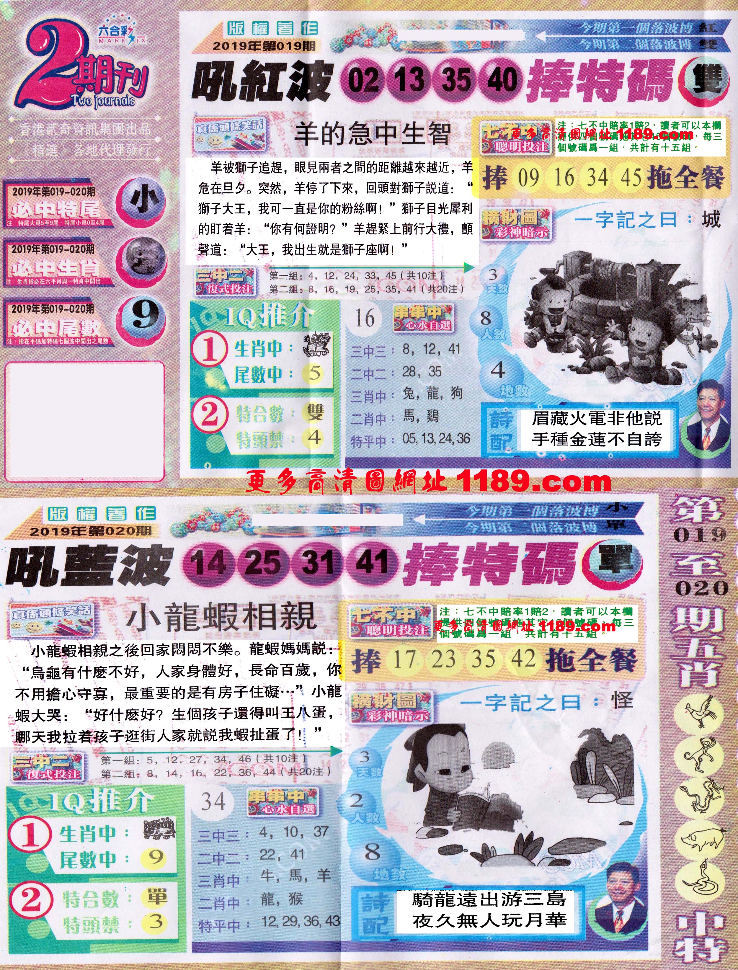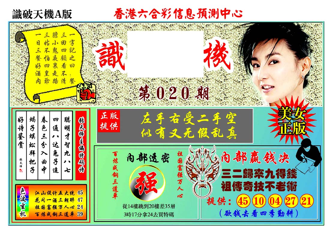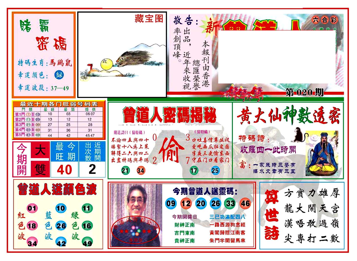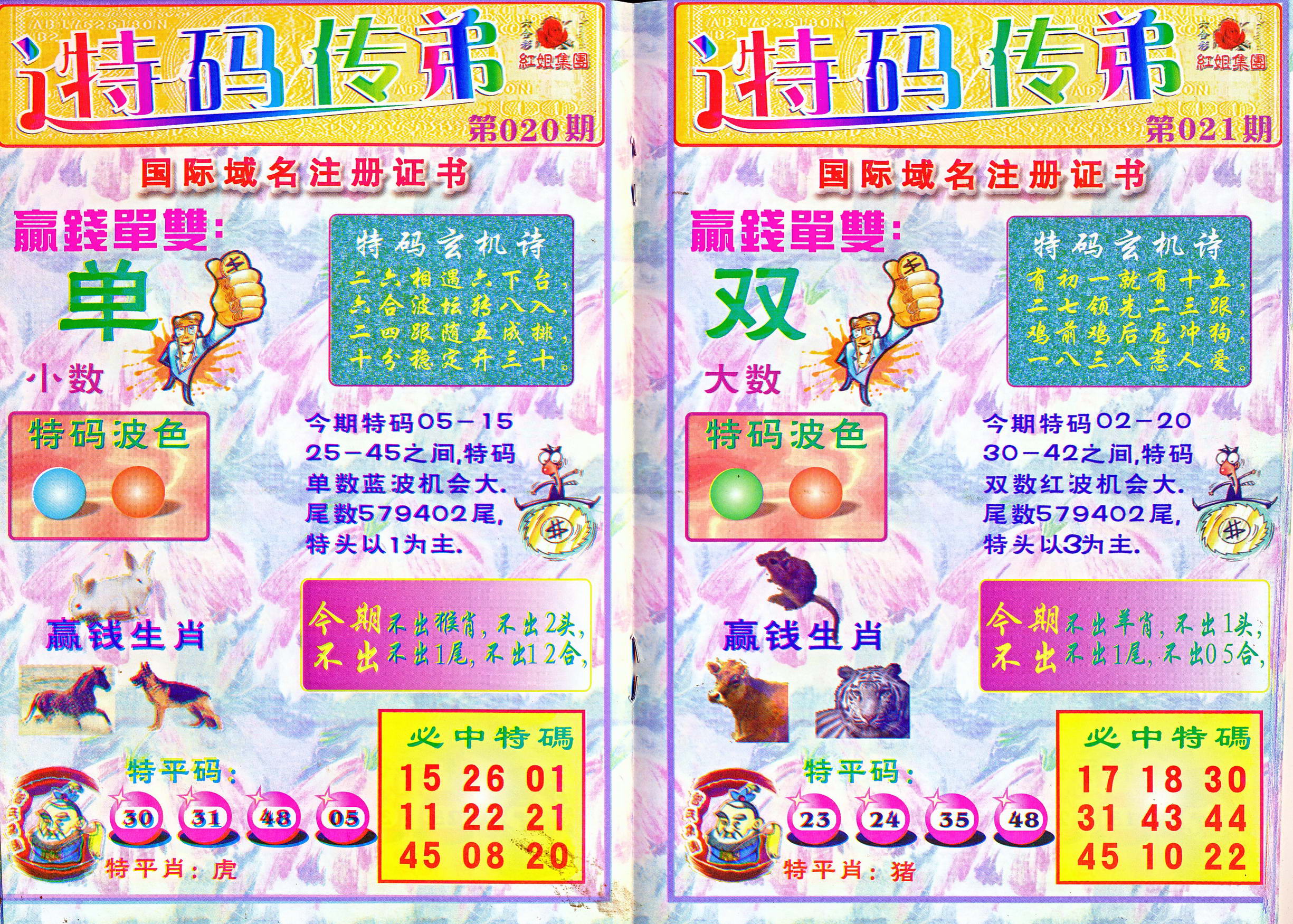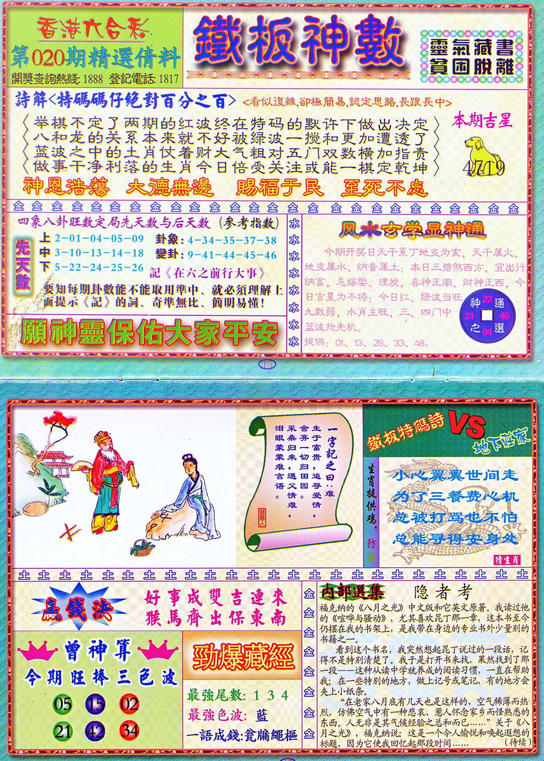 | 1765 | 黄大仙救世报 | 1766 | 香港马会专刊A | 1767 | 香港马会专刊B | 1768 | 赌王心经 |
