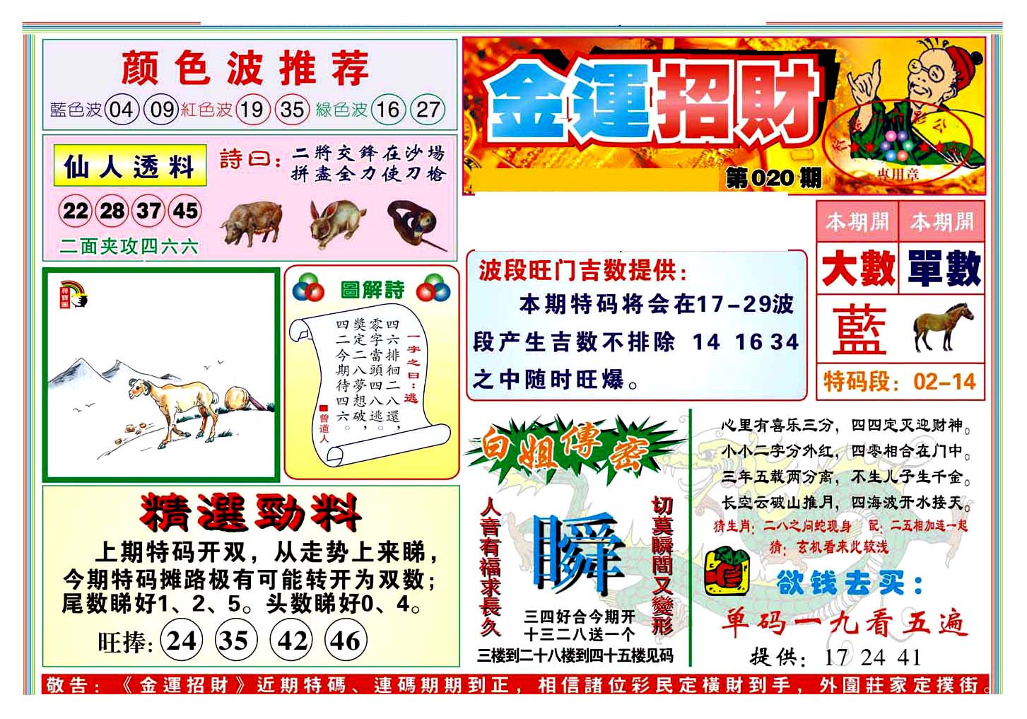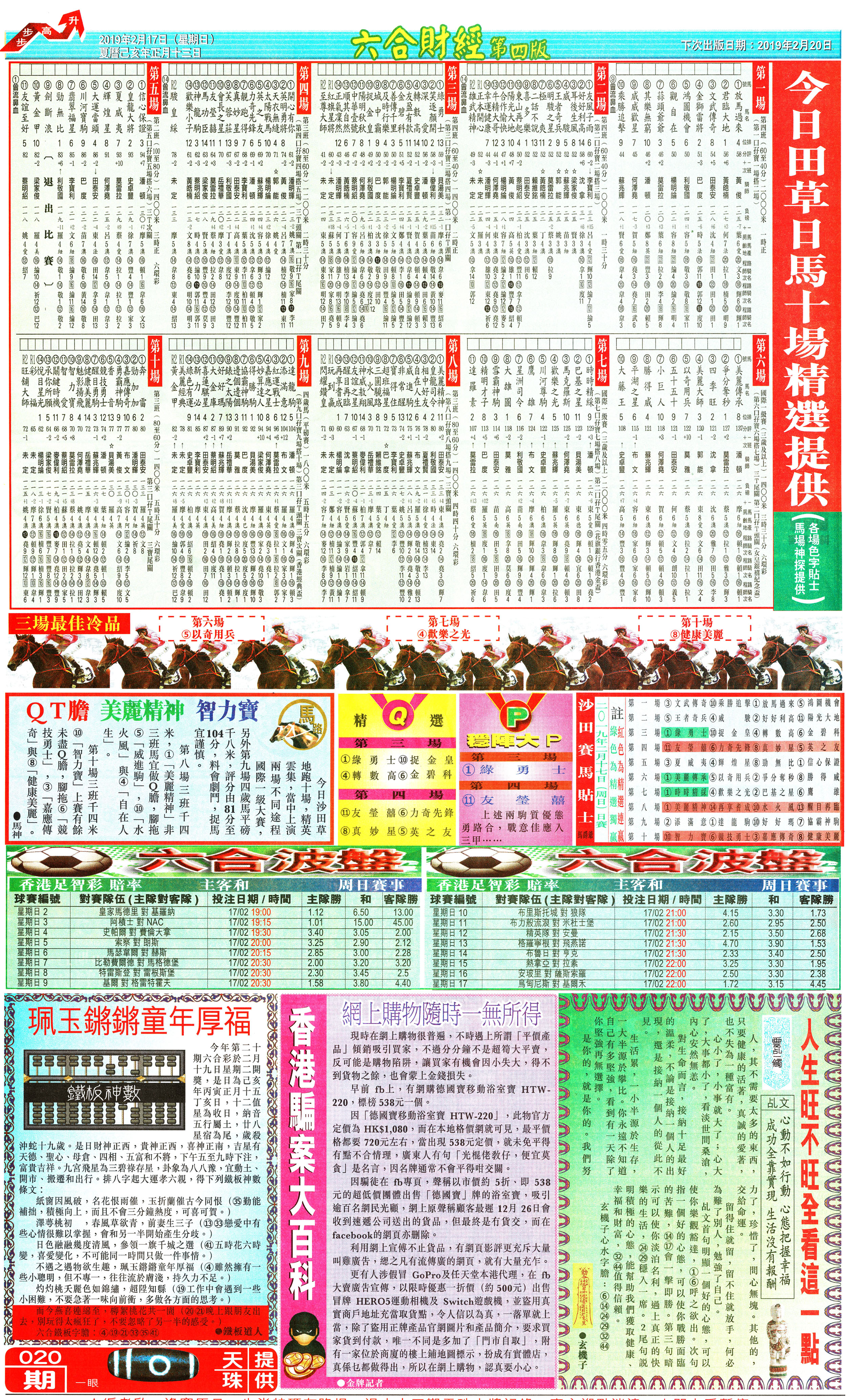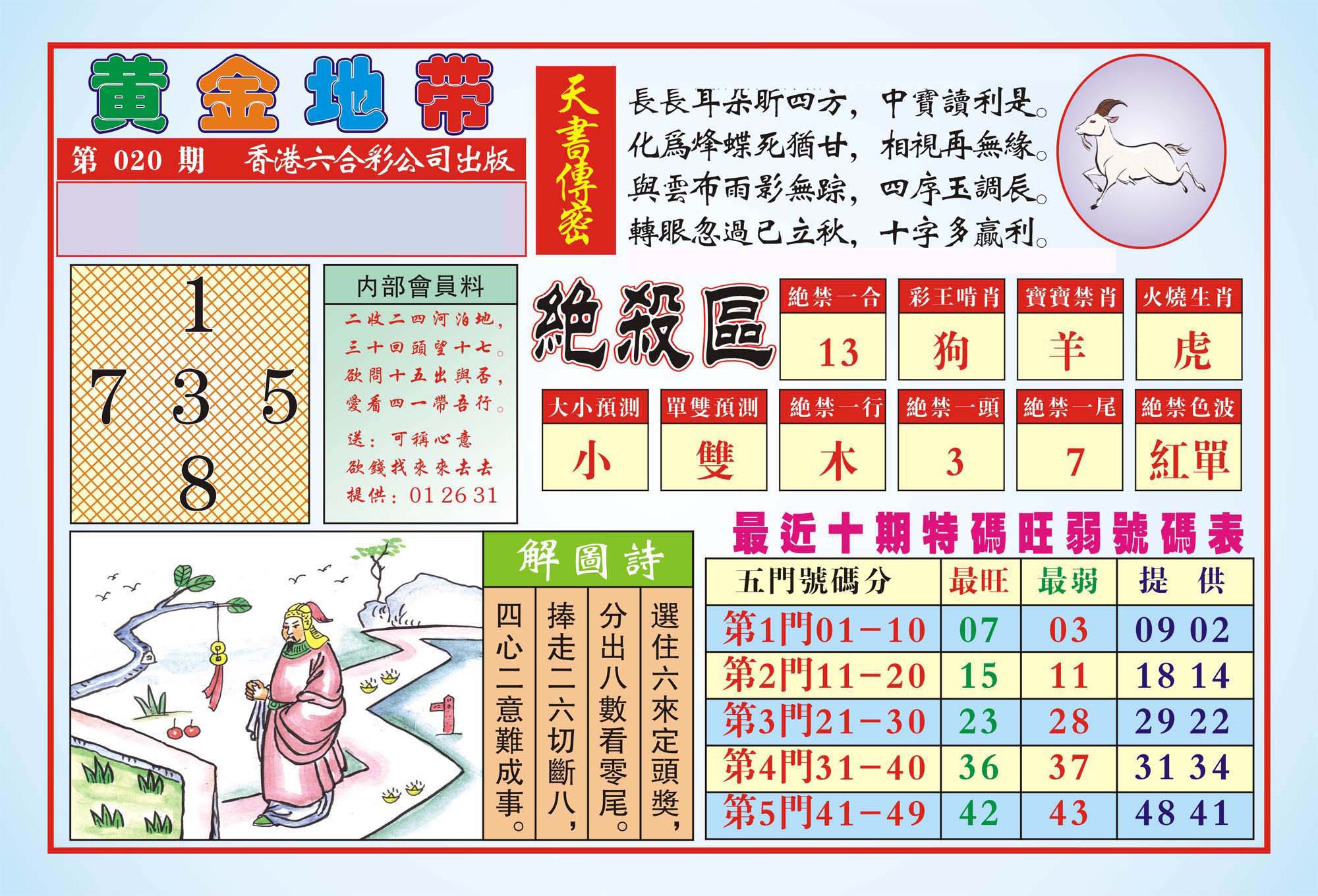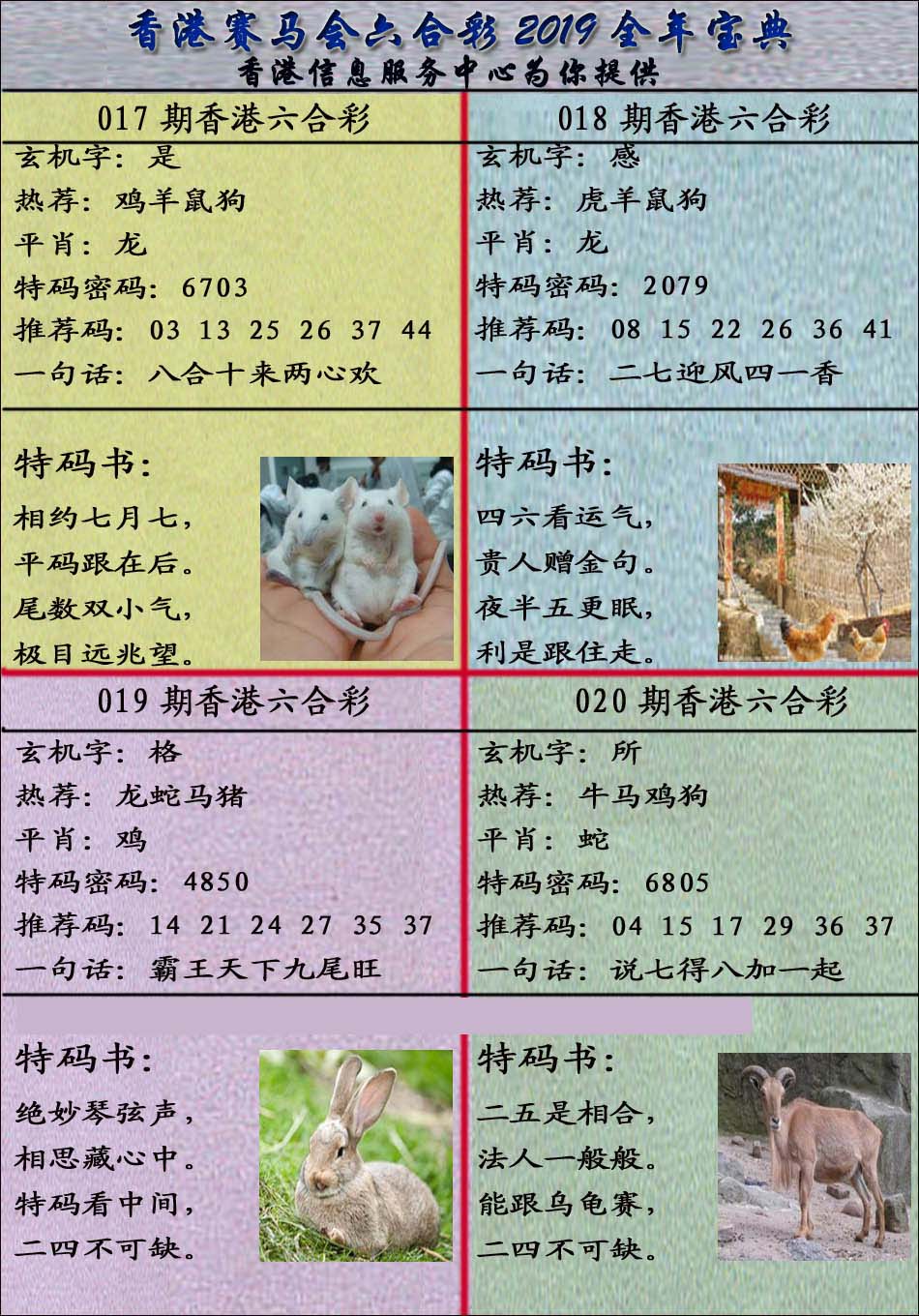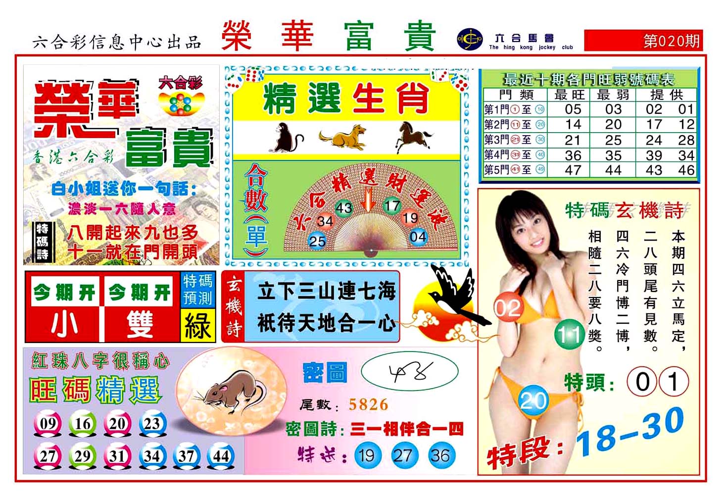 | 1765 | 黄大仙救世报 | 1766 | 香港马会专刊A | 1767 | 香港马会专刊B | 1768 | 赌王心经 |