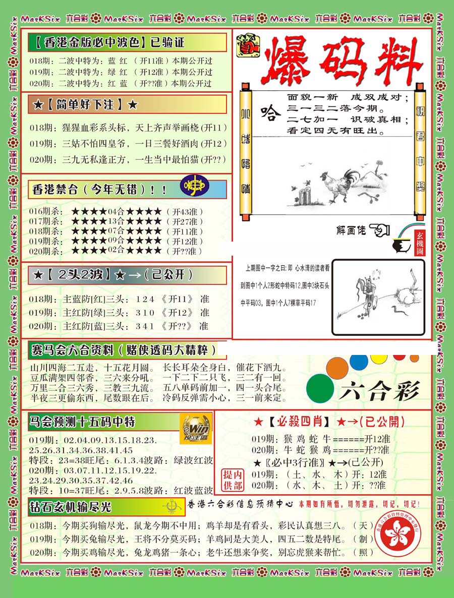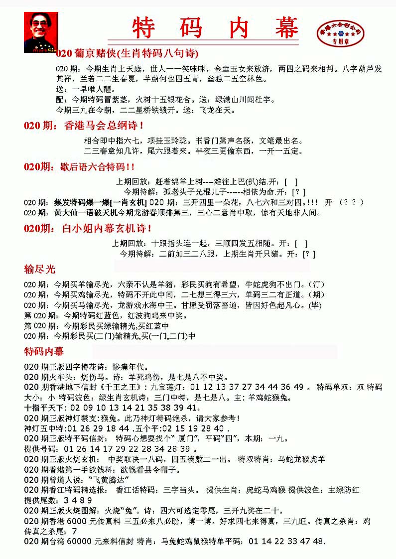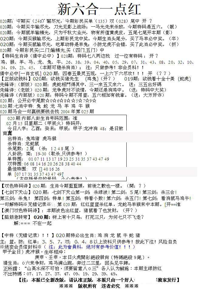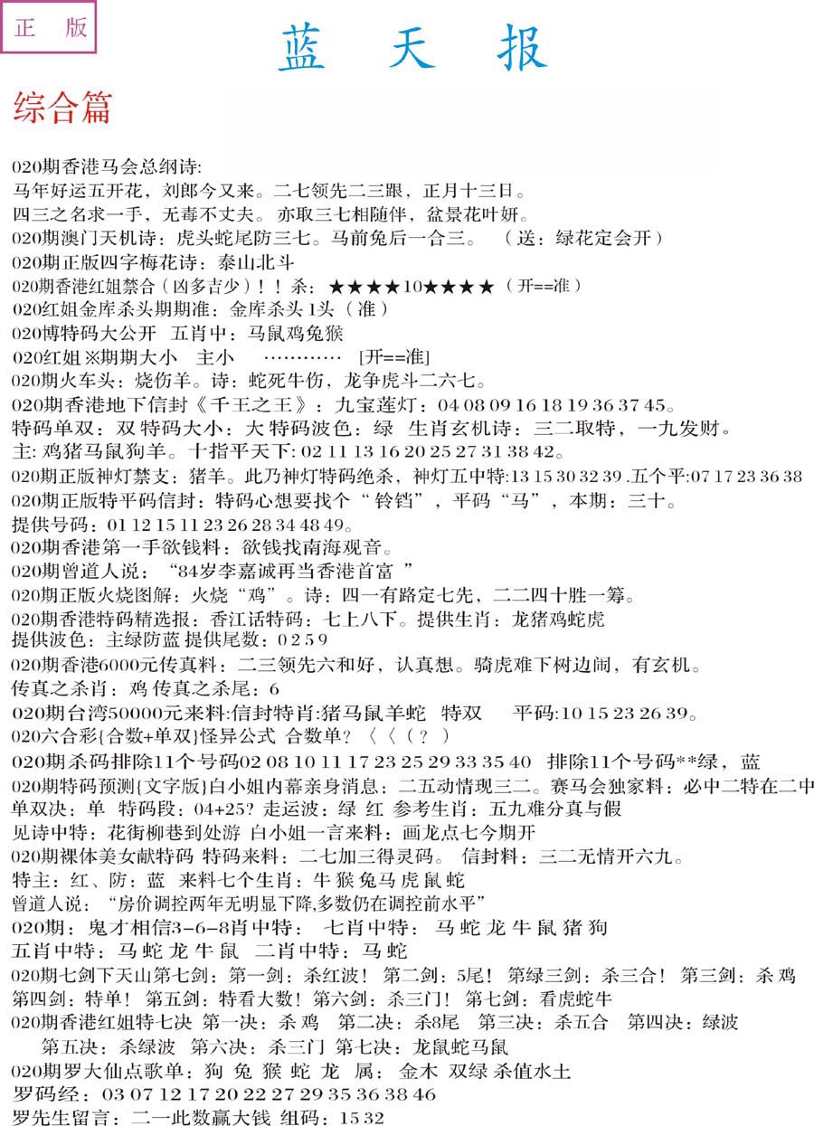 | 063 | 六合禅机A | 064 | 六合禅机B | 069 | 特 新 报A | 070 | 特 新 报B | |||||||||||||||||||||||||||||||||||||||||||||||||||
