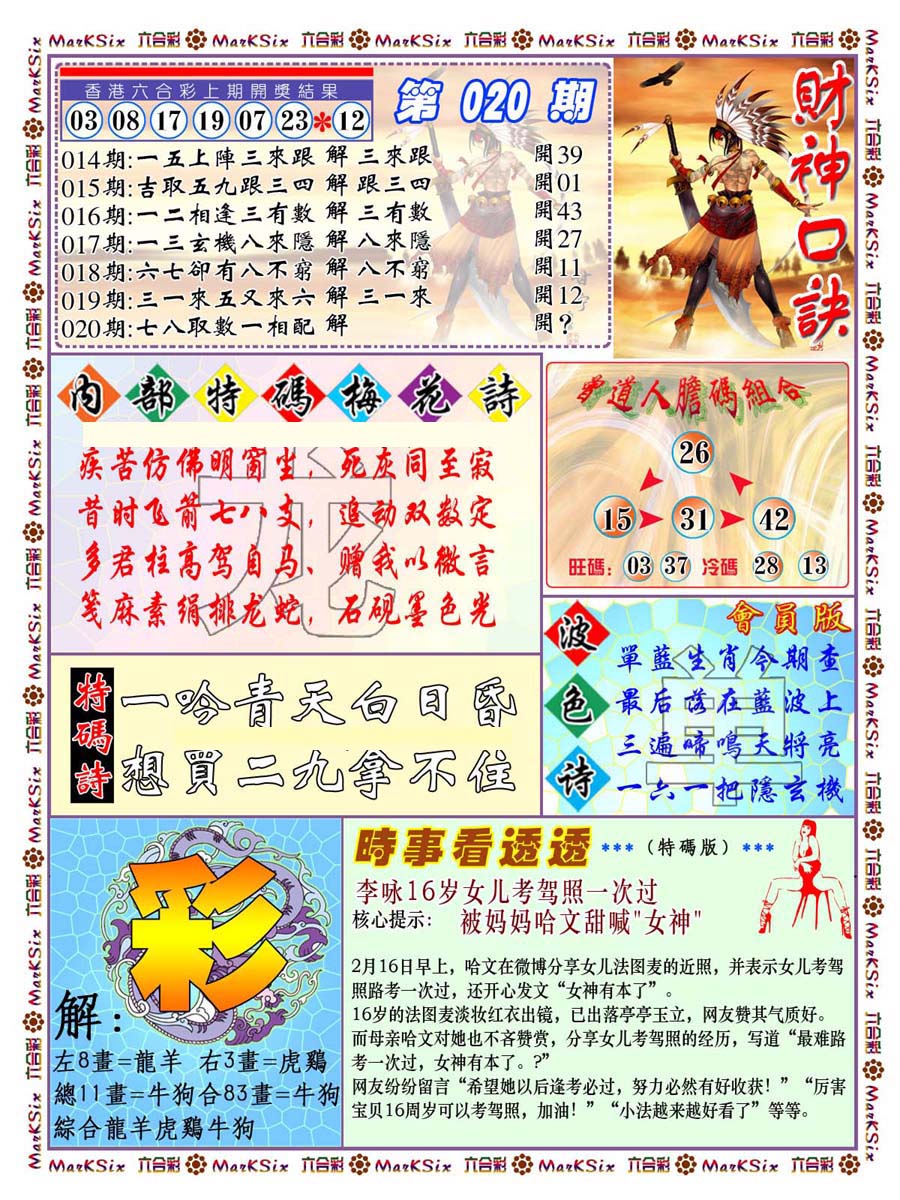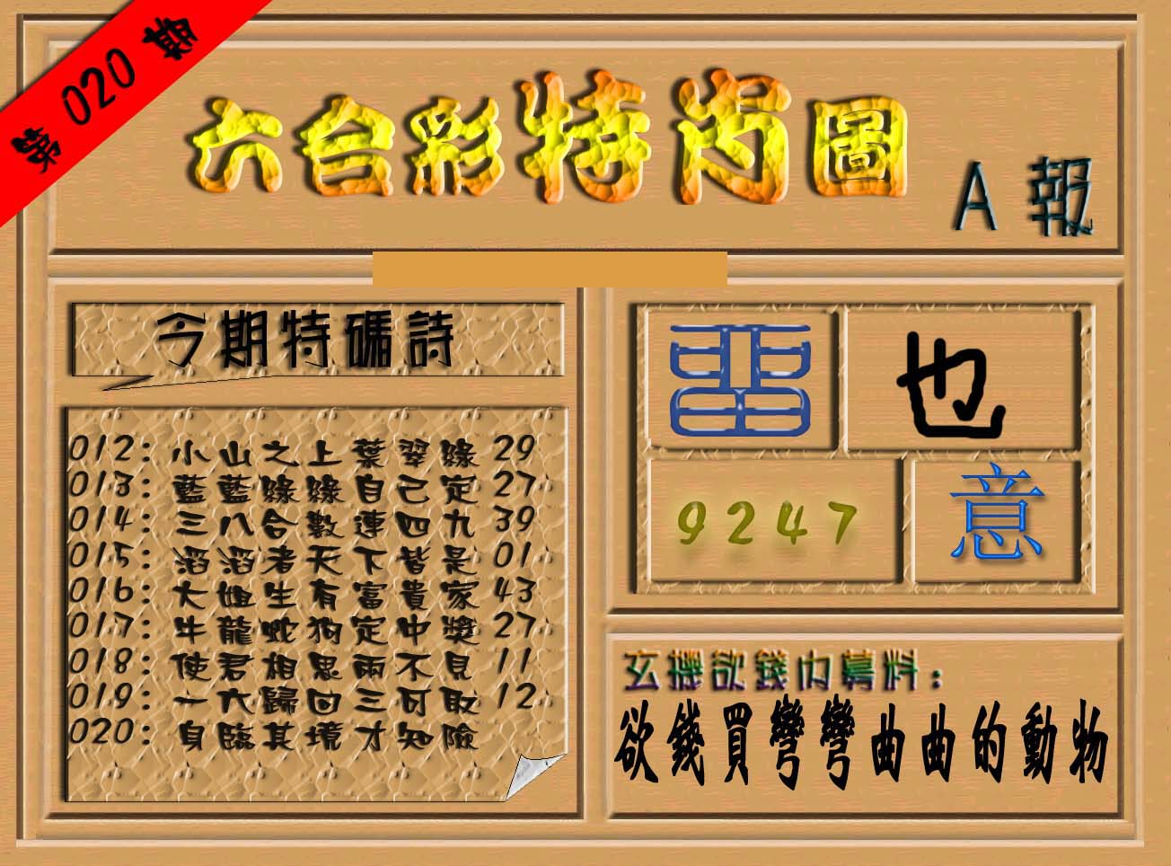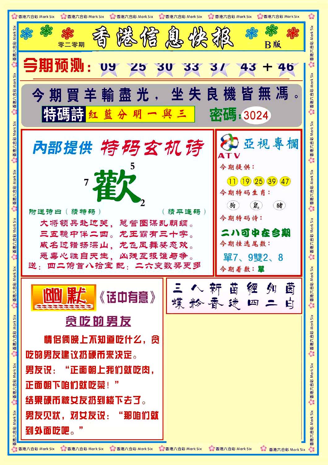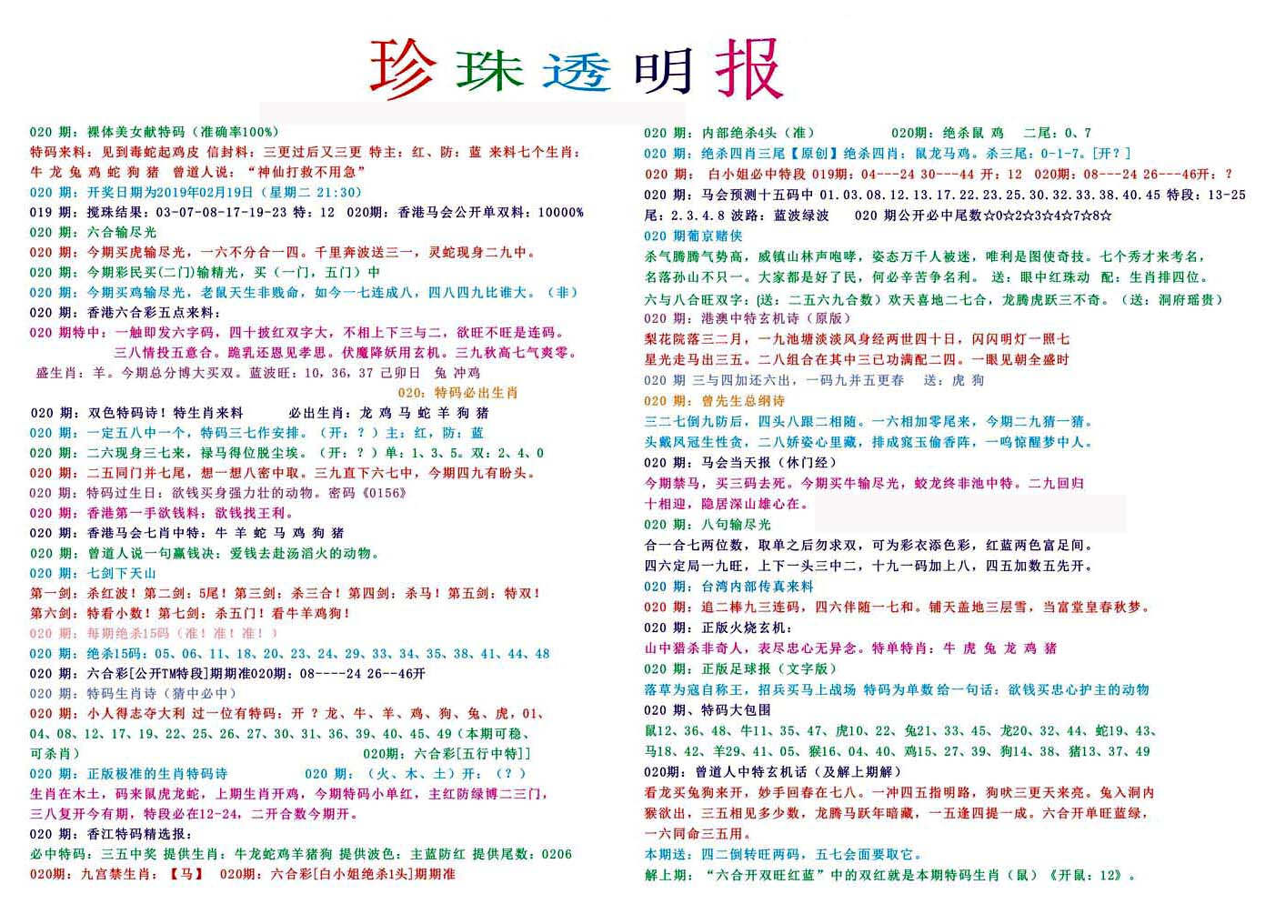 | 063 | 六合禅机A | 064 | 六合禅机B | 069 | 特 新 报A | 070 | 特 新 报B | |||||||||||||||||||||||||||||||||||||||||||||||||||