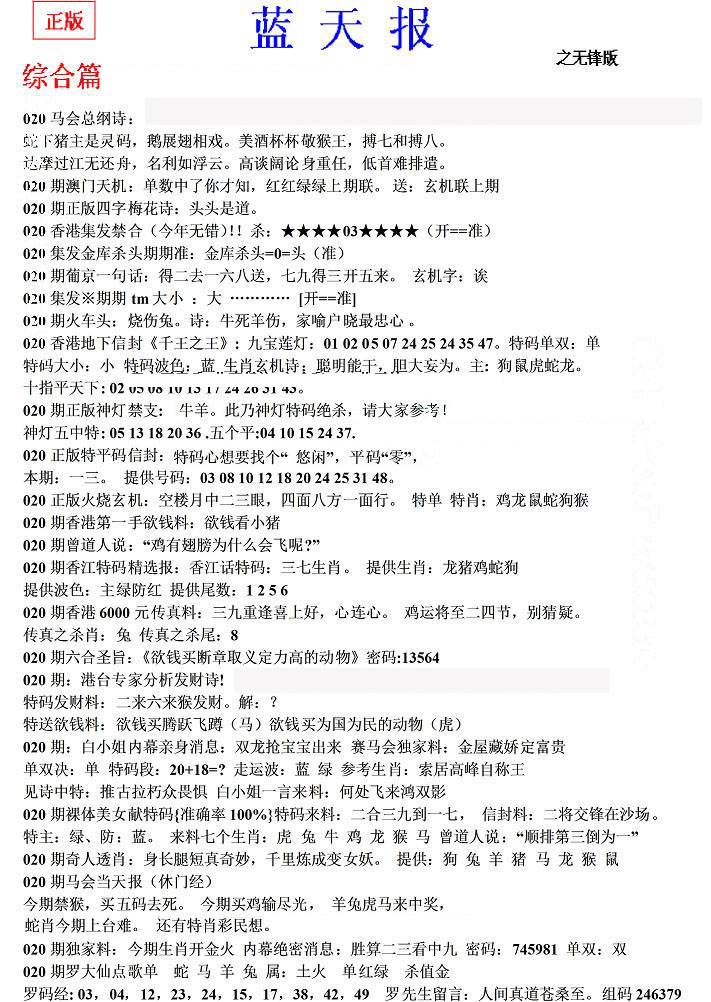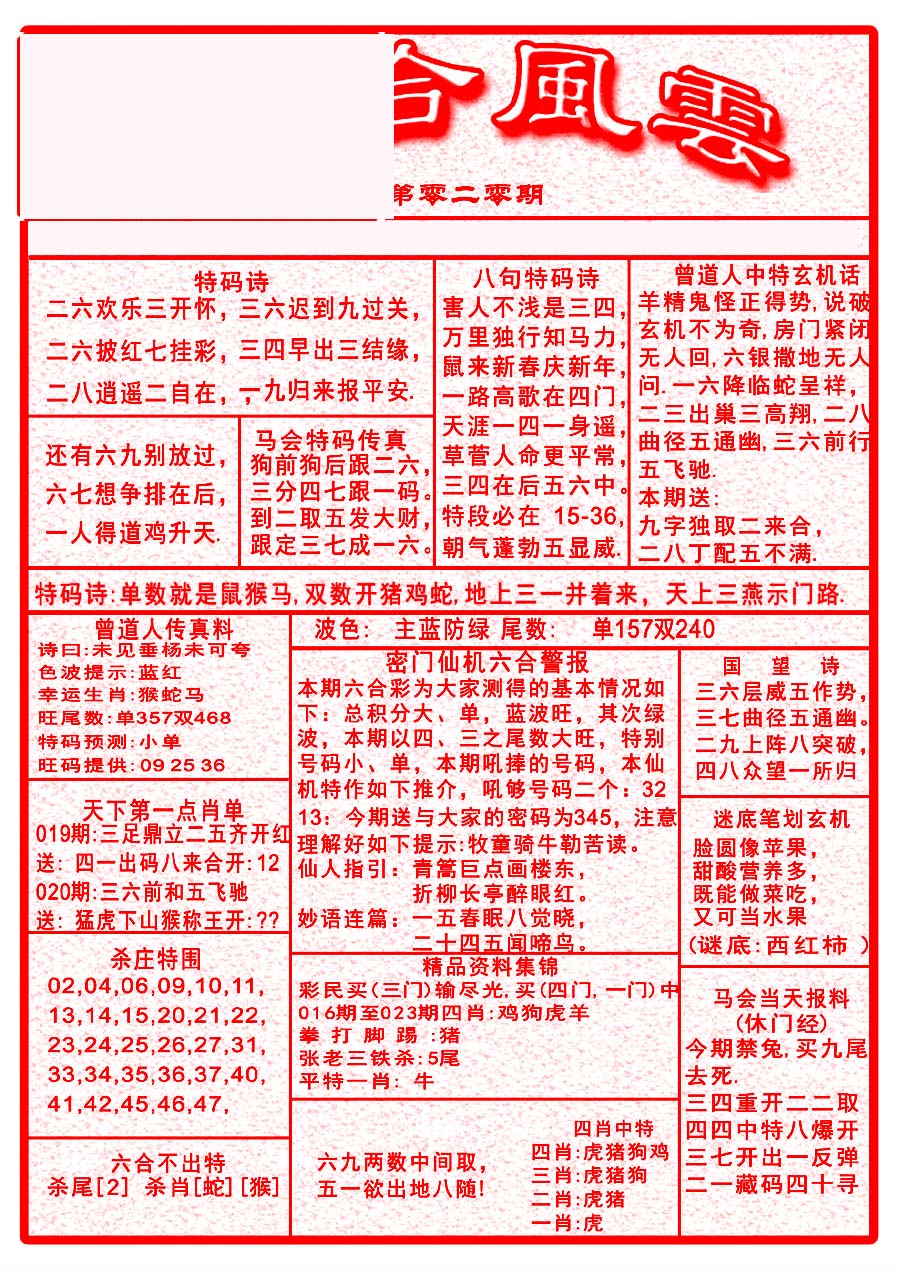 | 1577 | 精选 | 1579 | 伟哥神龙报 | 1581 | 精准传真报 | 1582 | 新天线宝宝内幕报 | |||||||||||||||||||||||||||||||||||||||||||||||||||