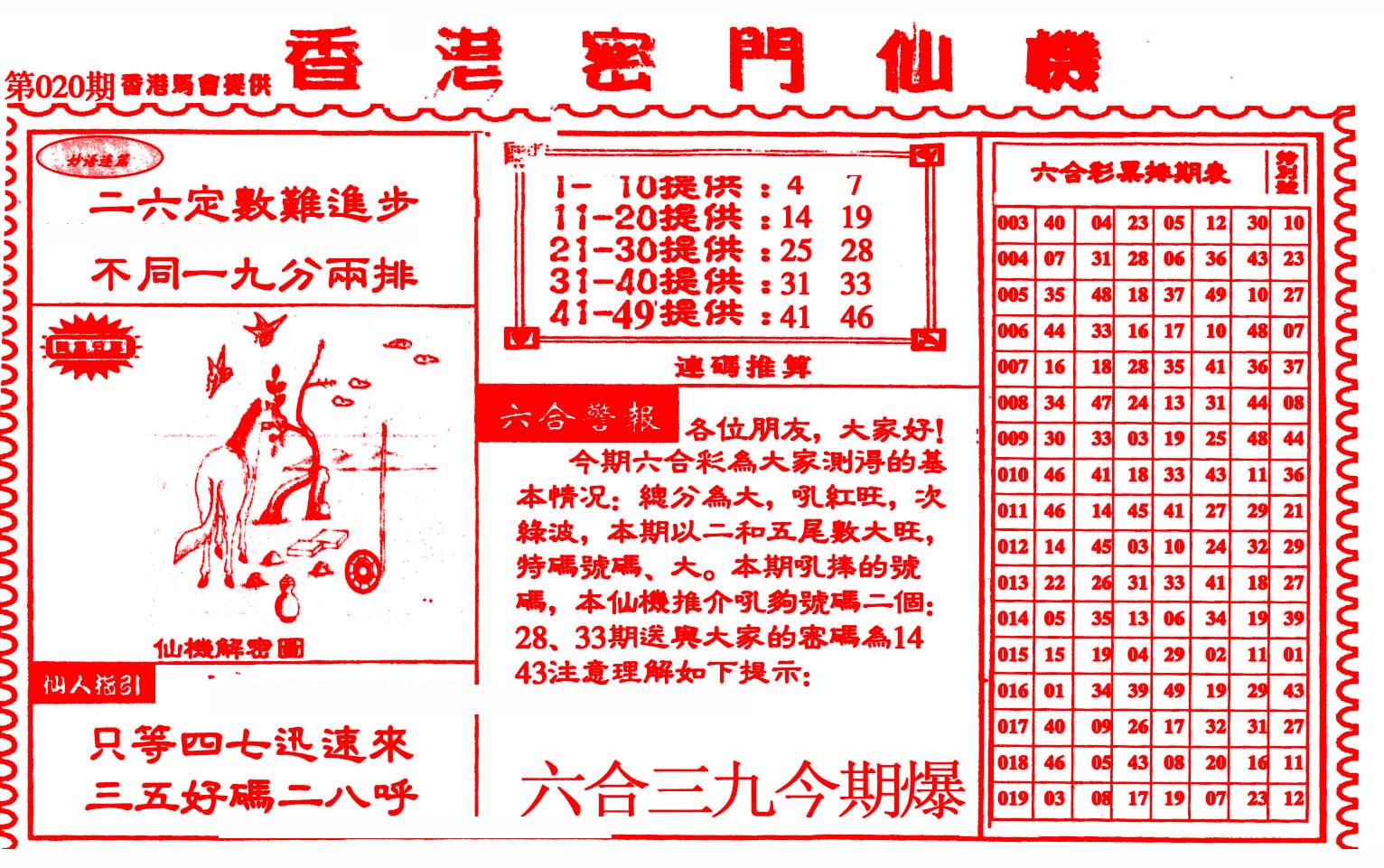 | 1659 | 另二代孔明报 | 1660 | 马经平特图 | 1661 | 杀杀杀A | 1662 | 杀杀杀B | |||||||||||||||||||||||||||||||||||||||||||||||||||