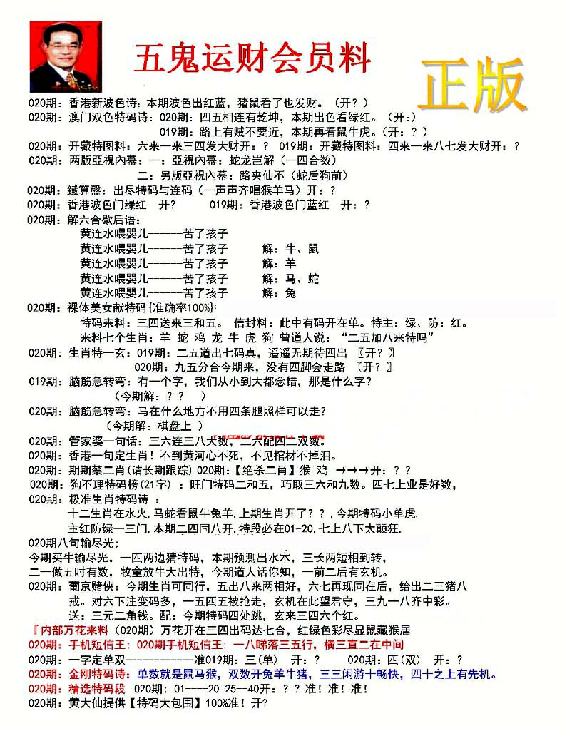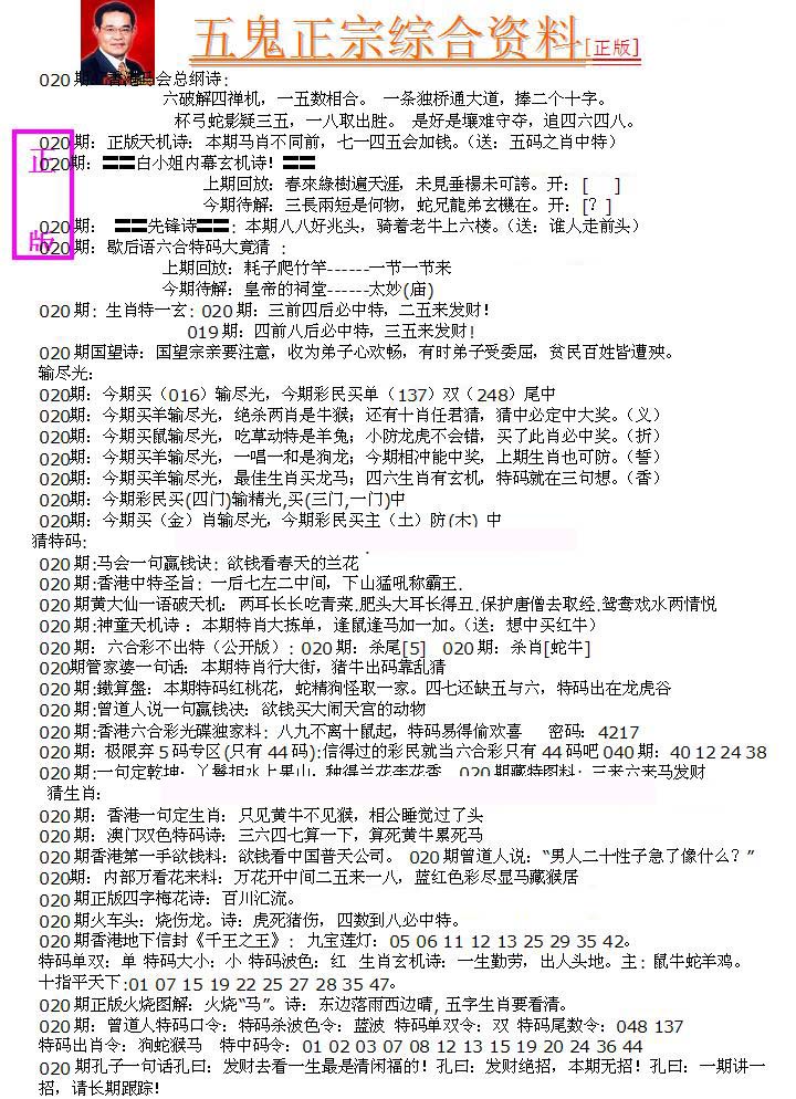 | 1401 | 正版2800信封 | 1402 | 特码内幕A | 1403 | 特码内幕B | 1404 | 五鬼正宗综合资料A | |||||||||||||||||||||||||||||||||||||||||||||||||||