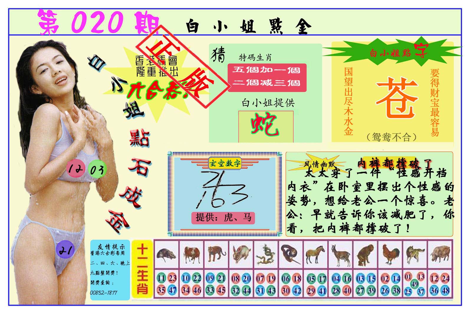 | 830 | 马会快特 | 831 | 白小姐奥妙 | 832 | 白小姐杀码王 | 833 | 白小姐心经 | |||||||||||||||||||||||||||||||||||||||||||||||||||