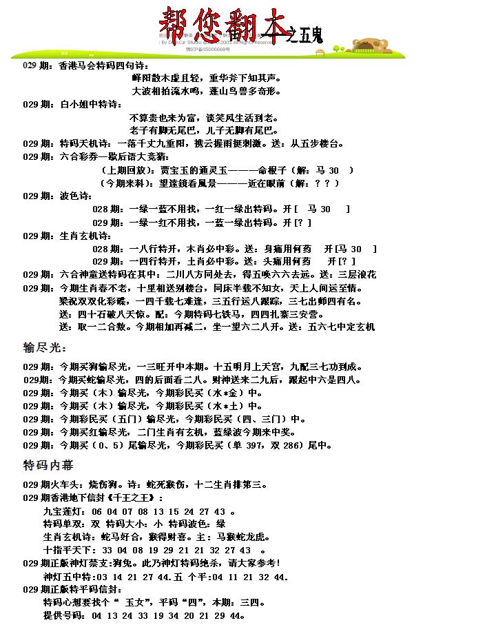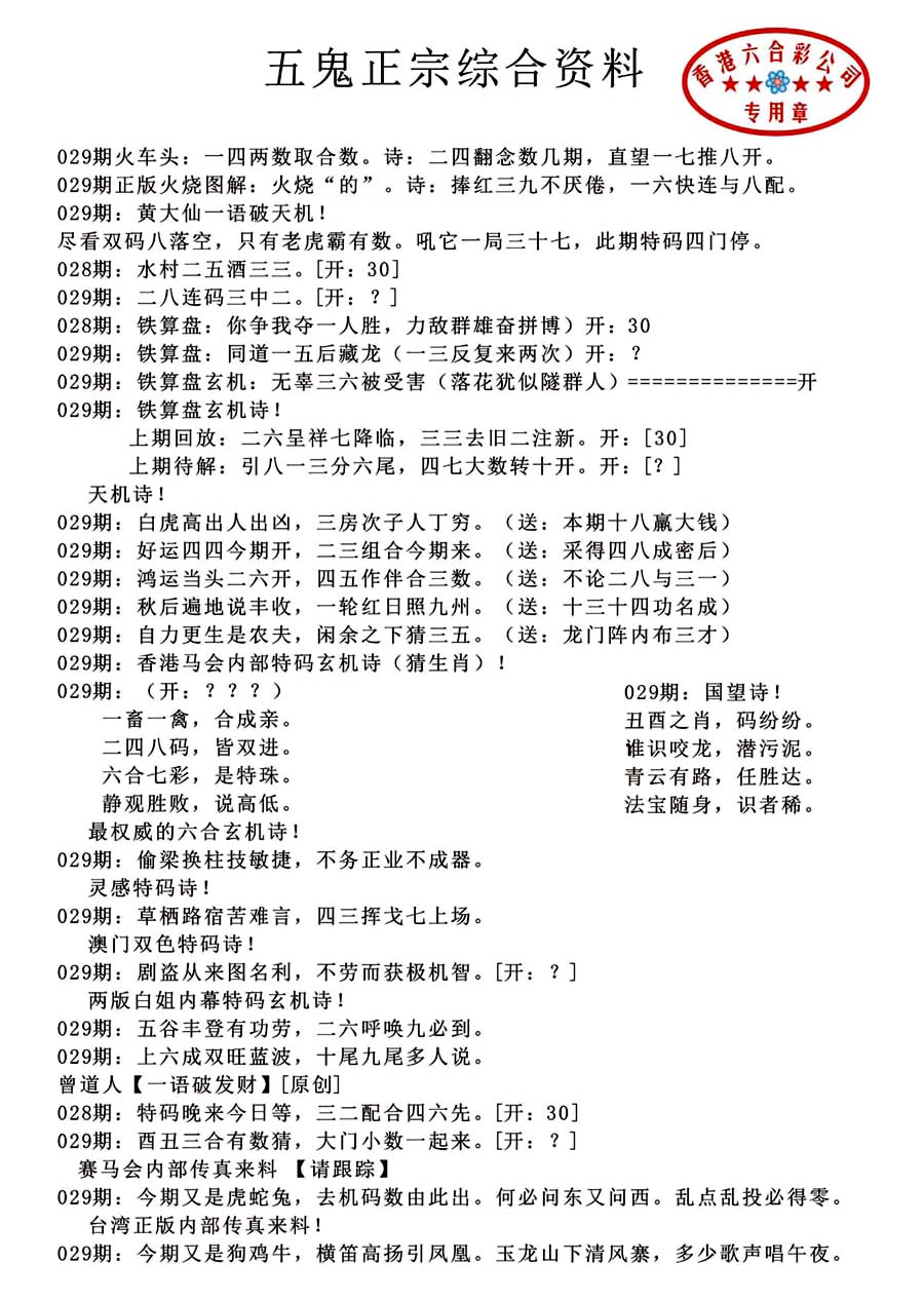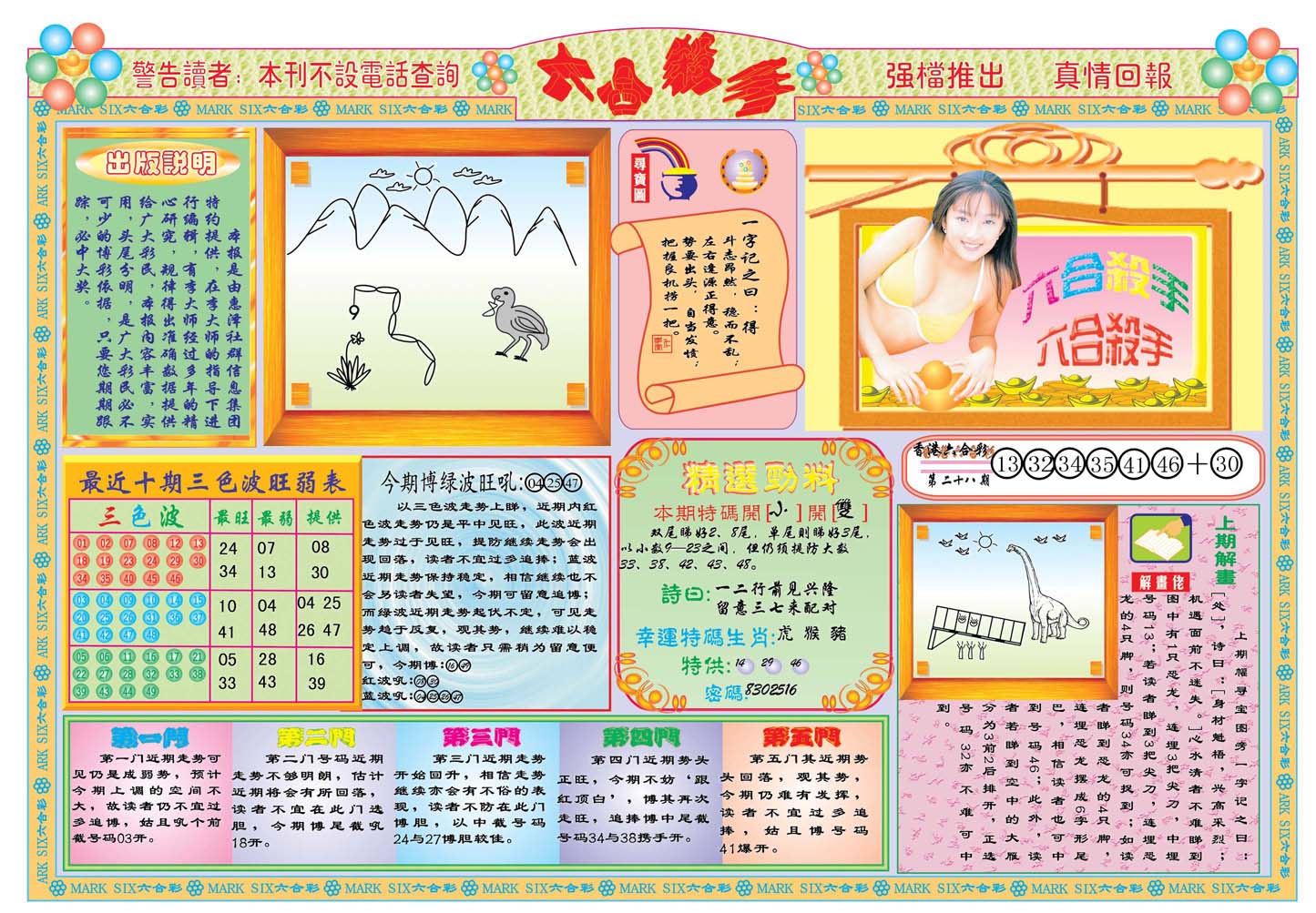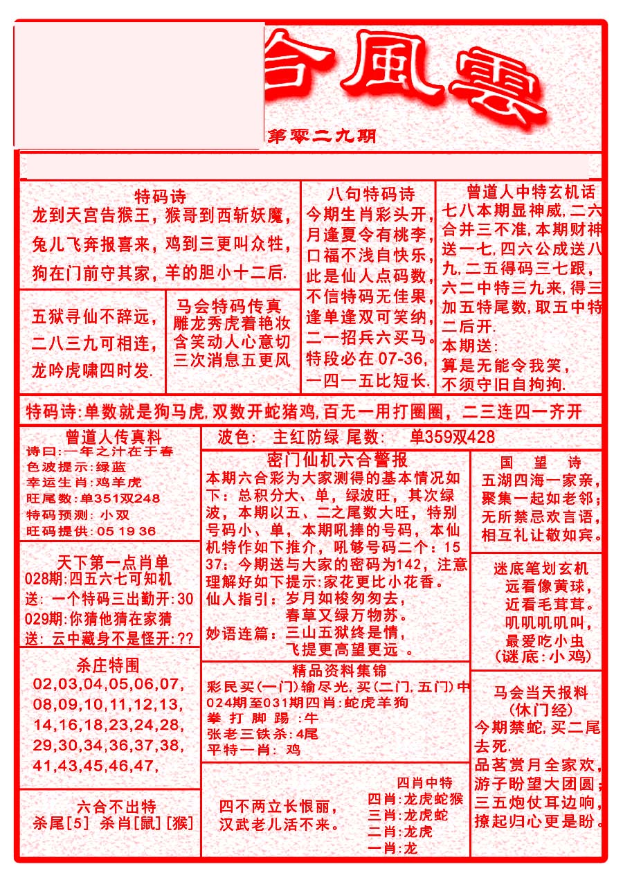 | 1336 | 统一玄机报 | 1337 | 正宗青龙五鬼报A | 1338 | 正宗青龙五鬼报B | 1339 | 美女六肖报 | |||||||||||||||||||||||||||||||||||||||||||||||||||