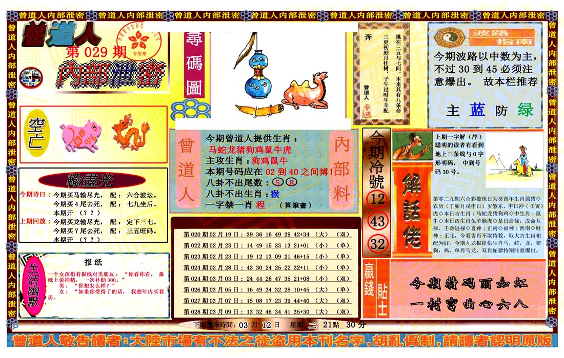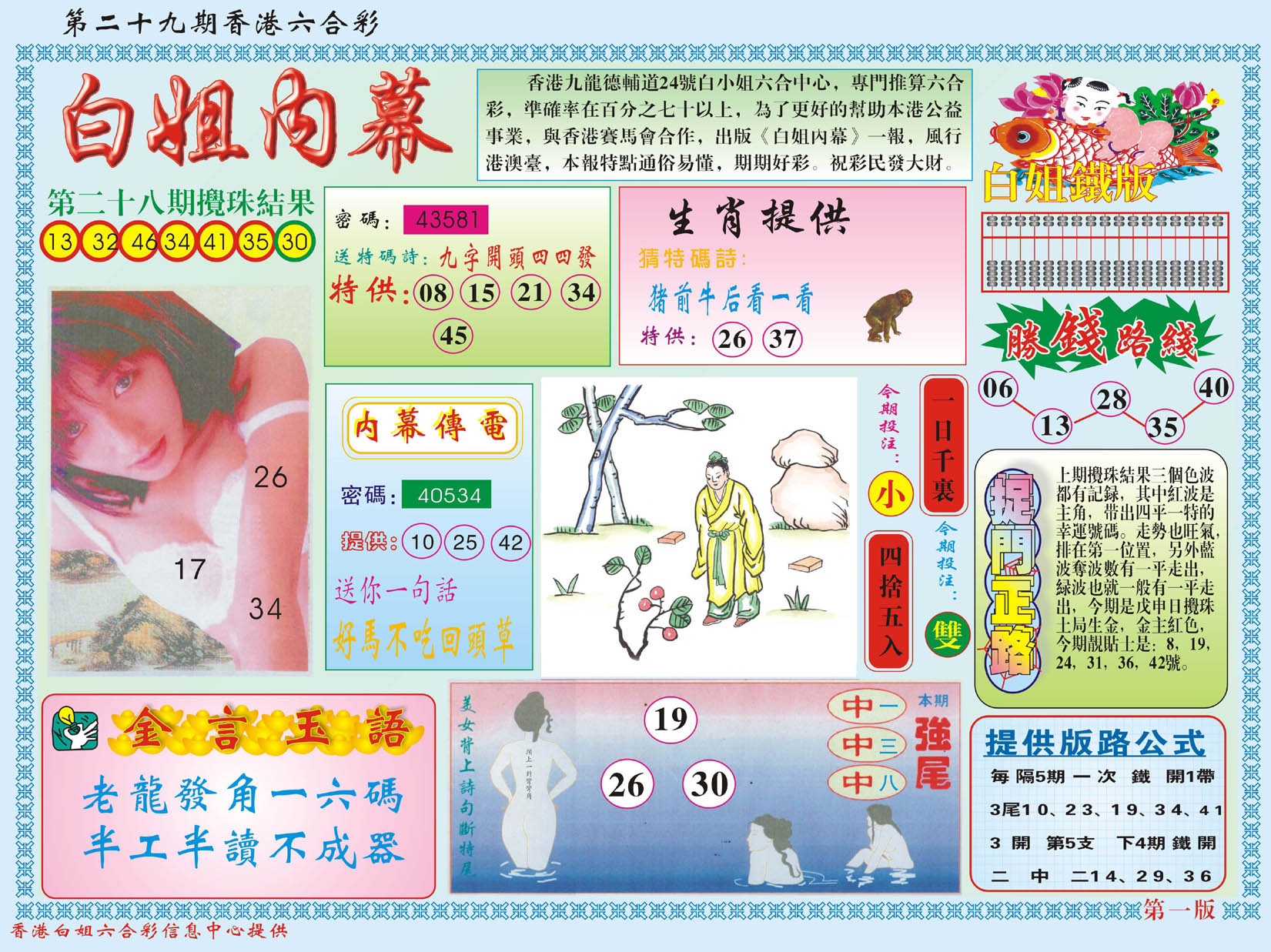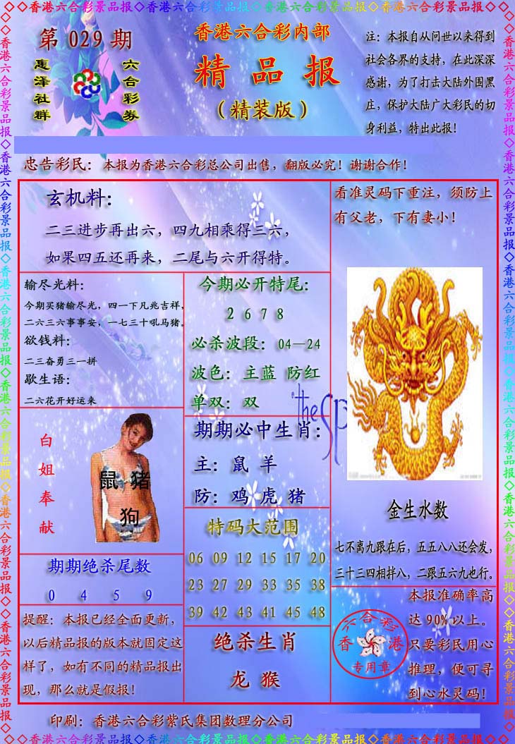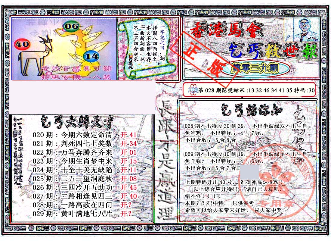 | 1336 | 统一玄机报 | 1337 | 正宗青龙五鬼报A | 1338 | 正宗青龙五鬼报B | 1339 | 美女六肖报 | |||||||||||||||||||||||||||||||||||||||||||||||||||