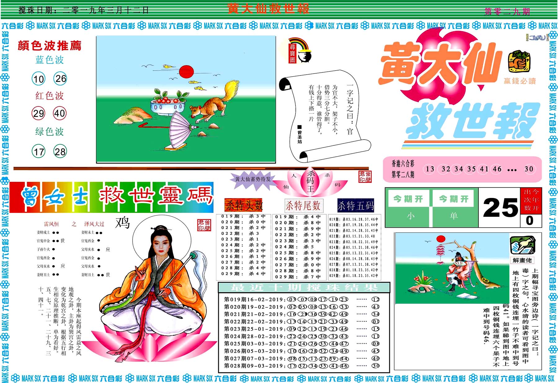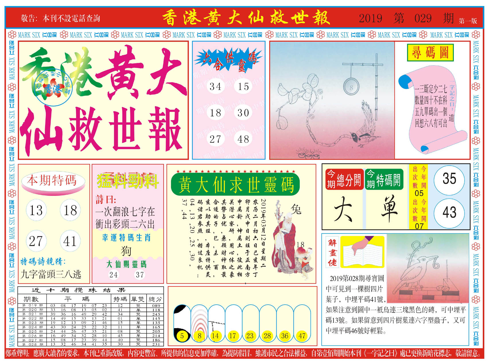 | 019 | 黄大仙救世报A | 020 | 黄大仙救世报B | 021 | 香港黄大仙报A | 022 | 香港黄大仙报B | |||||||||||||||||||||||||||||||||||||||||||||||||||