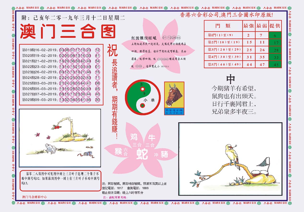| 531 | 黄大仙射箭(杂毛) | 532 | 凤凰马经(杂毛) | 561 | 百家汇A | 562 | 百家汇B | |||||||||||||||||||||||||||||||||||||||||||||||||||
