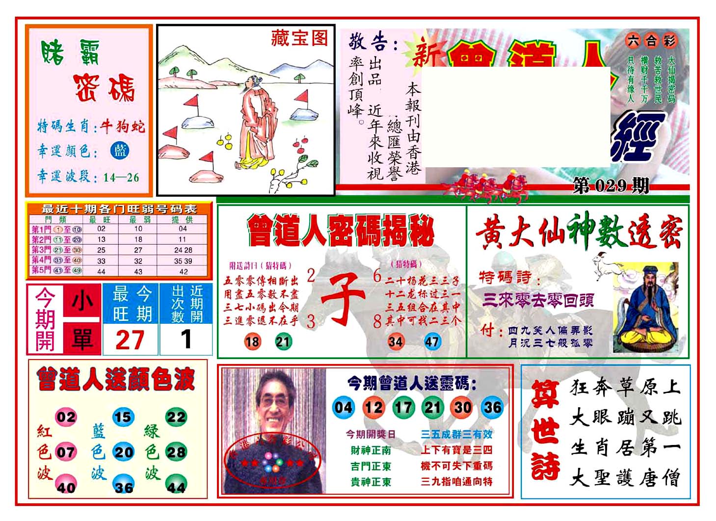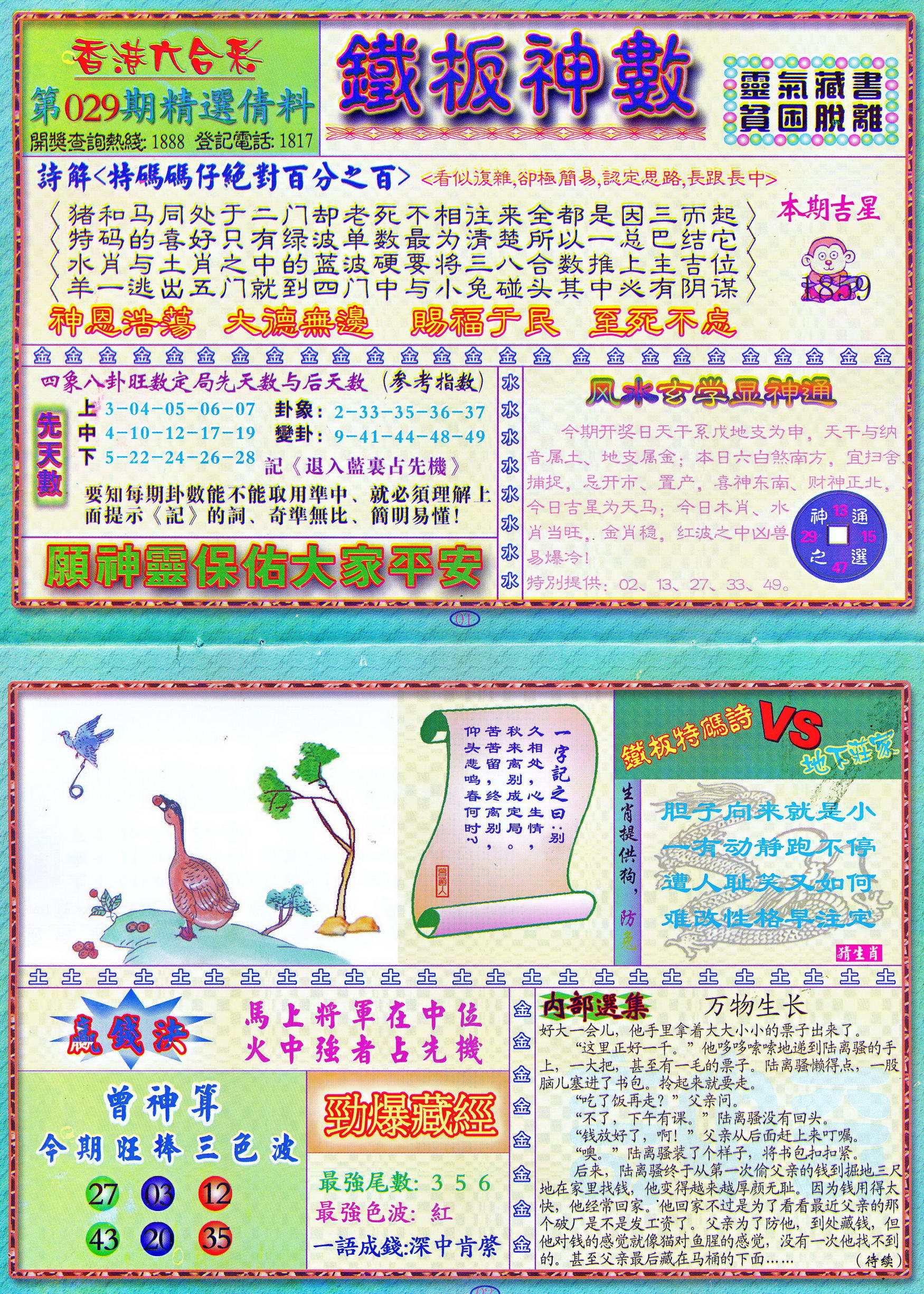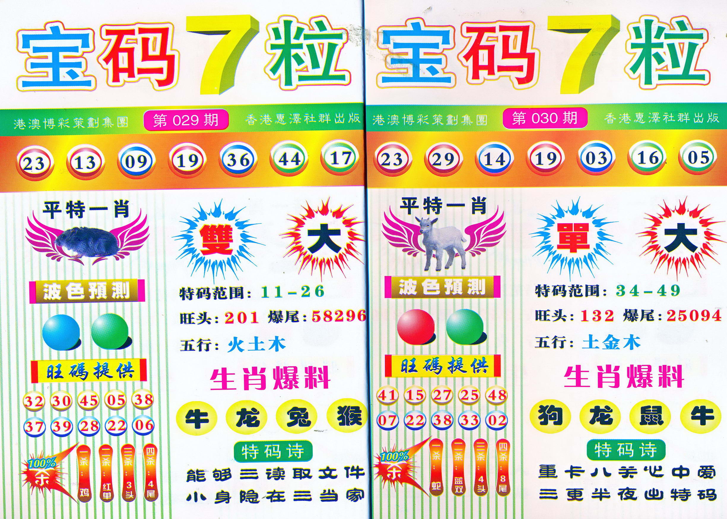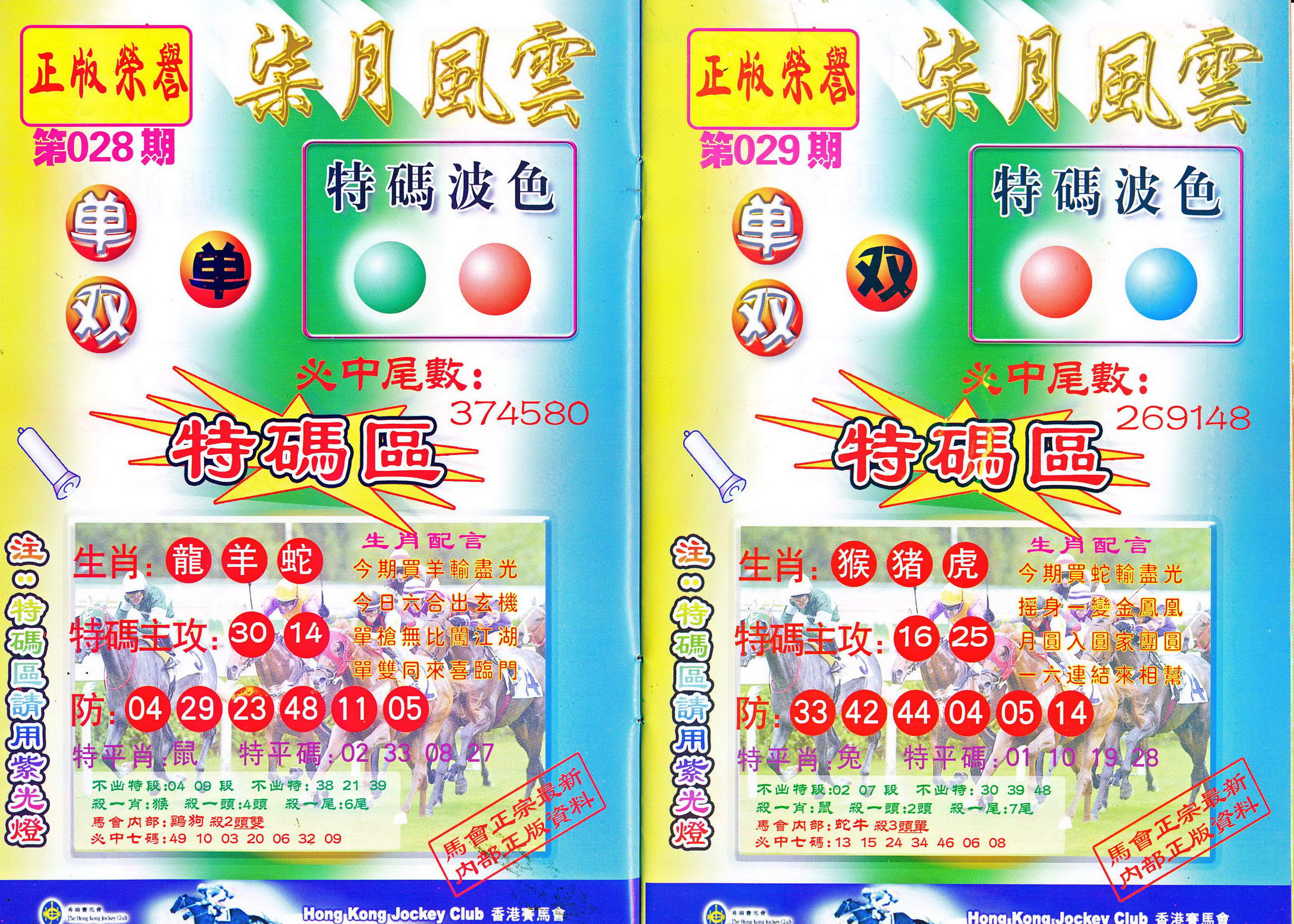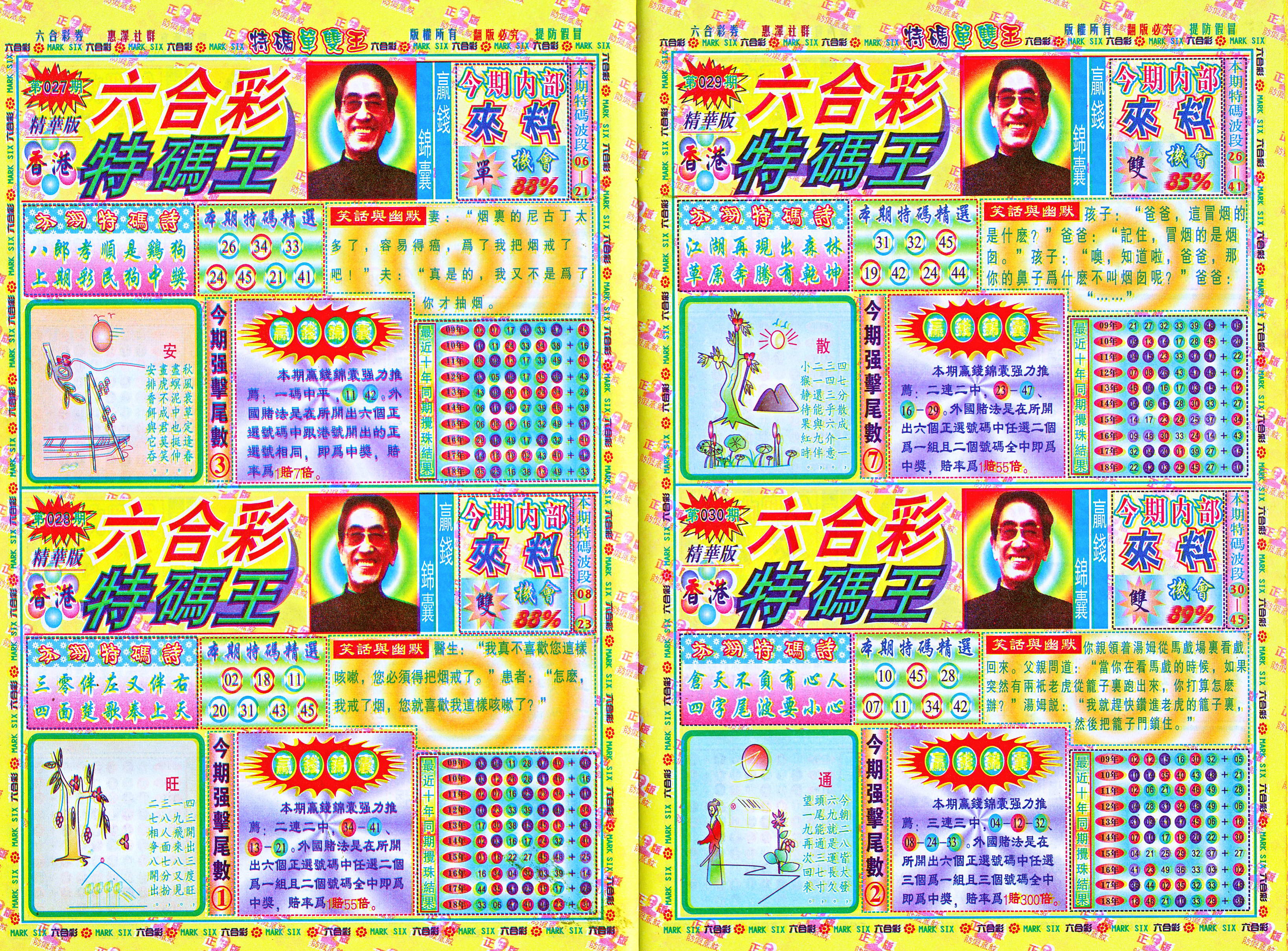 | 1765 | 黄大仙救世报 | 1766 | 香港马会专刊A | 1767 | 香港马会专刊B | 1768 | 赌王心经 |