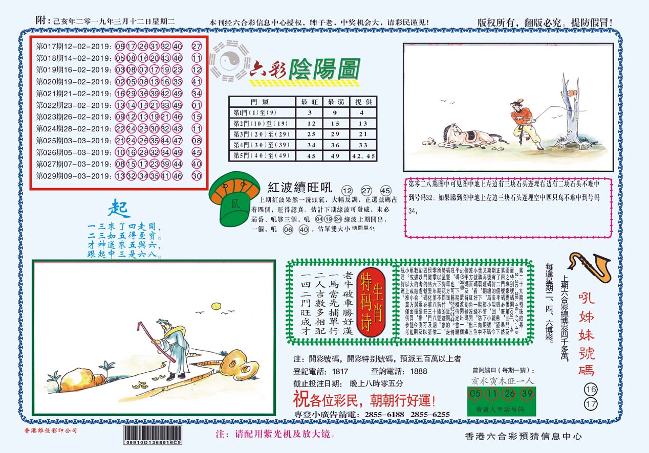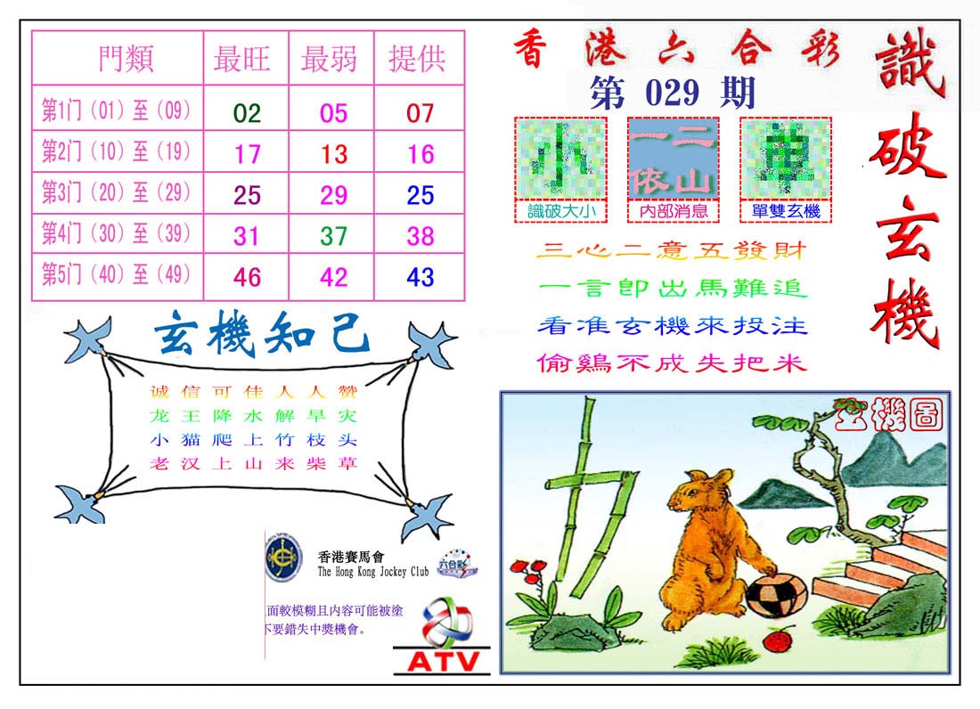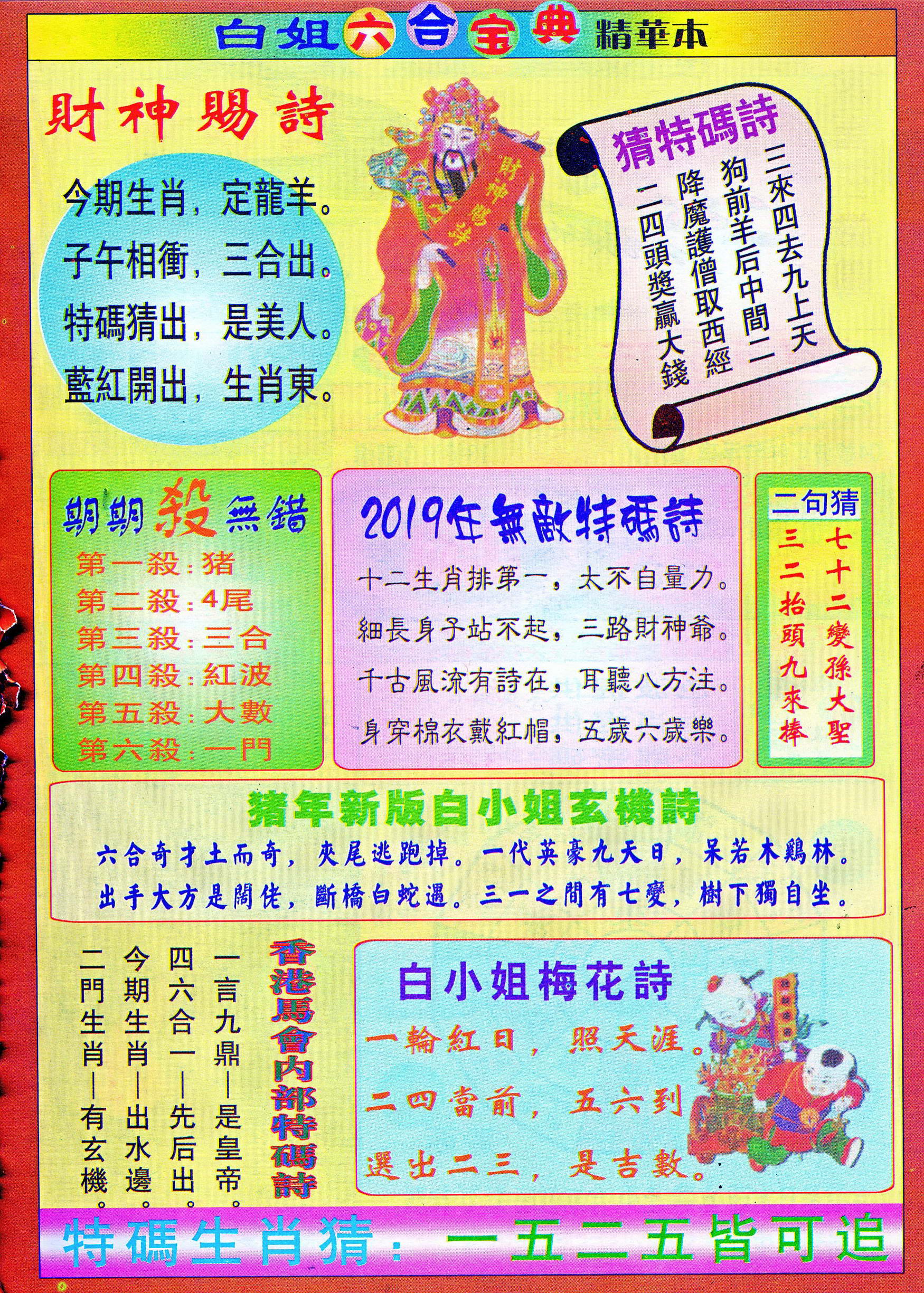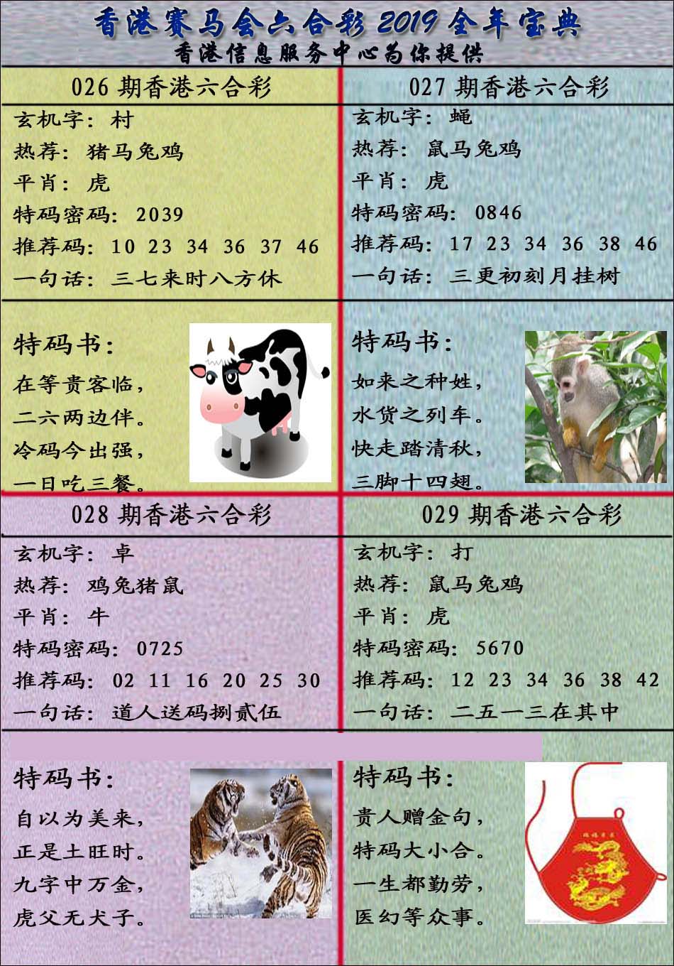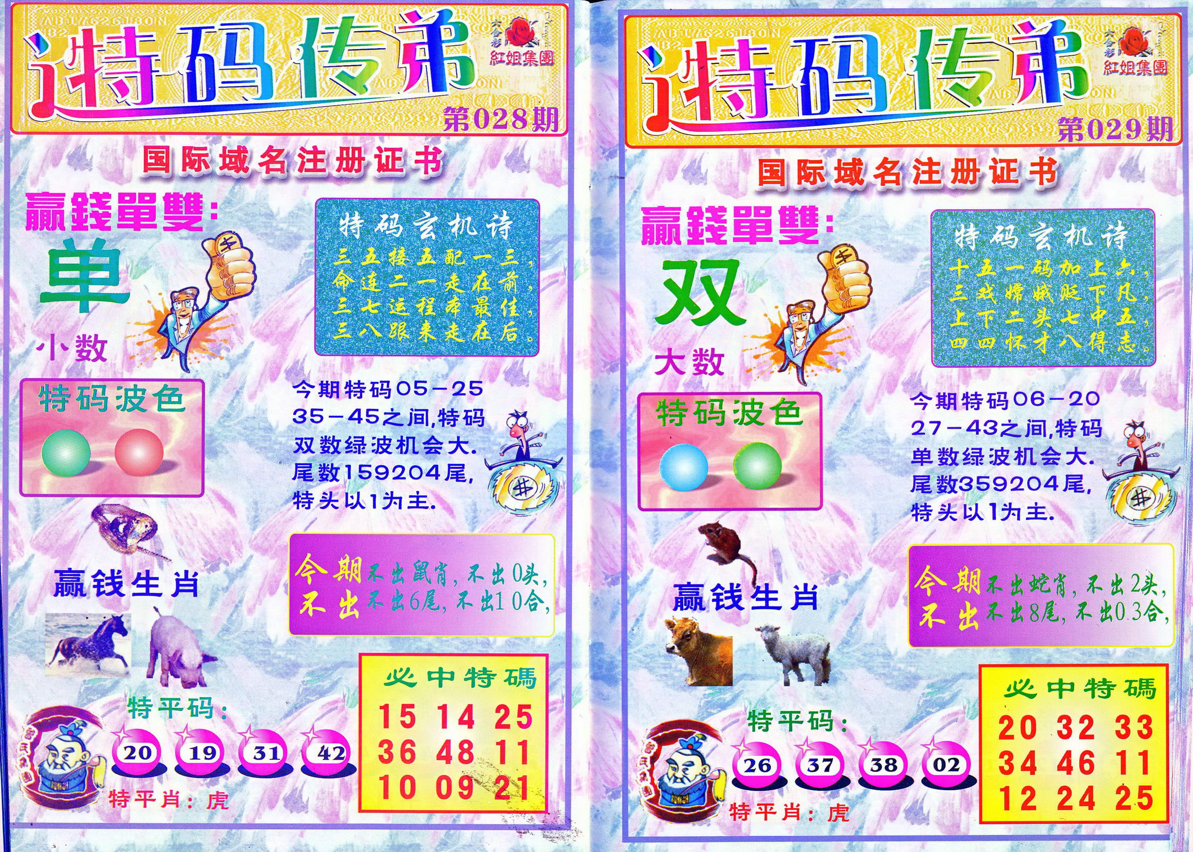 | 1765 | 黄大仙救世报 | 1766 | 香港马会专刊A | 1767 | 香港马会专刊B | 1768 | 赌王心经 |