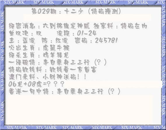 | 233 | 内幕玄机加大版A | 234 | 内幕玄机加大版B | 235 | 六合心经A | 236 | 六合心经B | |||||||||||||||||||||||||||||||||||||||||||||||||||