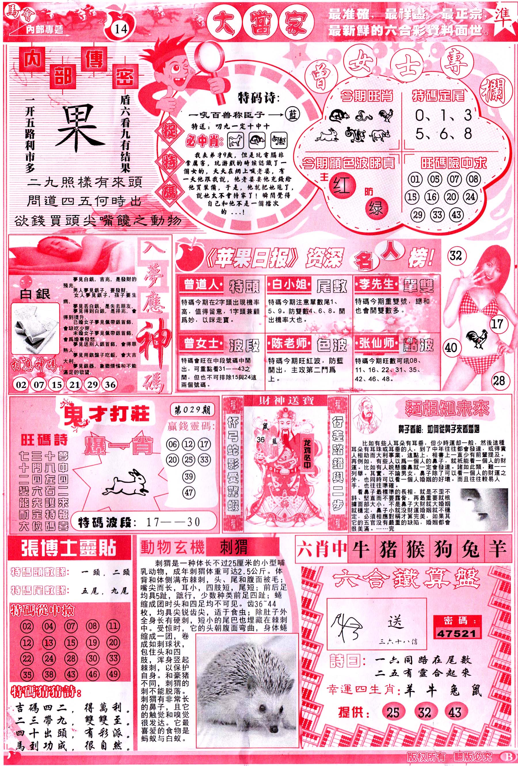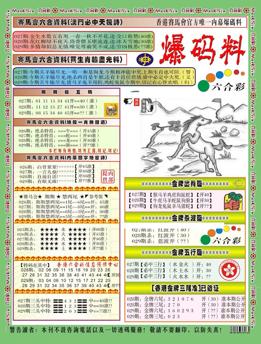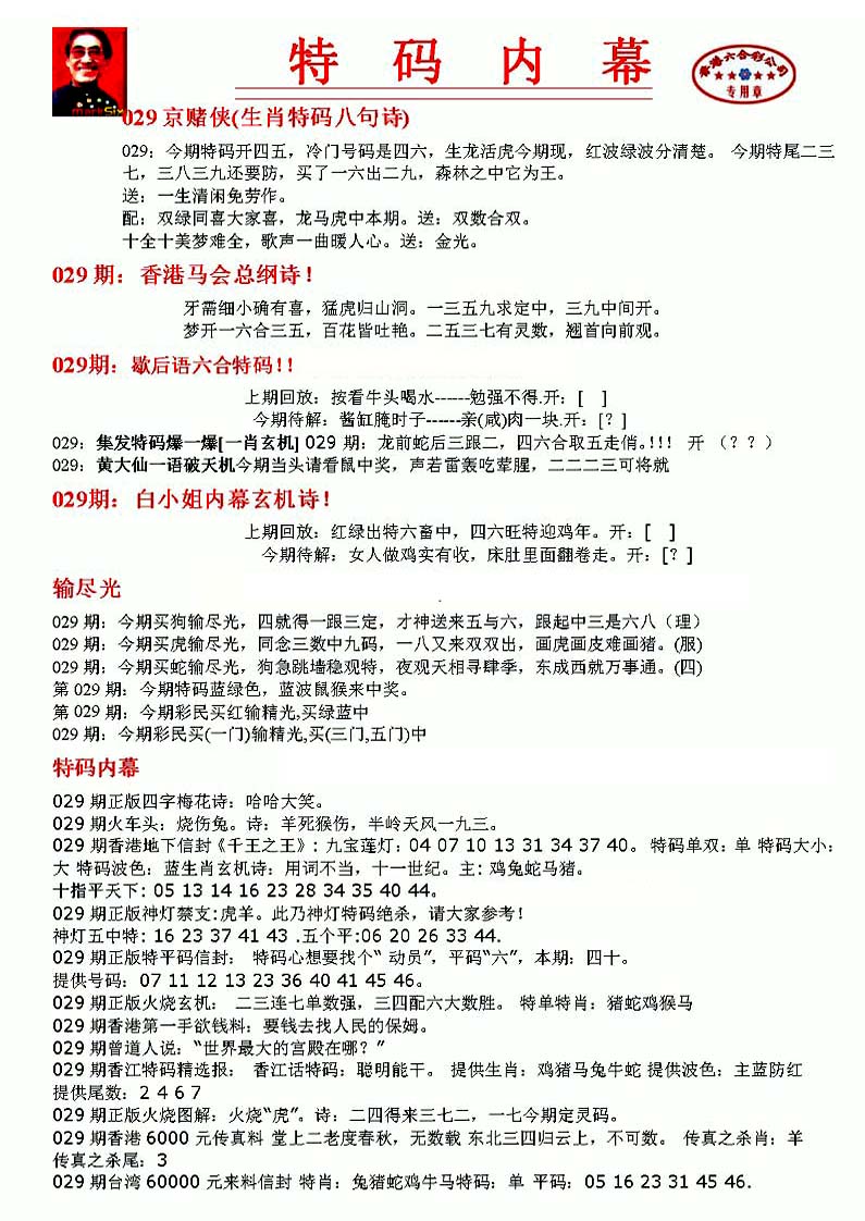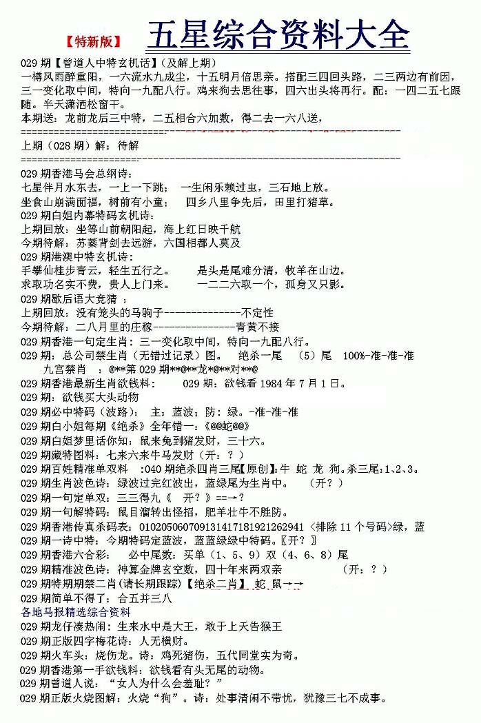 | 063 | 六合禅机A | 064 | 六合禅机B | 069 | 特 新 报A | 070 | 特 新 报B | |||||||||||||||||||||||||||||||||||||||||||||||||||