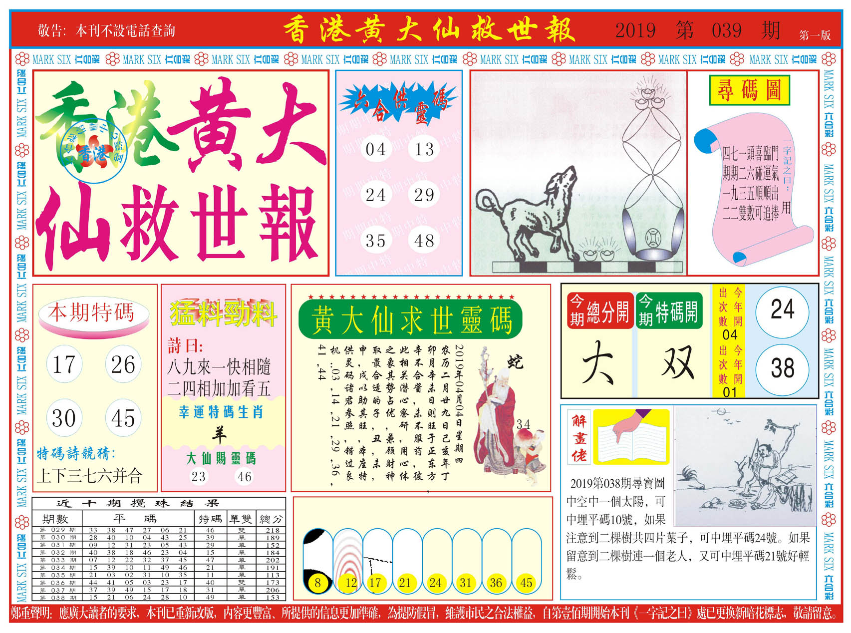 | 019 | 黄大仙救世报A | 020 | 黄大仙救世报B | 021 | 香港黄大仙报A | 022 | 香港黄大仙报B | |||||||||||||||||||||||||||||||||||||||||||||||||||