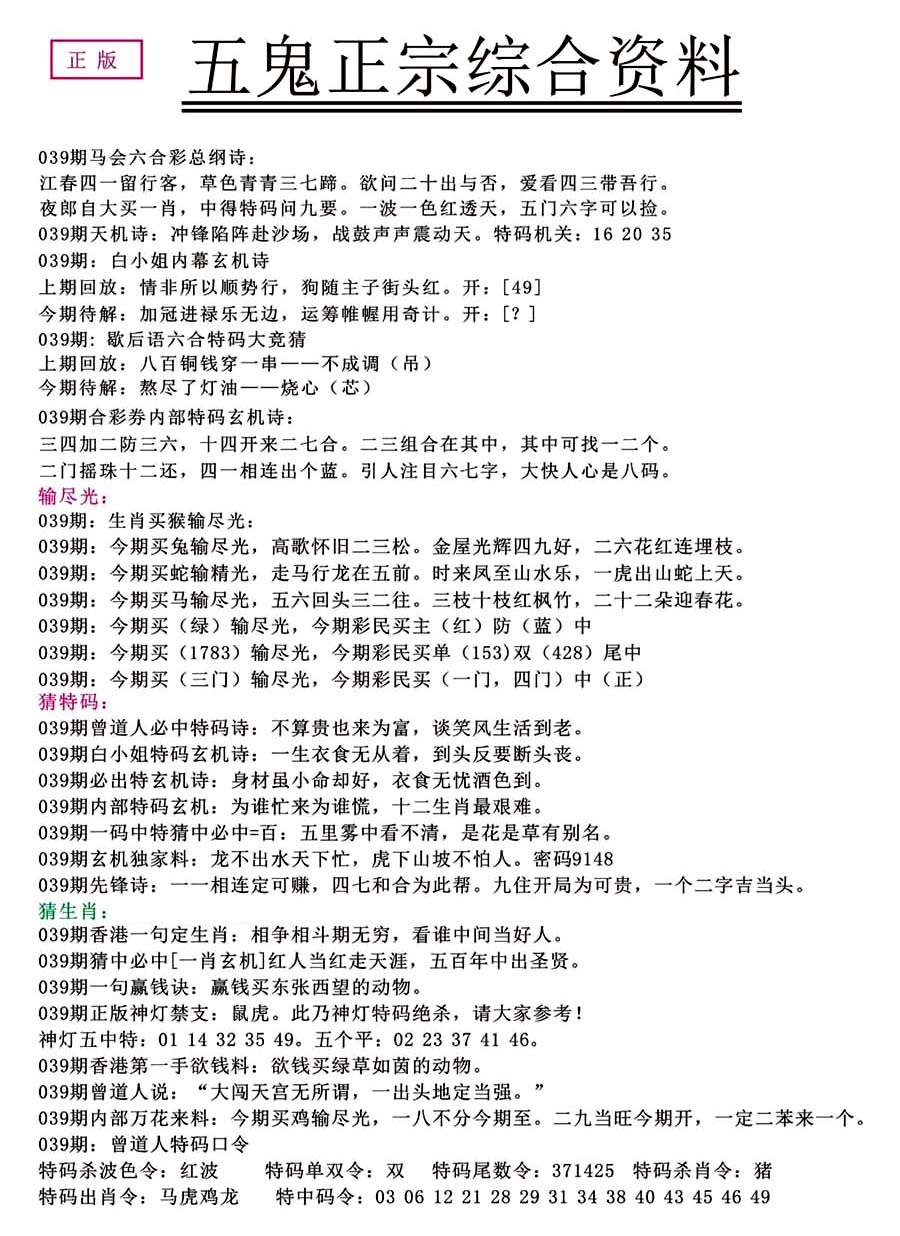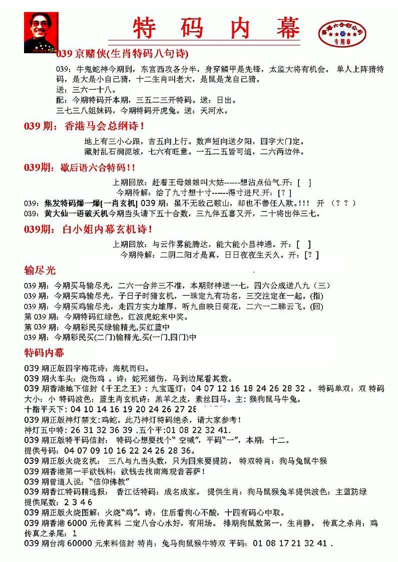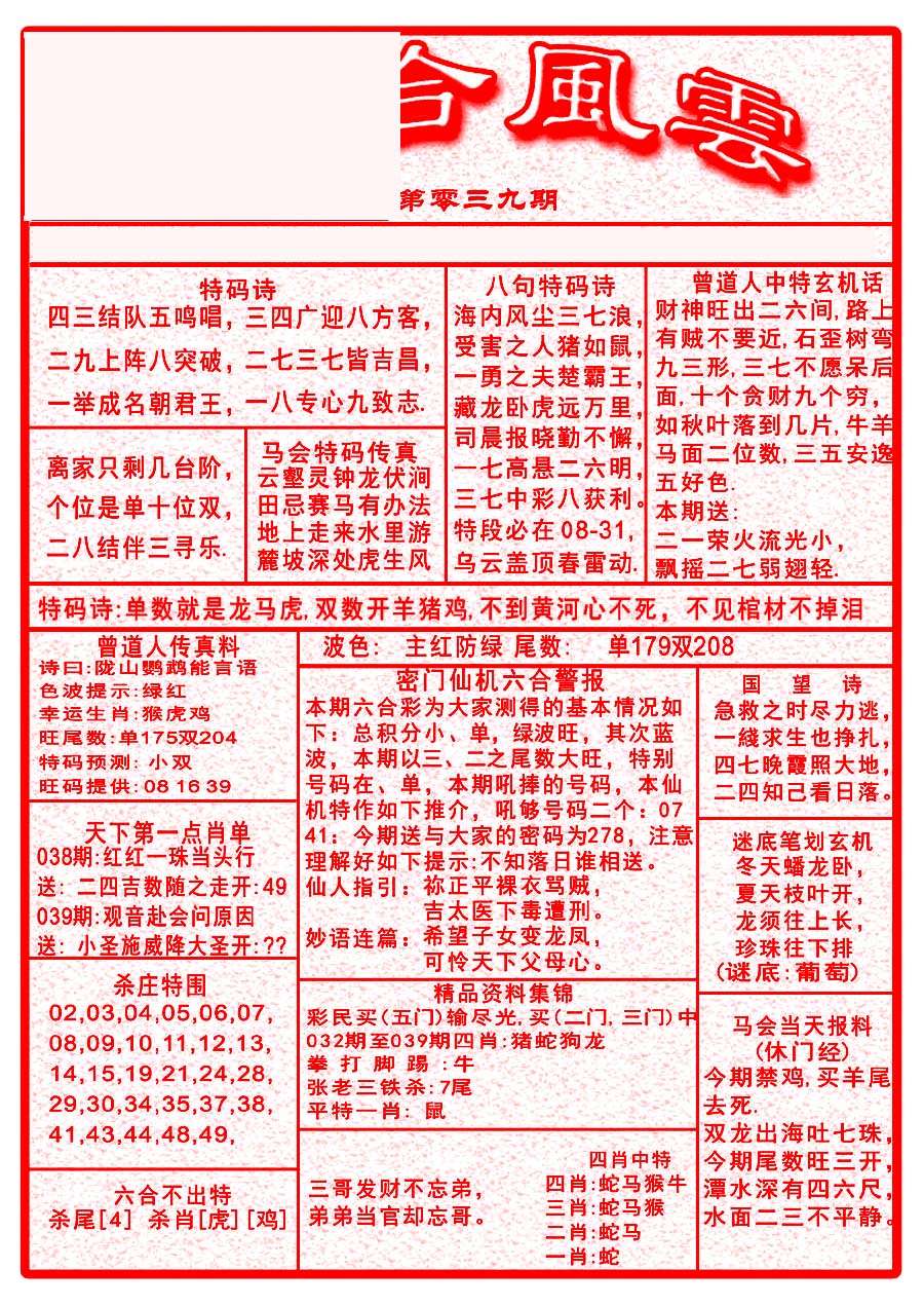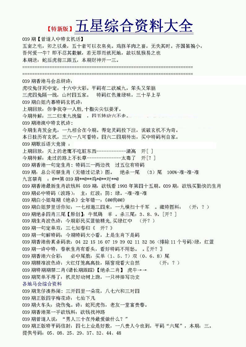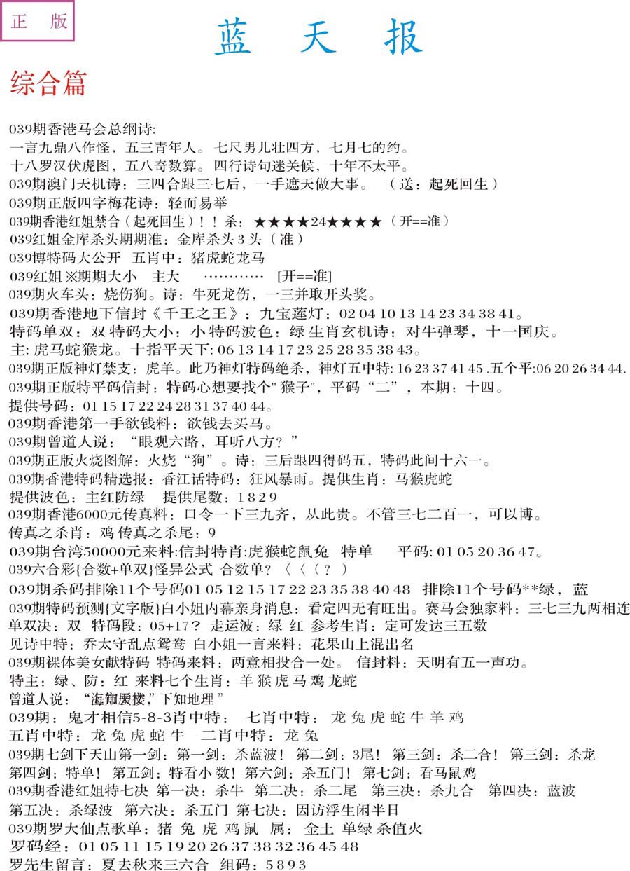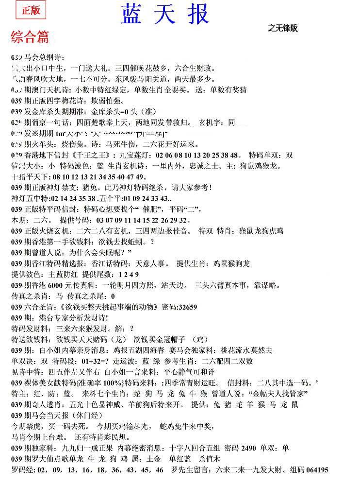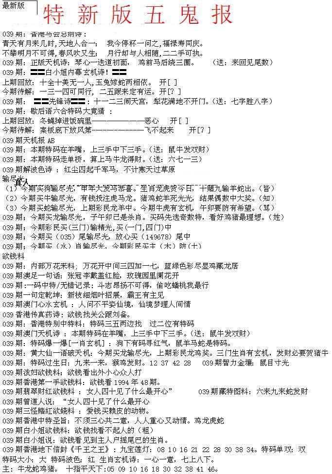 | 063 | 六合禅机A | 064 | 六合禅机B | 069 | 特 新 报A | 070 | 特 新 报B | |||||||||||||||||||||||||||||||||||||||||||||||||||
