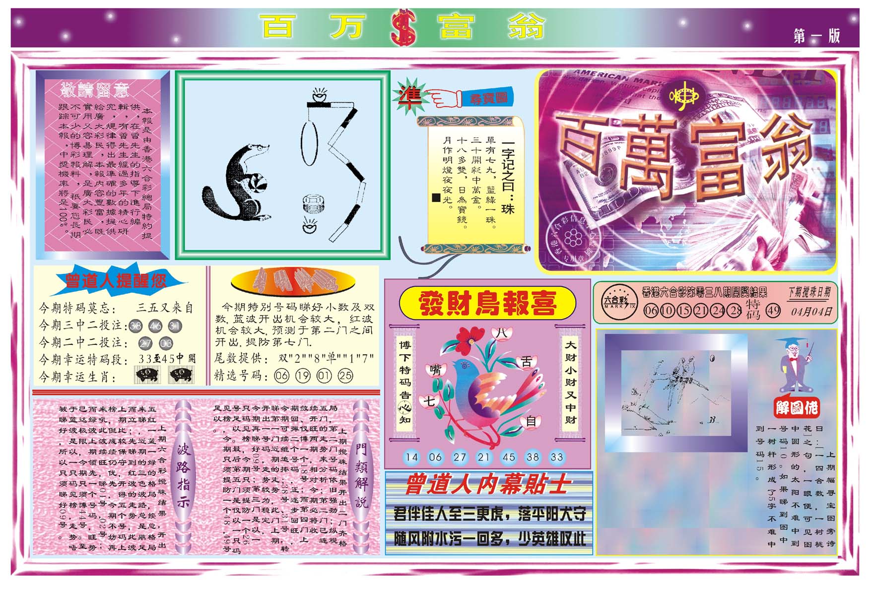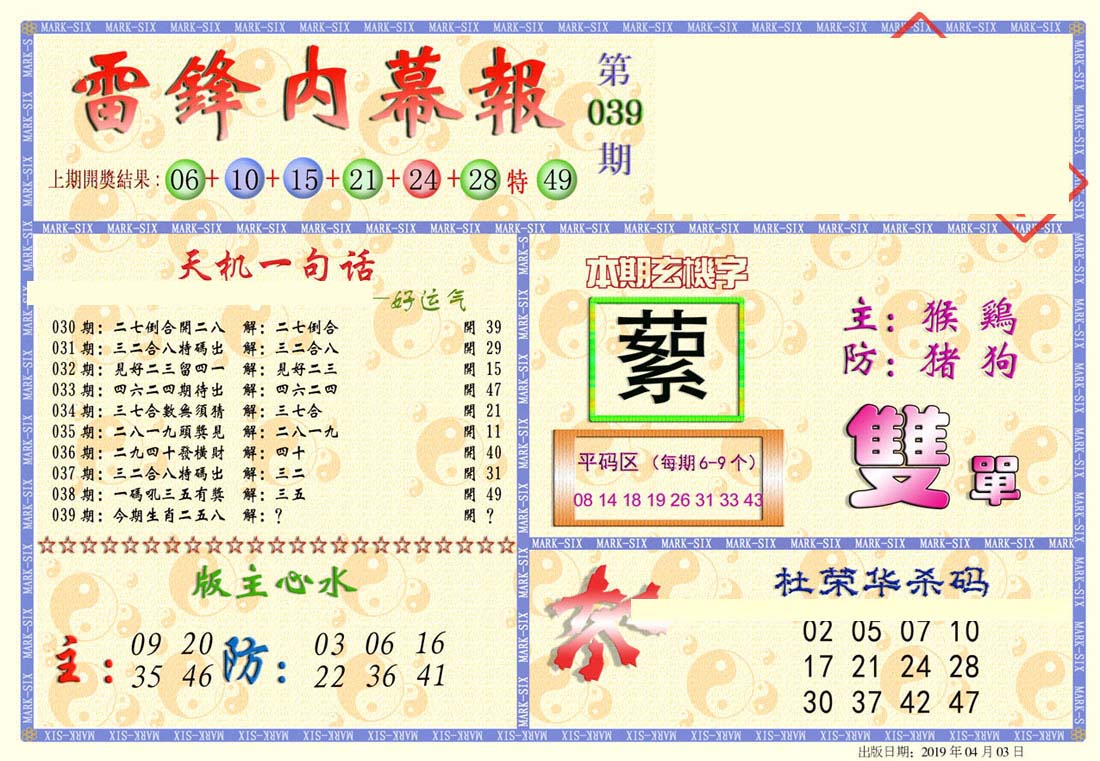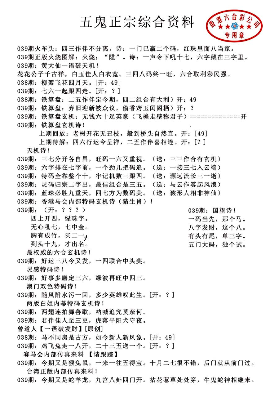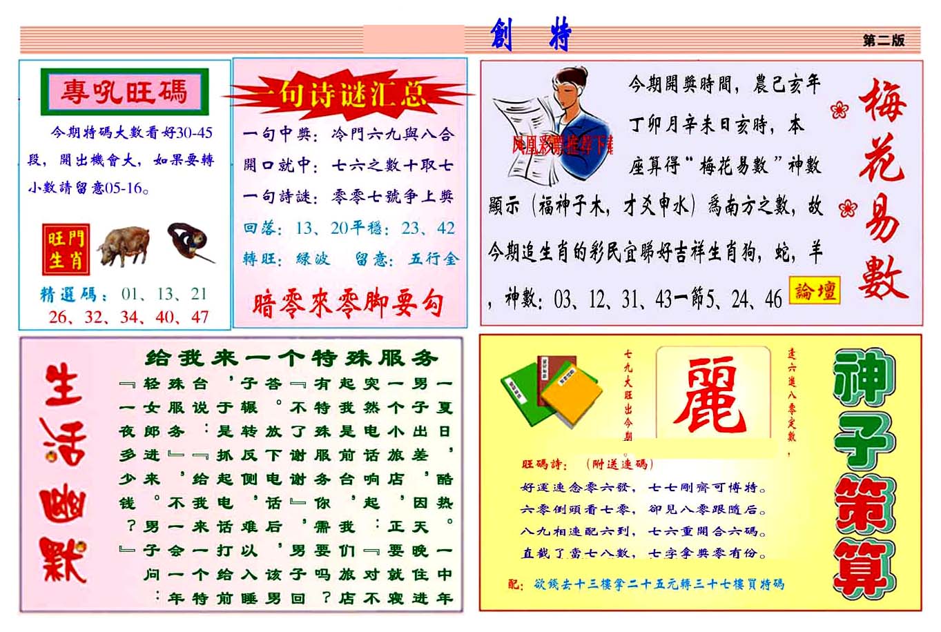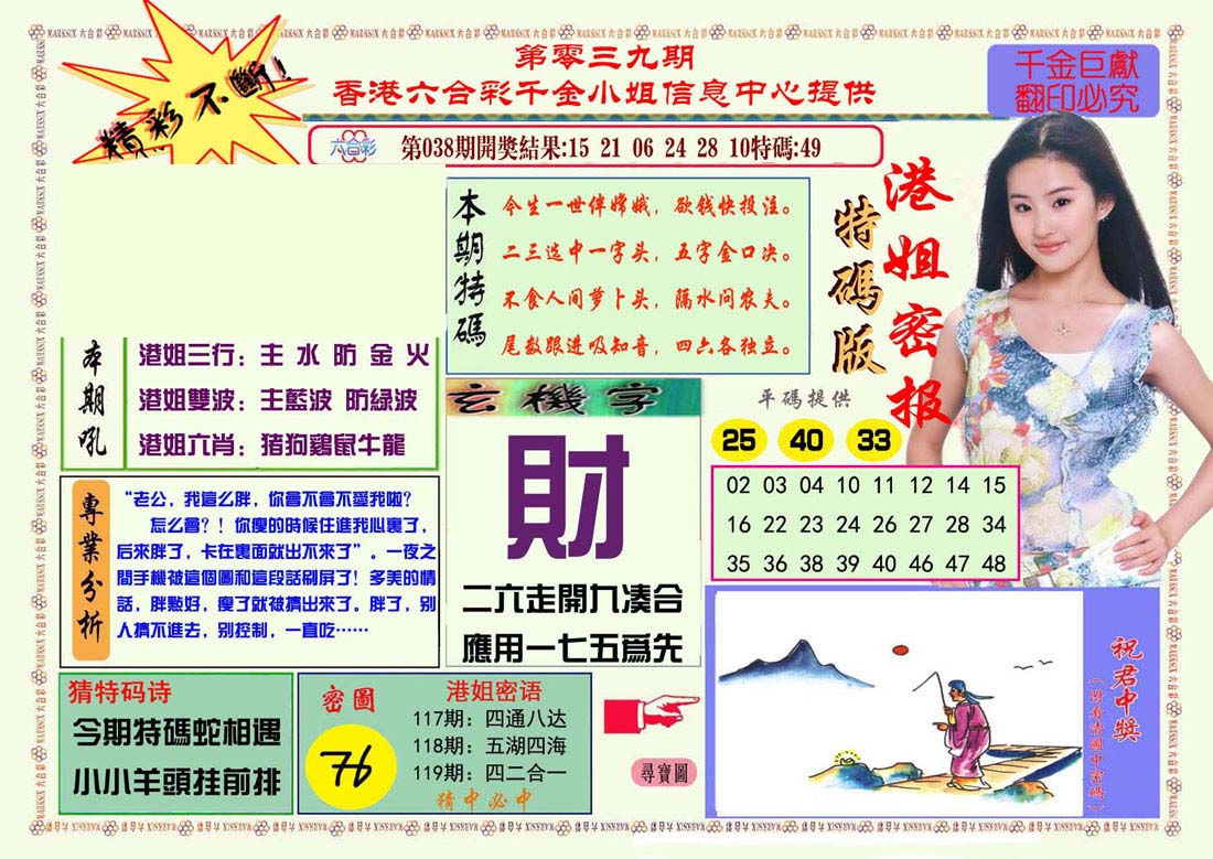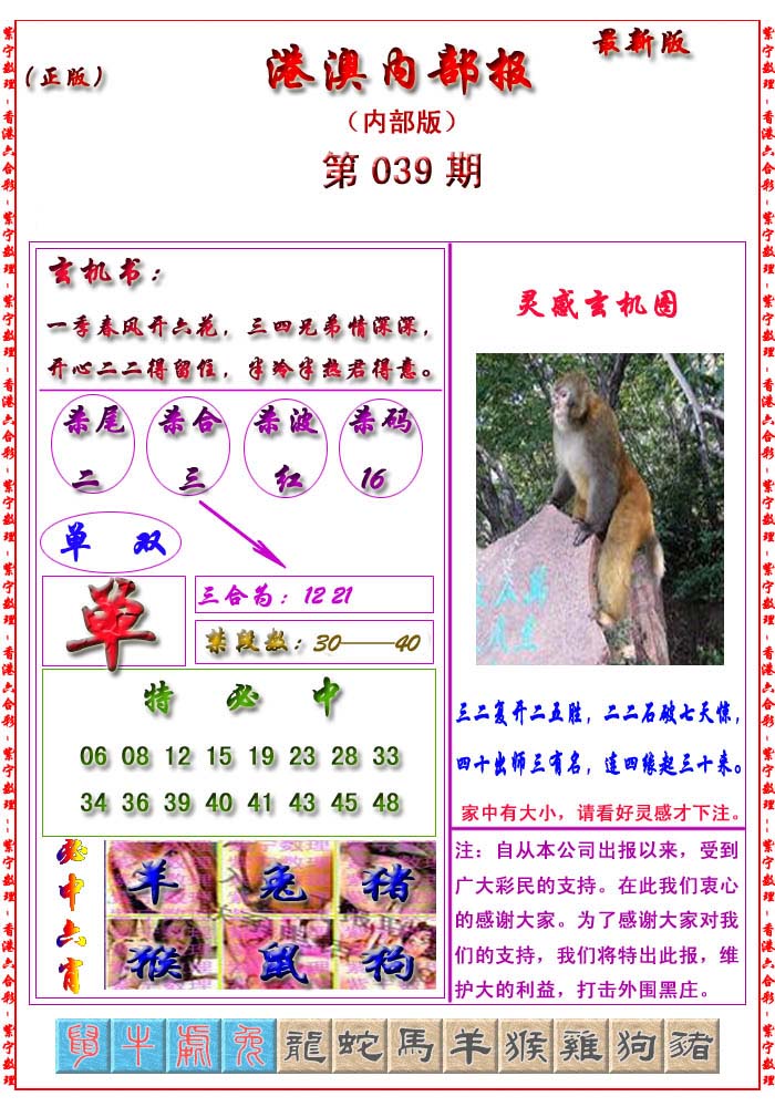 | 063 | 六合禅机A | 064 | 六合禅机B | 069 | 特 新 报A | 070 | 特 新 报B | |||||||||||||||||||||||||||||||||||||||||||||||||||
