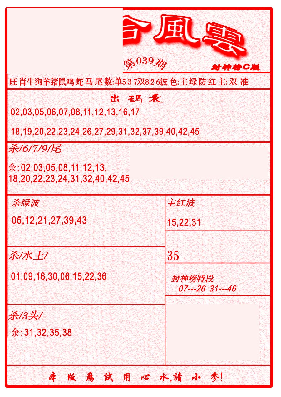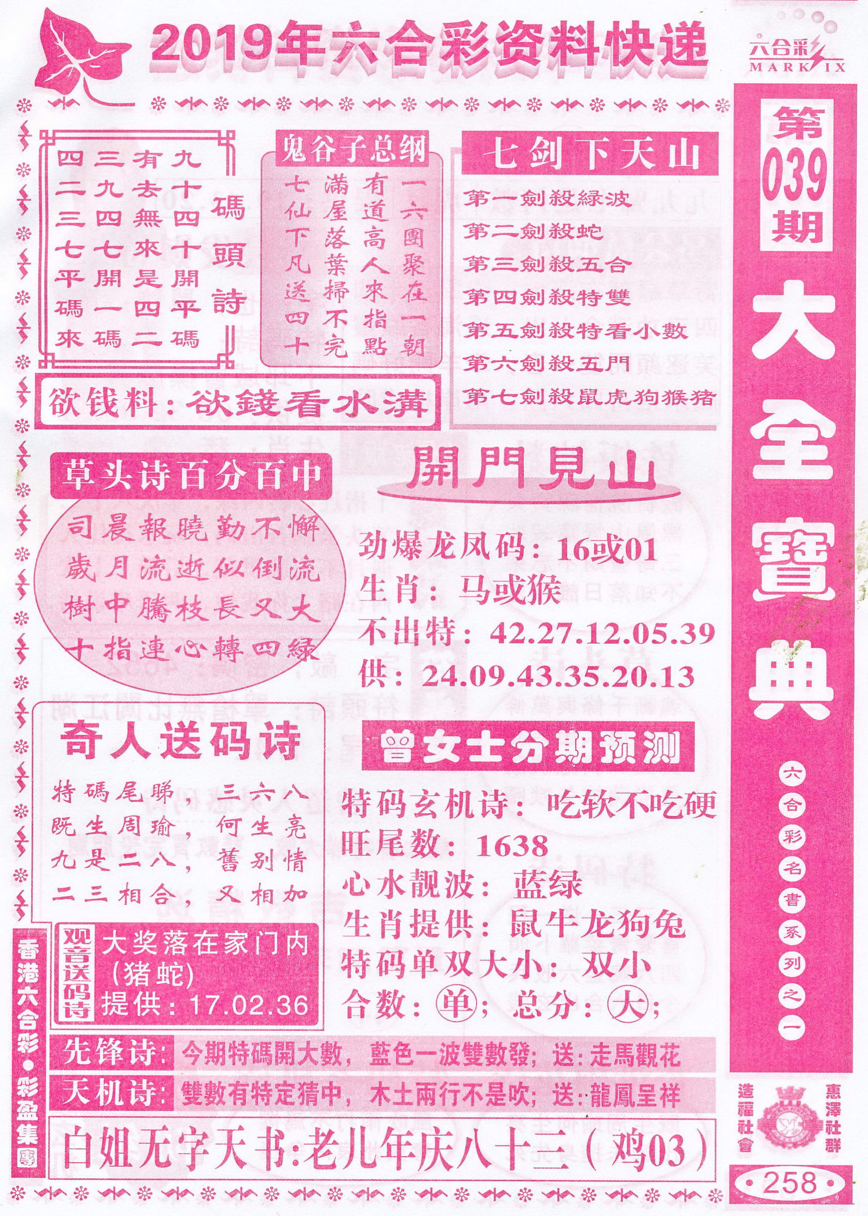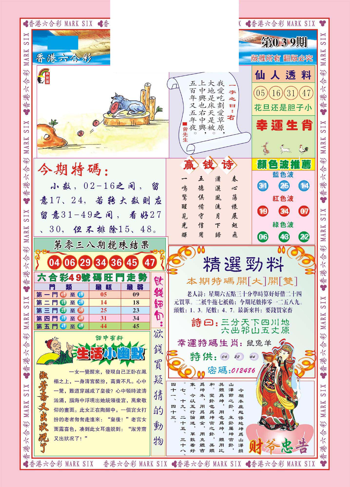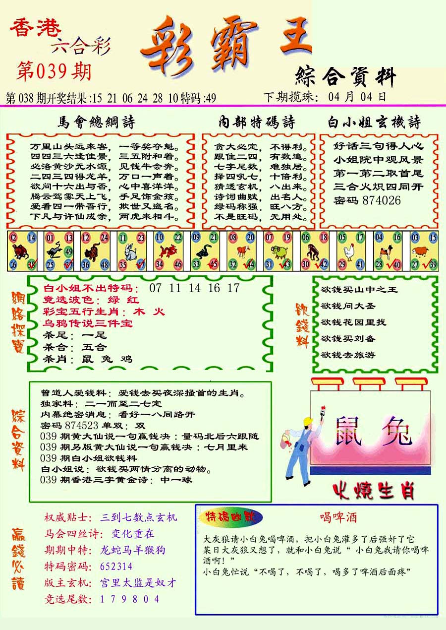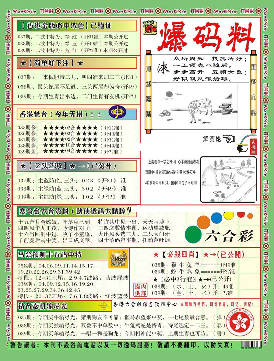 | 063 | 六合禅机A | 064 | 六合禅机B | 069 | 特 新 报A | 070 | 特 新 报B | |||||||||||||||||||||||||||||||||||||||||||||||||||