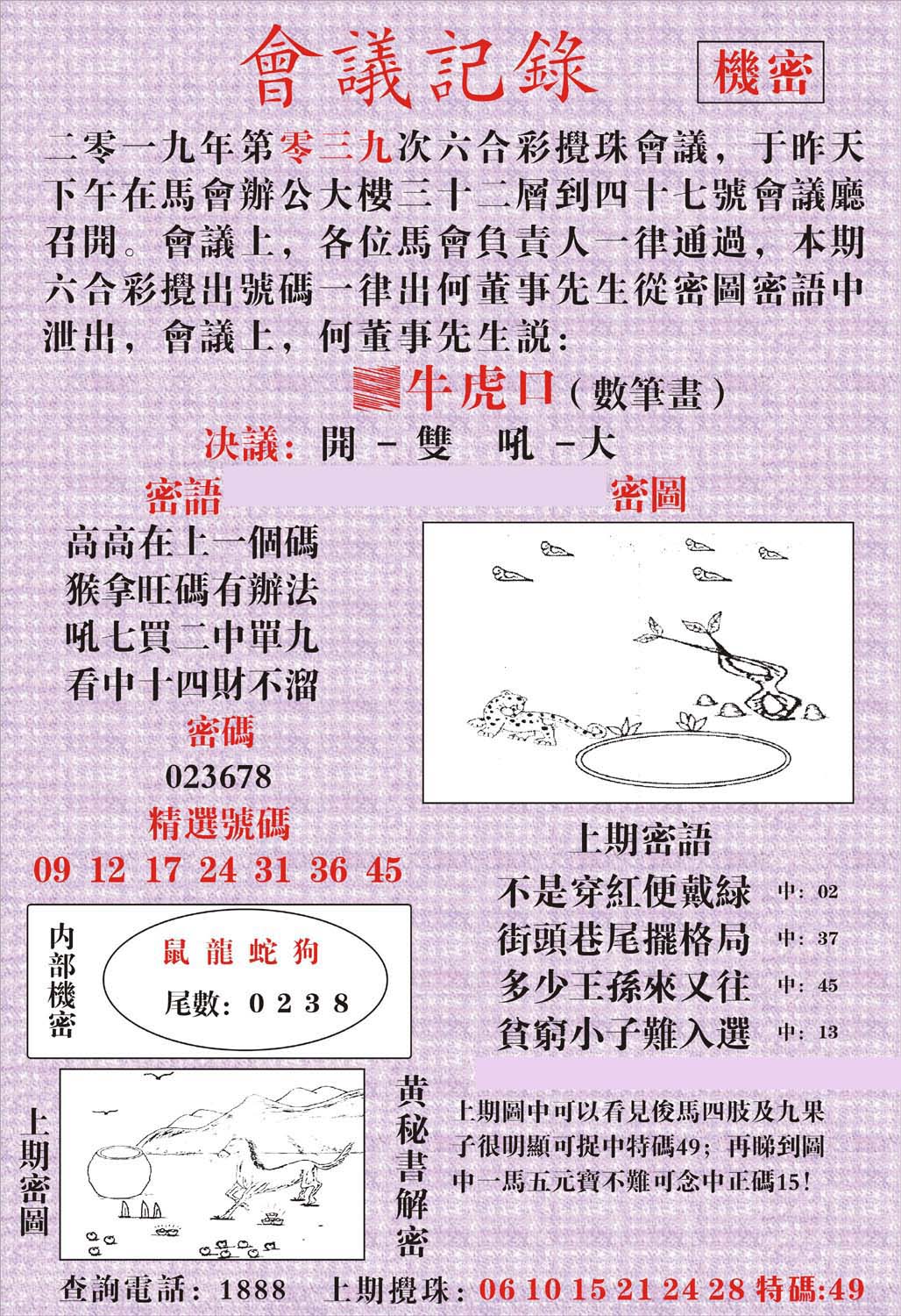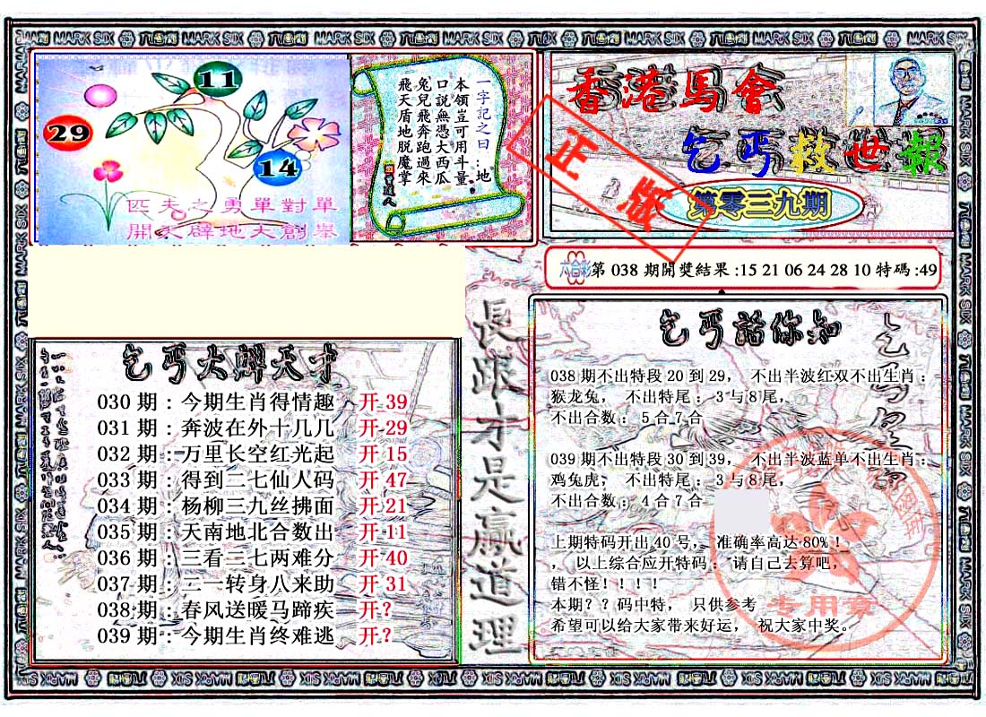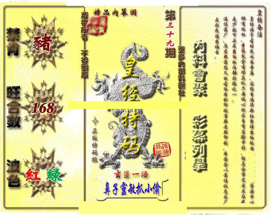 | 1336 | 统一玄机报 | 1337 | 正宗青龙五鬼报A | 1338 | 正宗青龙五鬼报B | 1339 | 美女六肖报 | |||||||||||||||||||||||||||||||||||||||||||||||||||