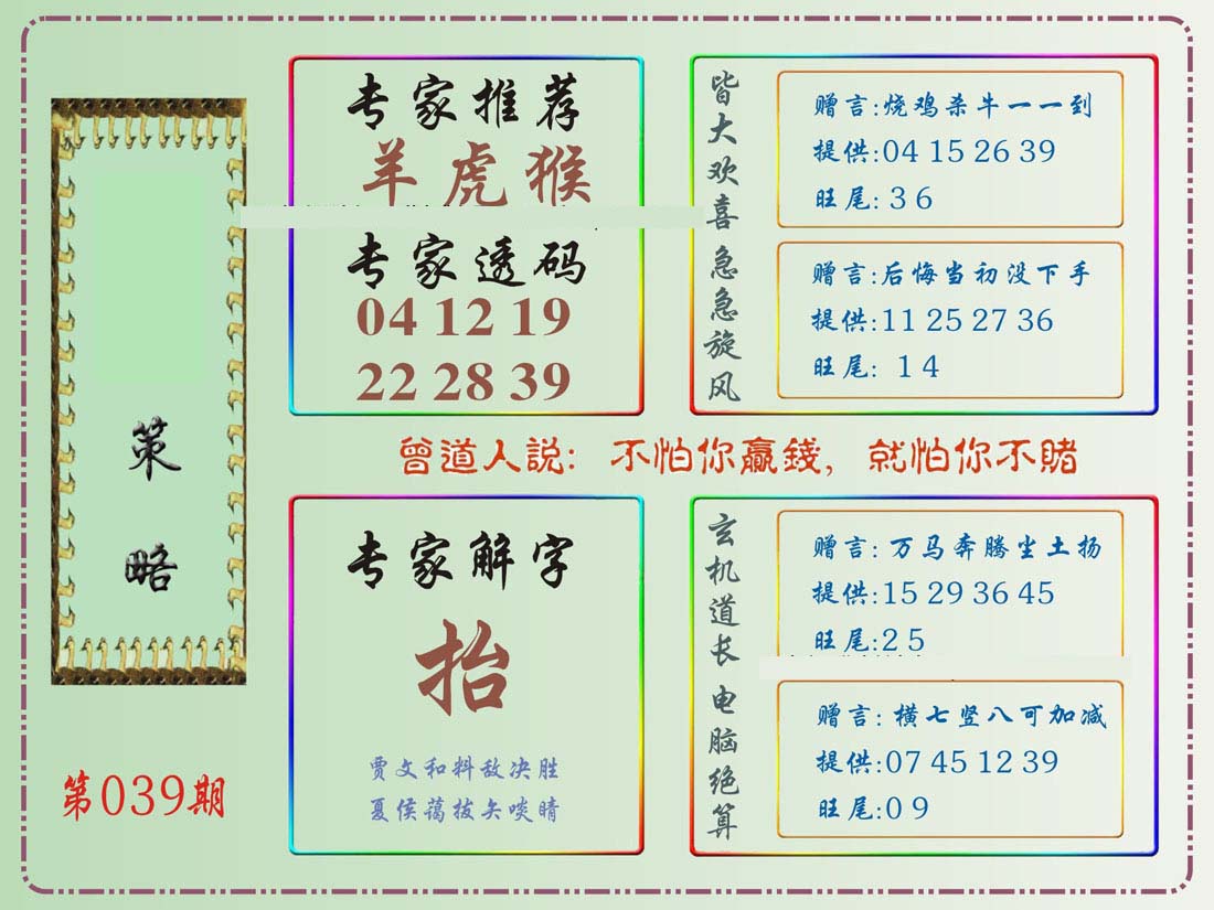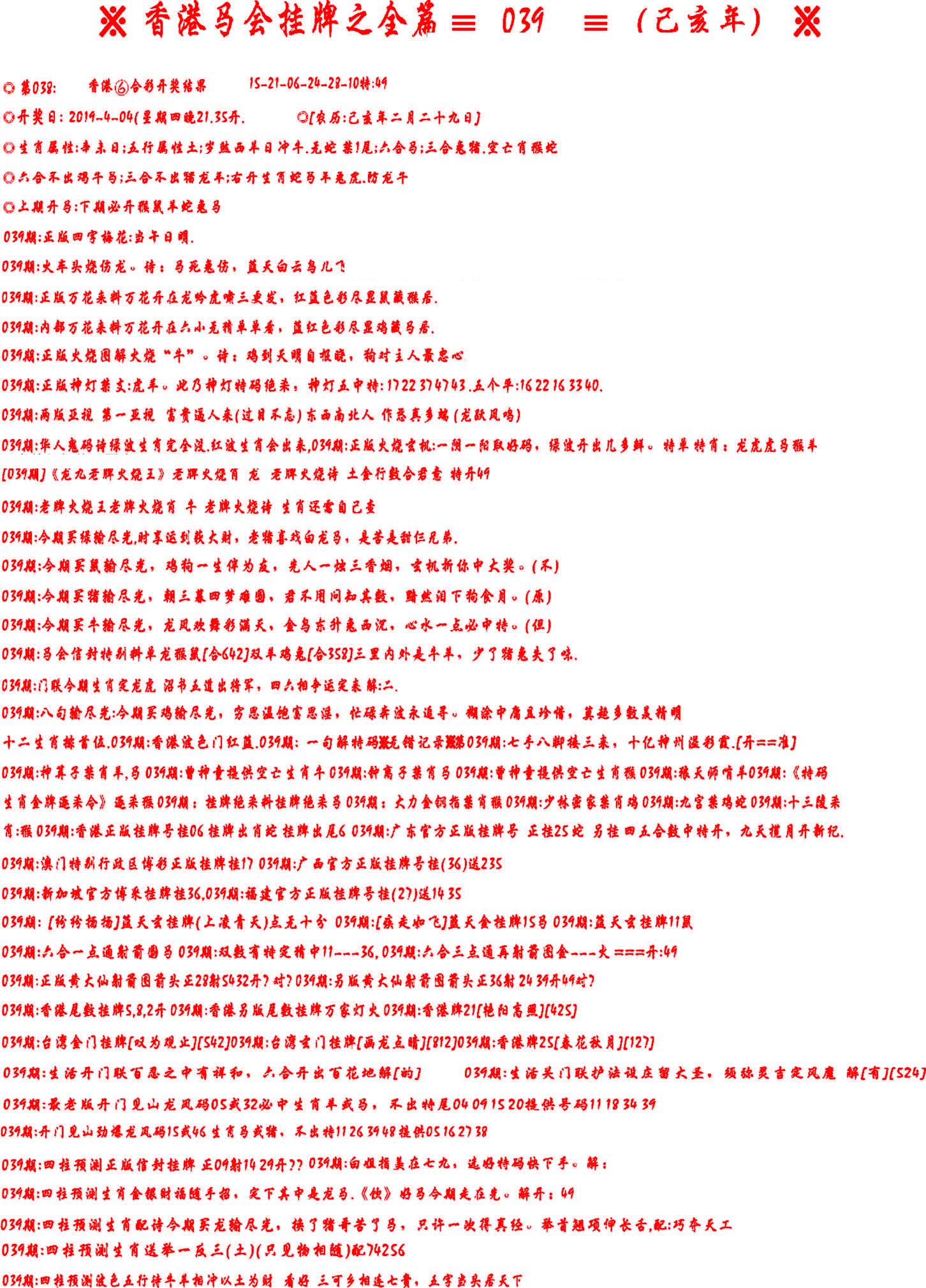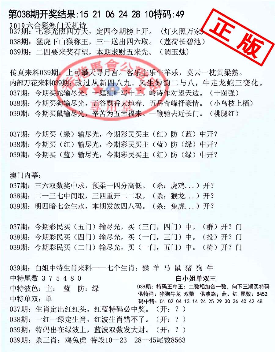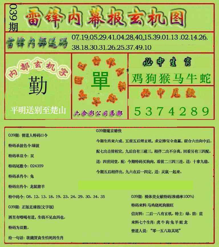 | 039 | 六合内部玄机A | 040 | 六合内部玄机B | 041 | 内部精选神算通A | 042 | 内部精选神算通B | |||||||||||||||||||||||||||||||||||||||||||||||||||
