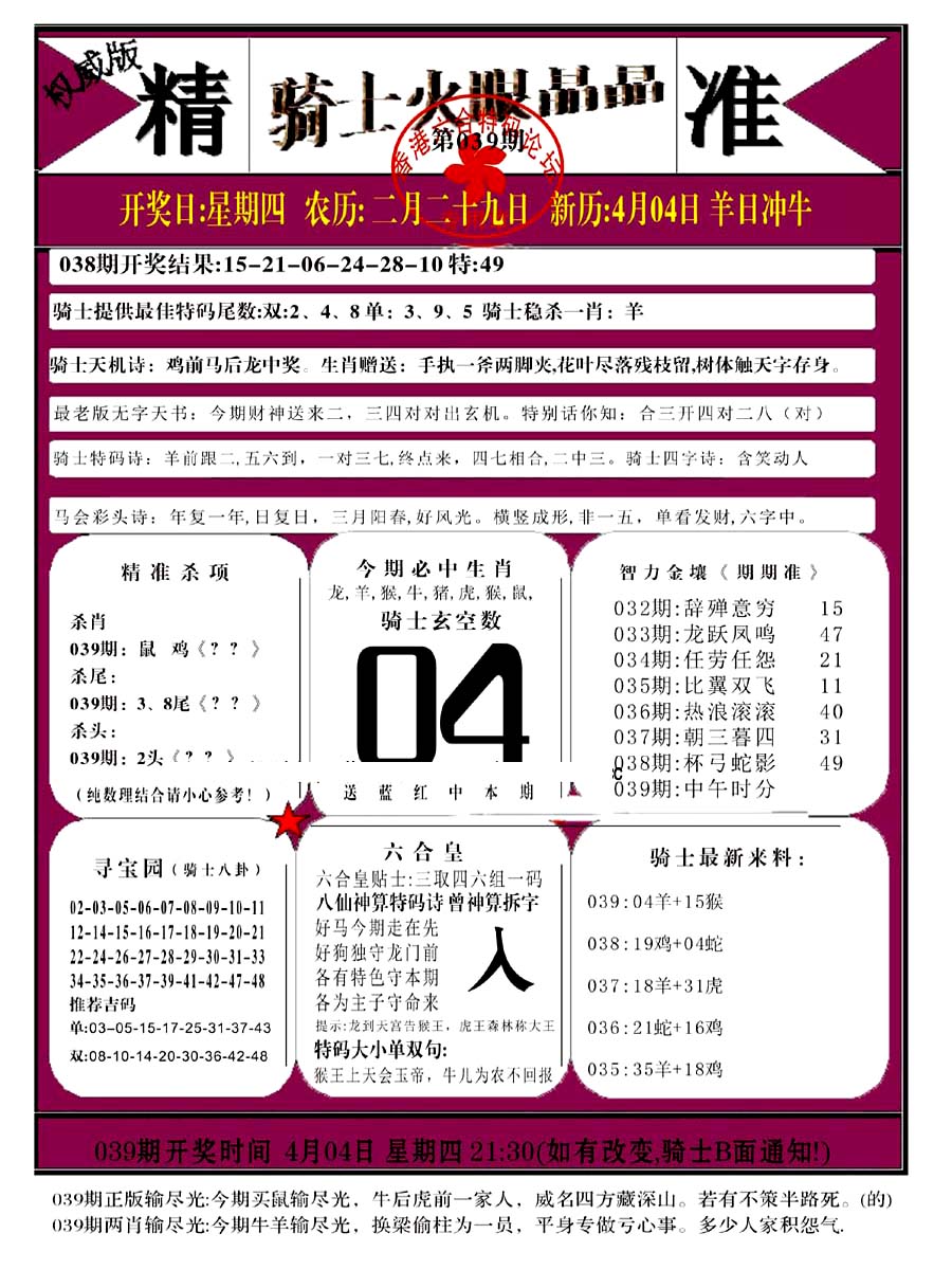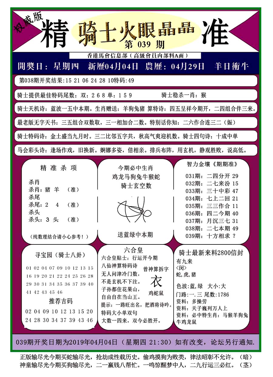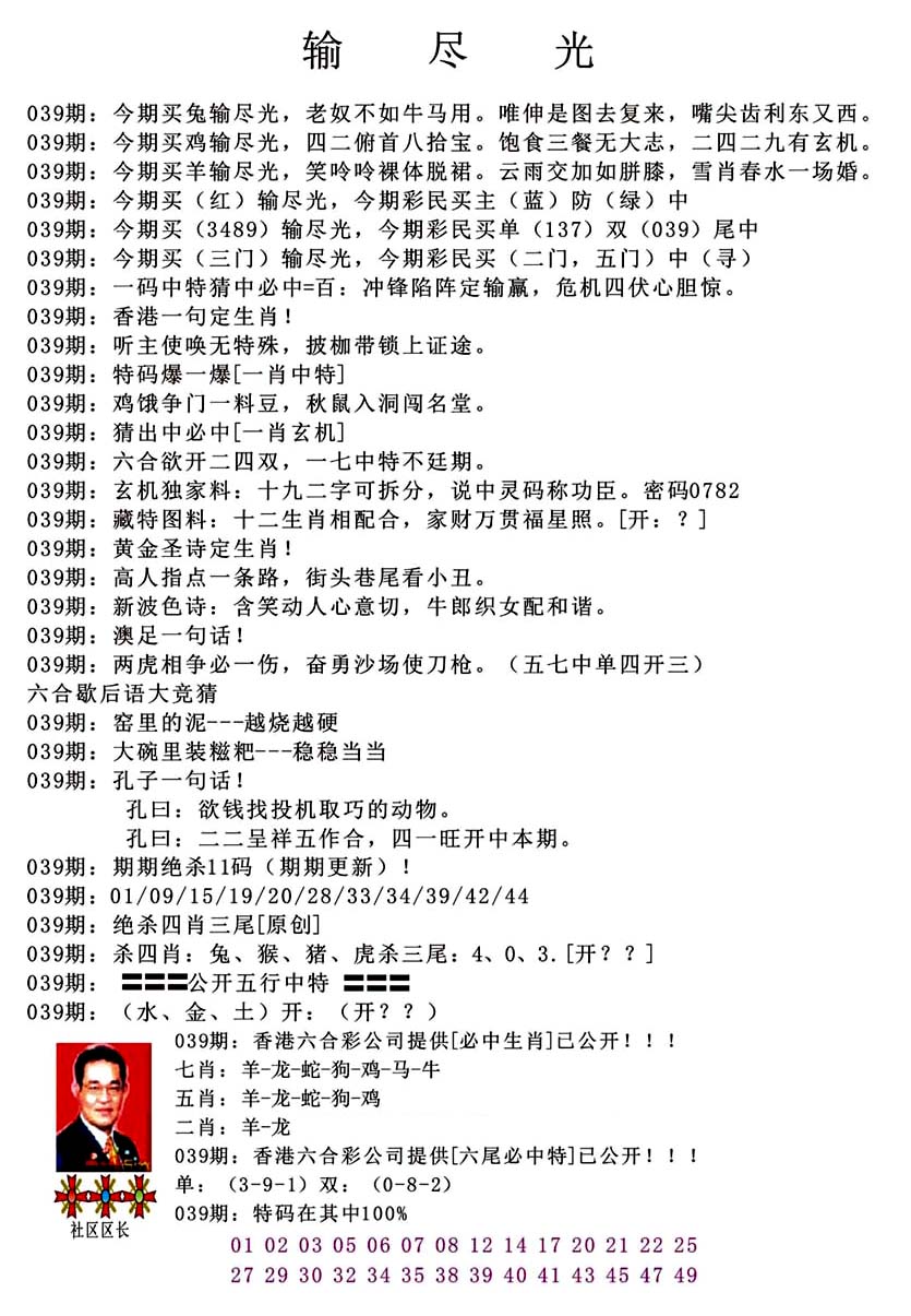 | 039 | 六合内部玄机A | 040 | 六合内部玄机B | 041 | 内部精选神算通A | 042 | 内部精选神算通B | |||||||||||||||||||||||||||||||||||||||||||||||||||
