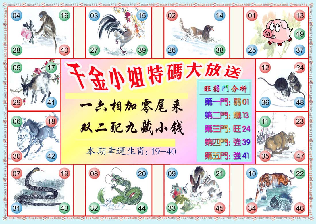 | 1601 | 马会双烧图 | 1602 | 马会禁尾图 | 1603 | 马会必中生肖 | 1604 | 内部禁肖禁尾 | |||||||||||||||||||||||||||||||||||||||||||||||||||