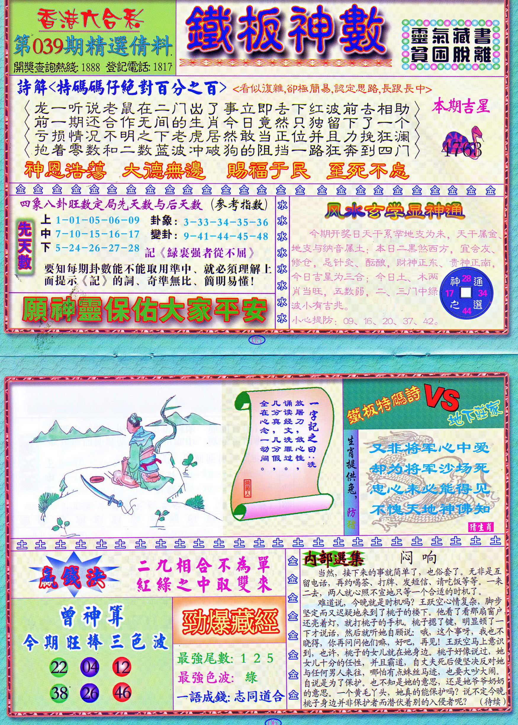 | 1765 | 黄大仙救世报 | 1766 | 香港马会专刊A | 1767 | 香港马会专刊B | 1768 | 赌王心经 |