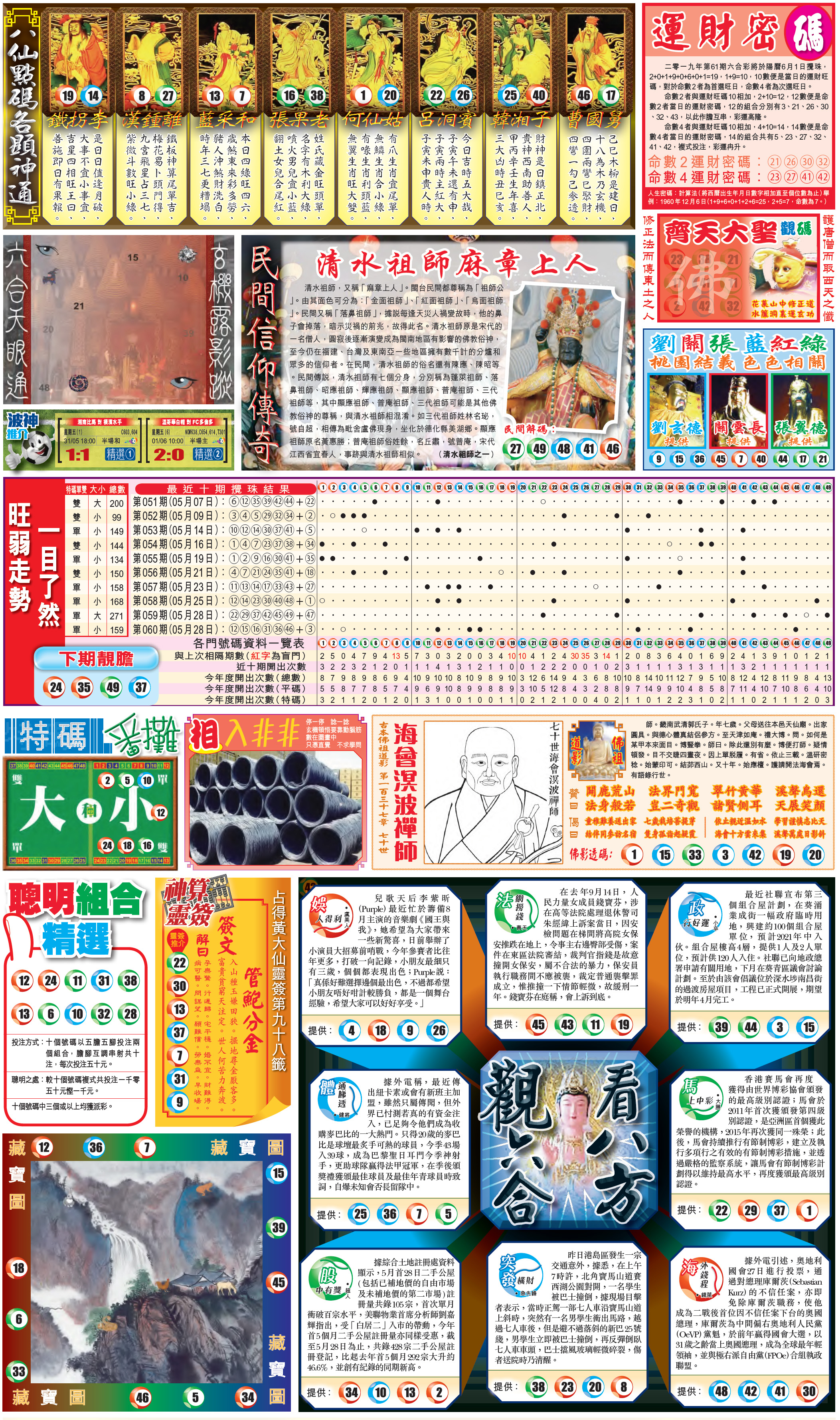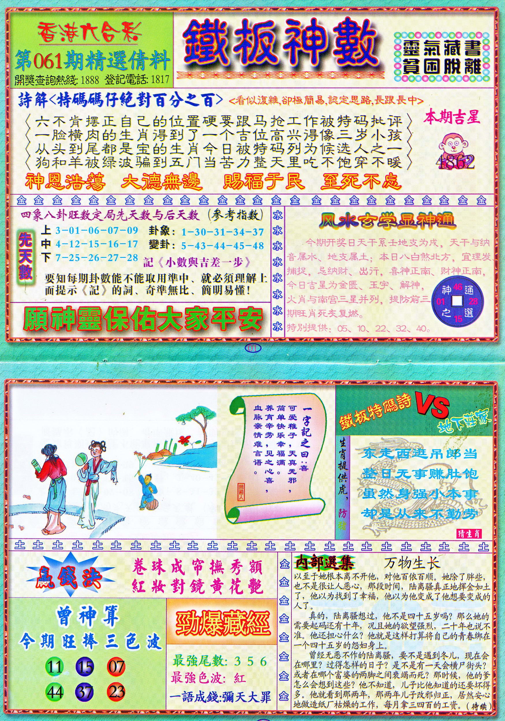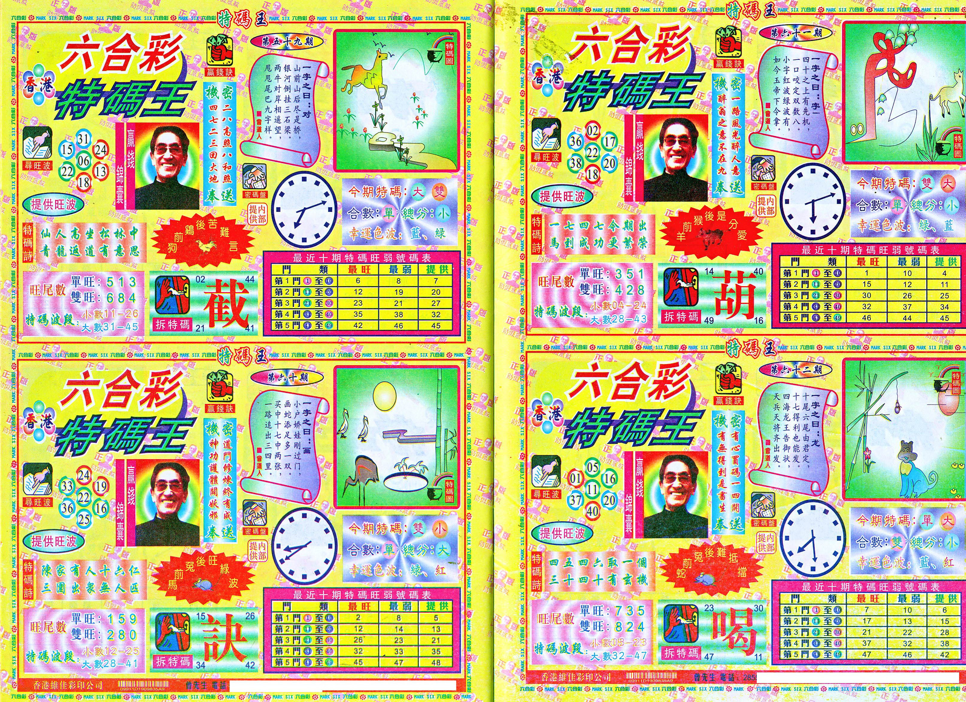 | 1765 | 黄大仙救世报 | 1766 | 香港马会专刊A | 1767 | 香港马会专刊B | 1768 | 赌王心经 |