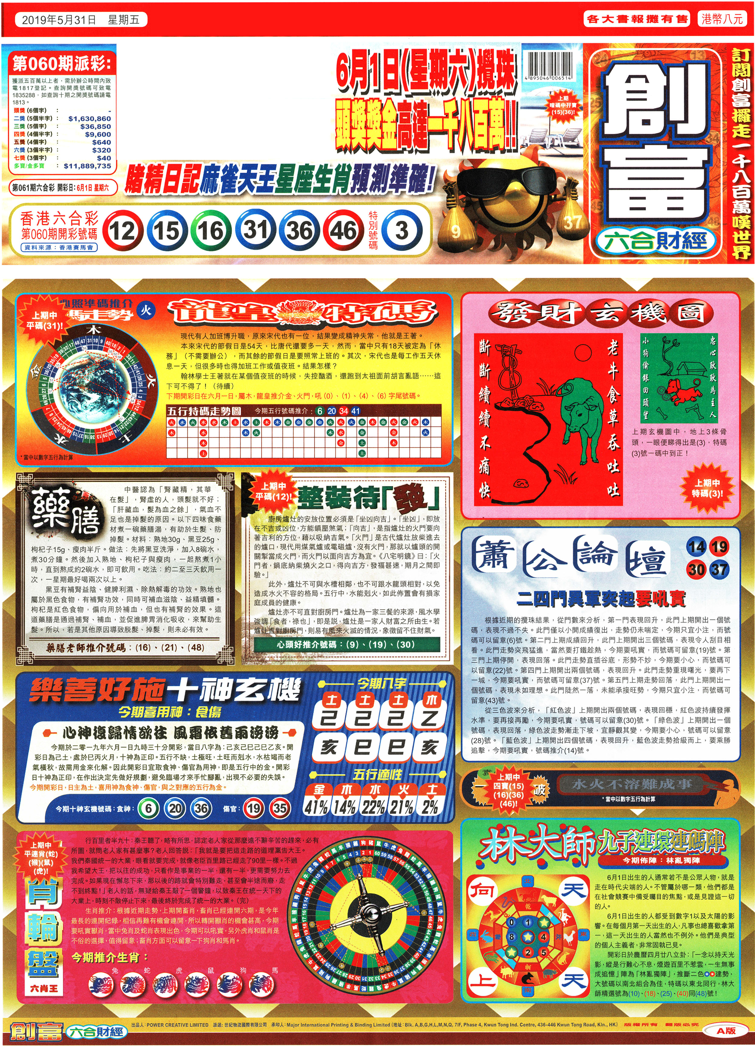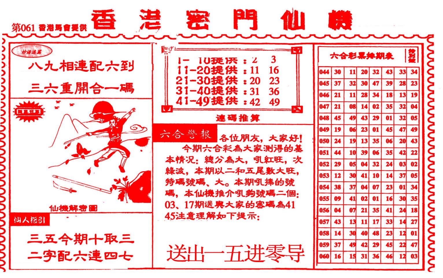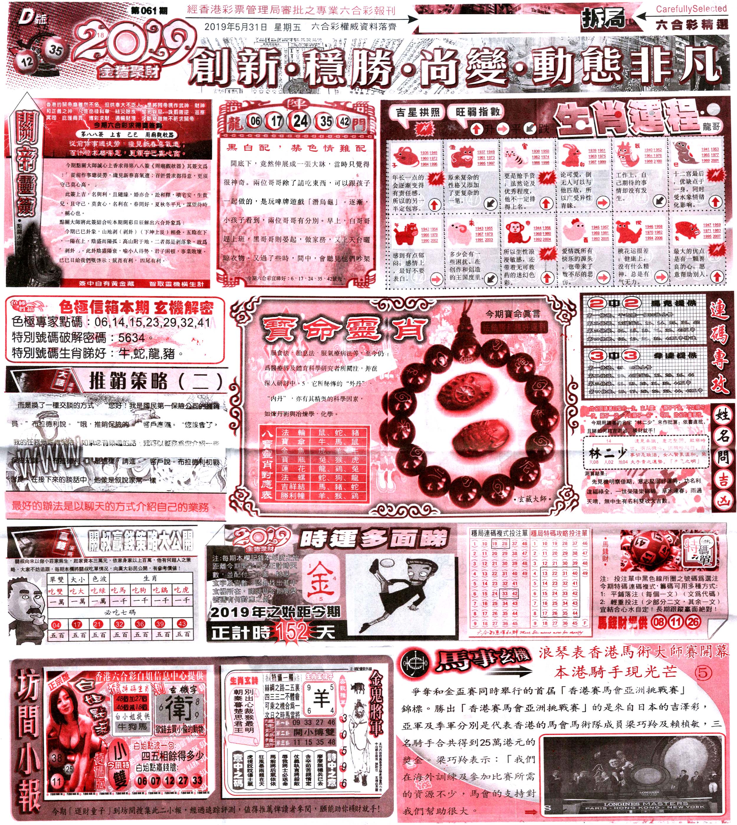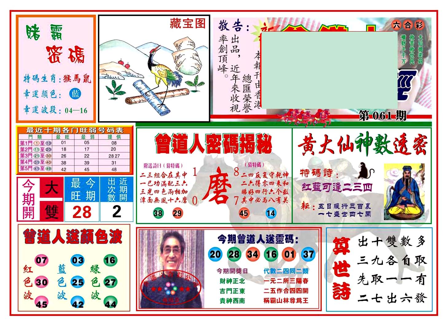 | 1765 | 黄大仙救世报 | 1766 | 香港马会专刊A | 1767 | 香港马会专刊B | 1768 | 赌王心经 |