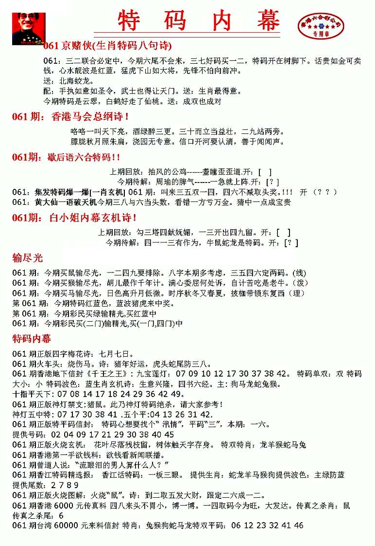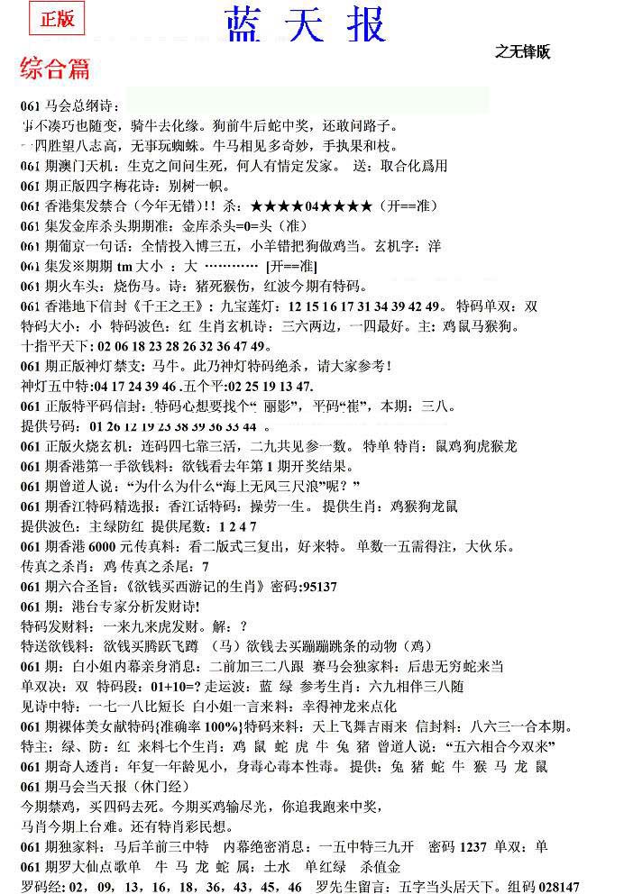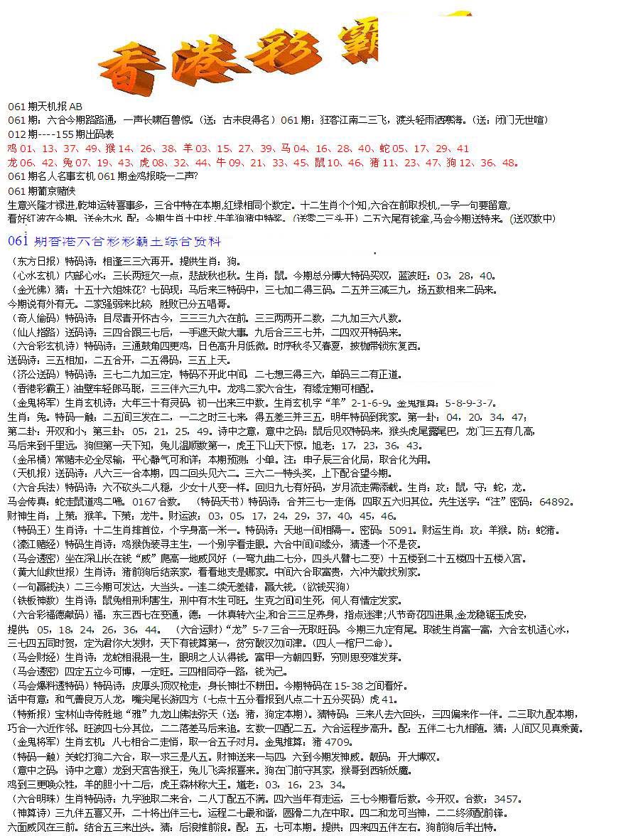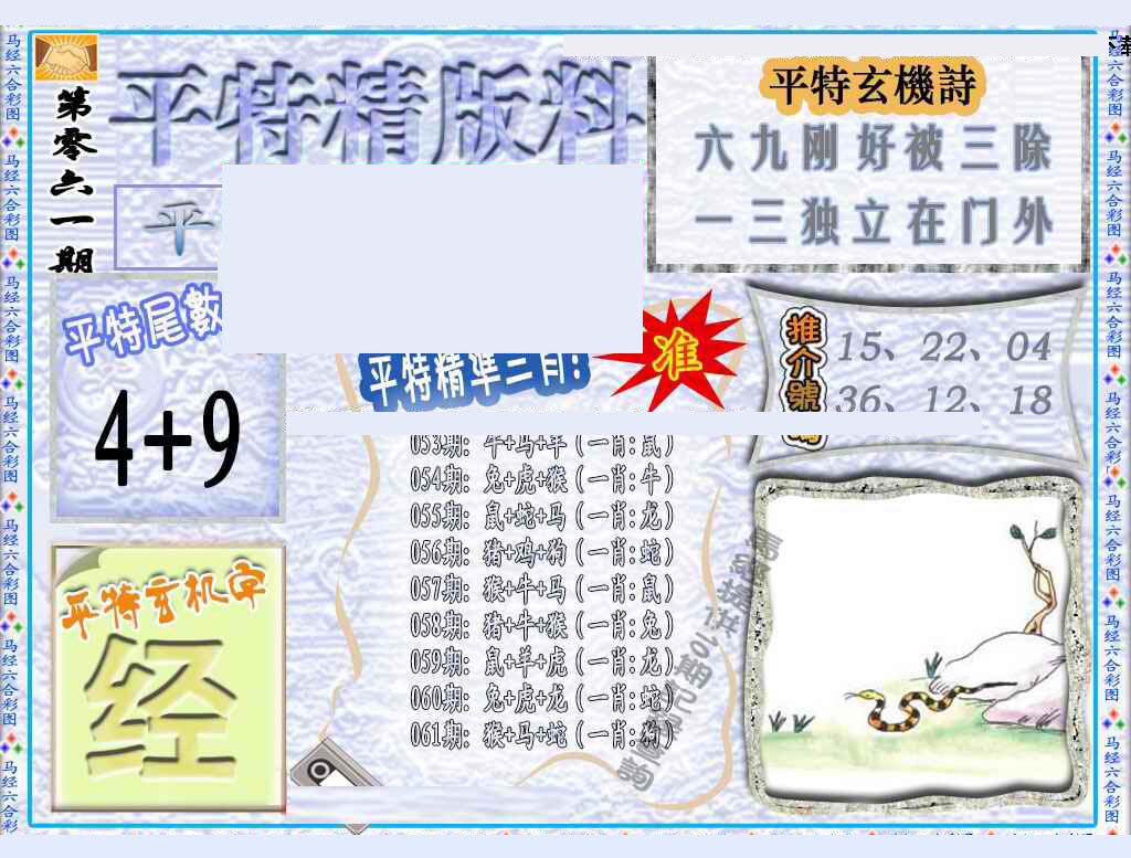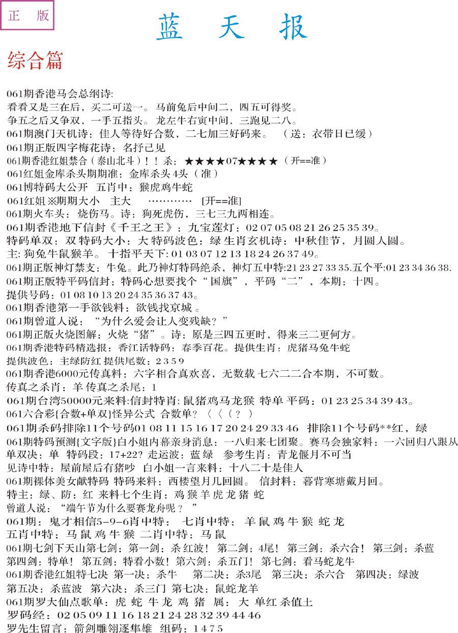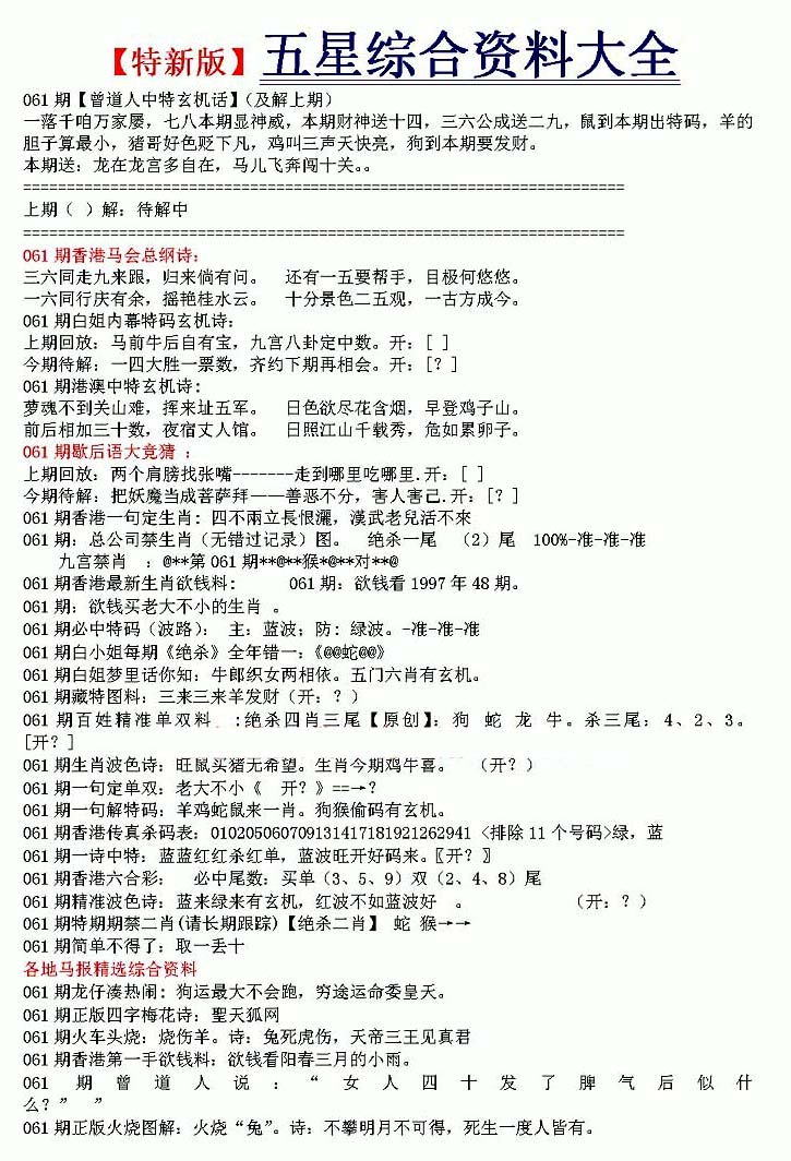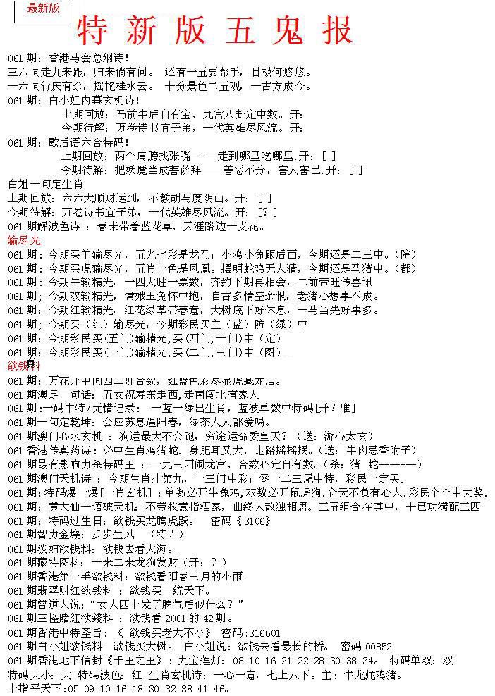 | 063 | 六合禅机A | 064 | 六合禅机B | 069 | 特 新 报A | 070 | 特 新 报B | |||||||||||||||||||||||||||||||||||||||||||||||||||