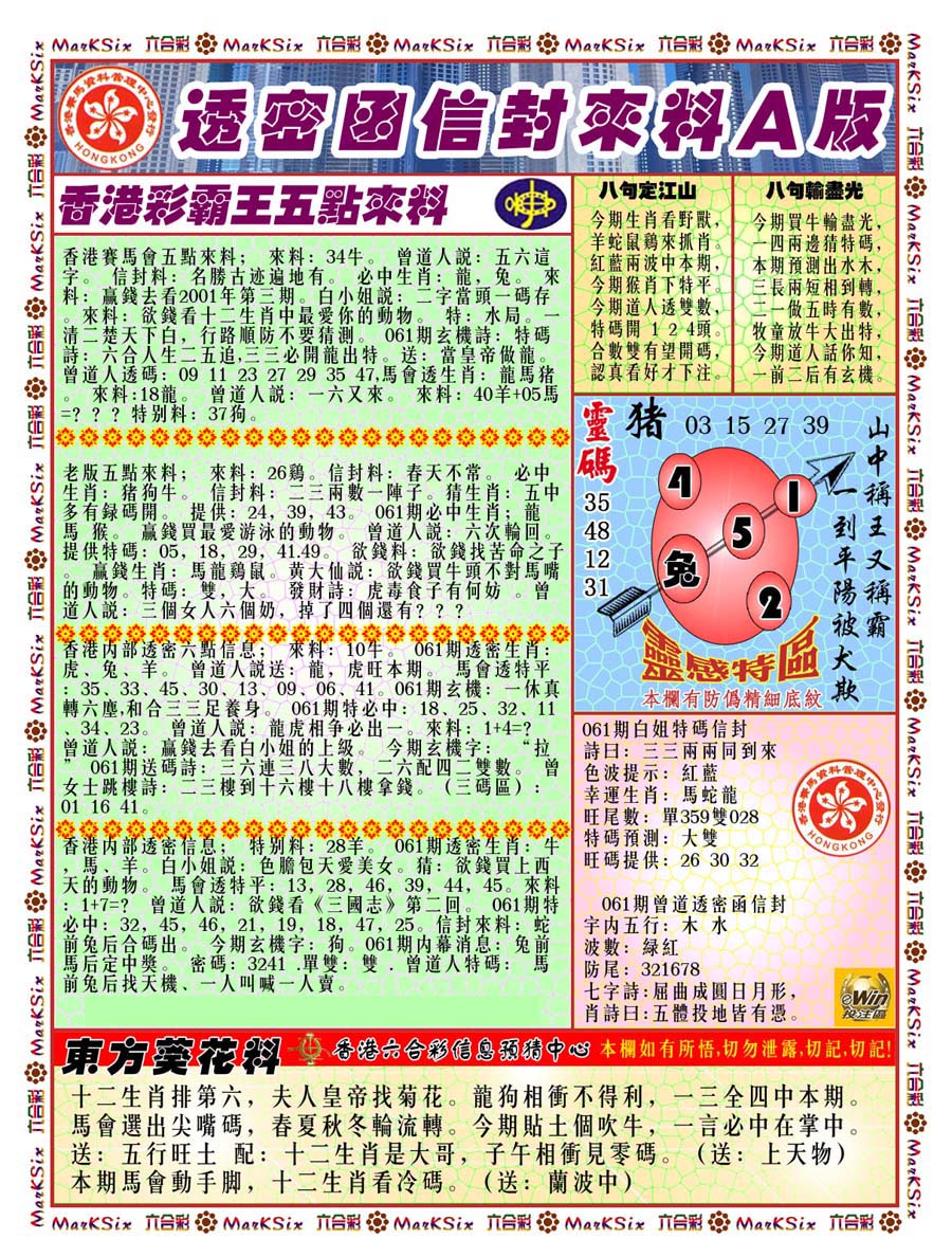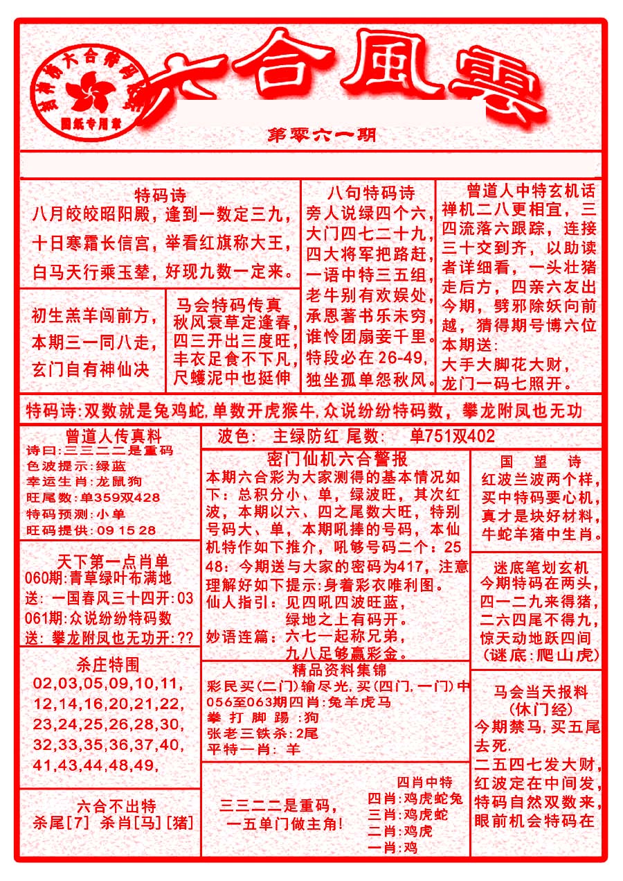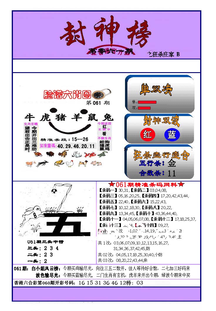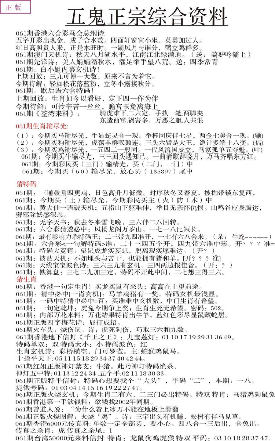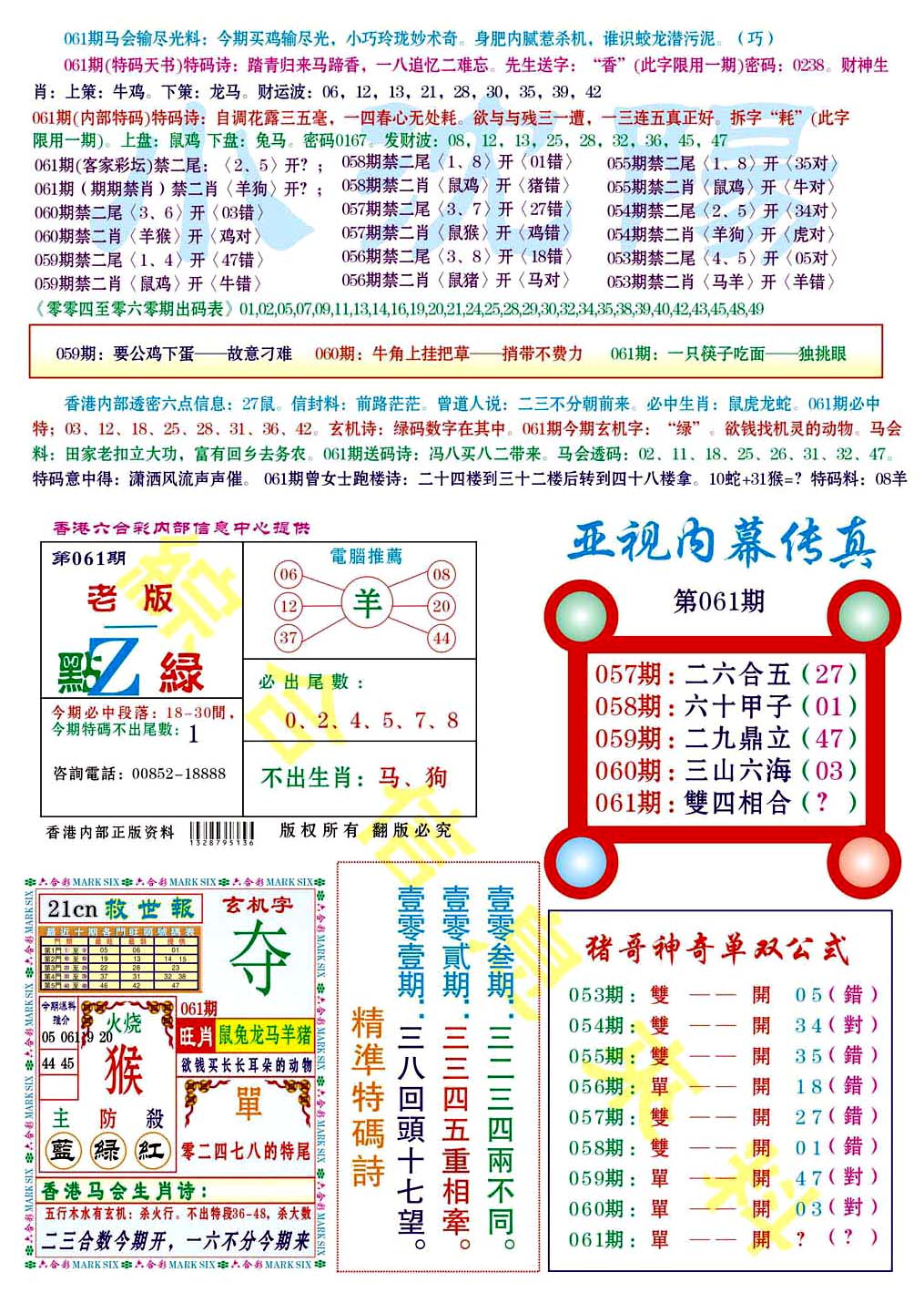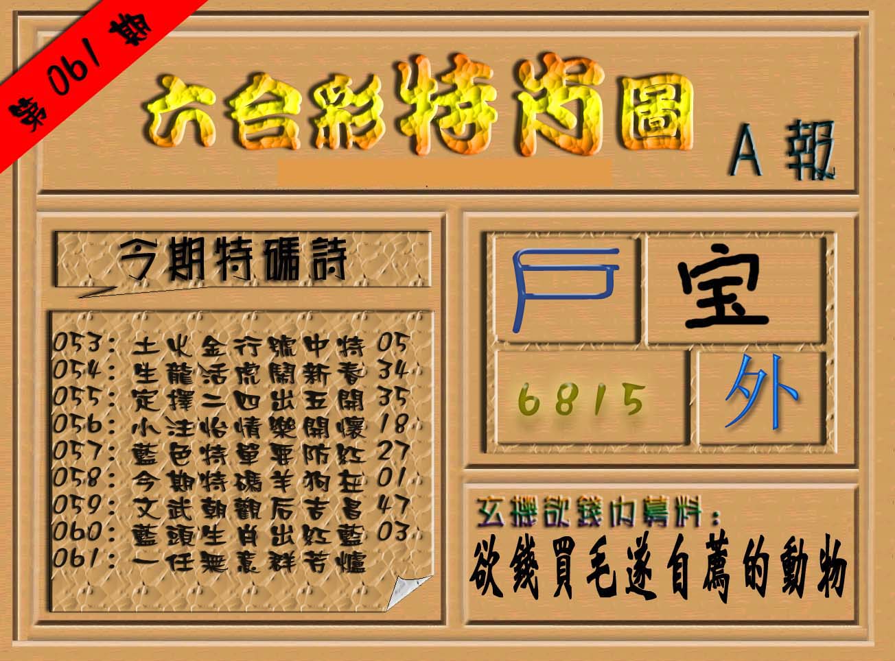 | 063 | 六合禅机A | 064 | 六合禅机B | 069 | 特 新 报A | 070 | 特 新 报B | |||||||||||||||||||||||||||||||||||||||||||||||||||