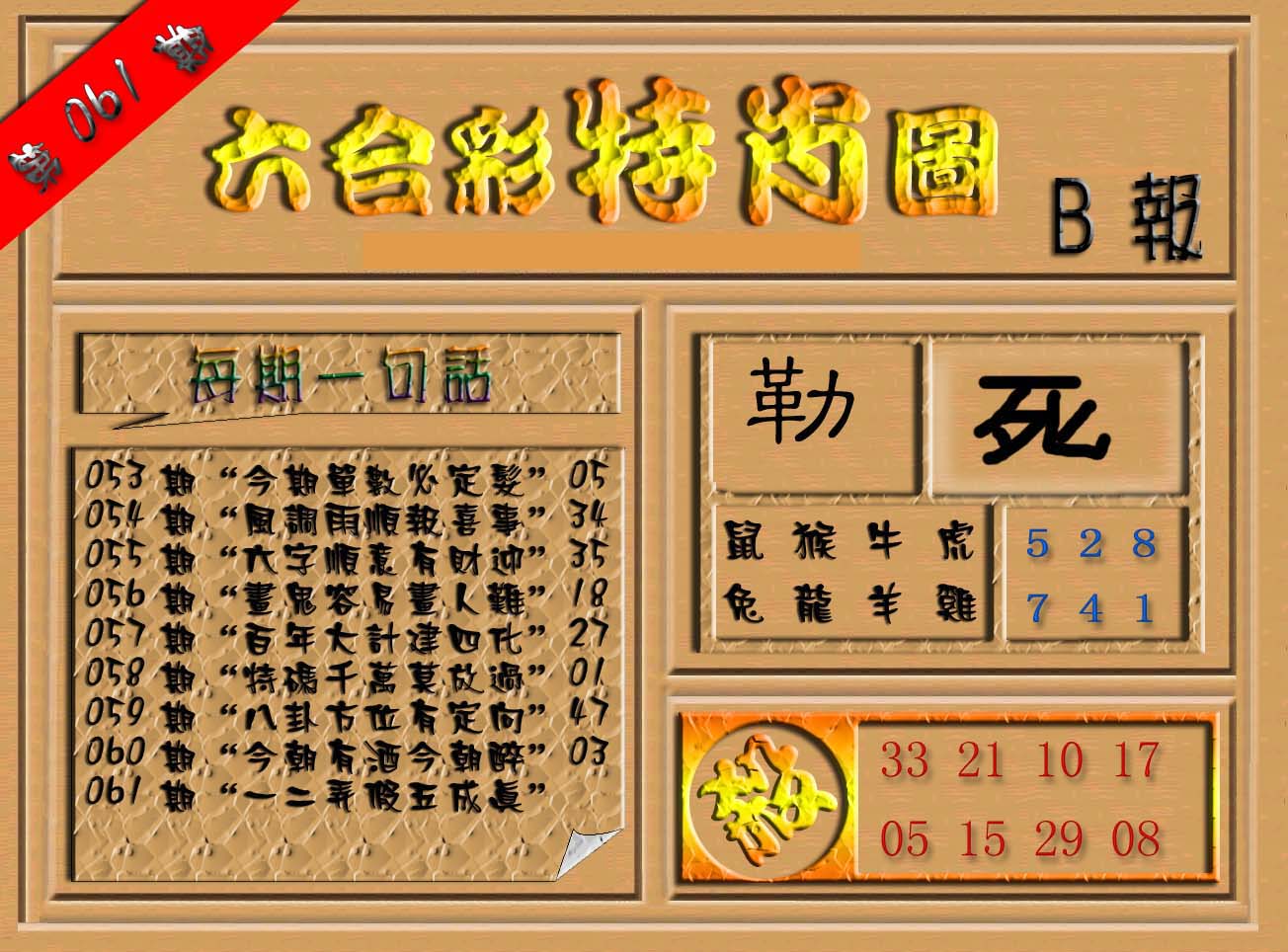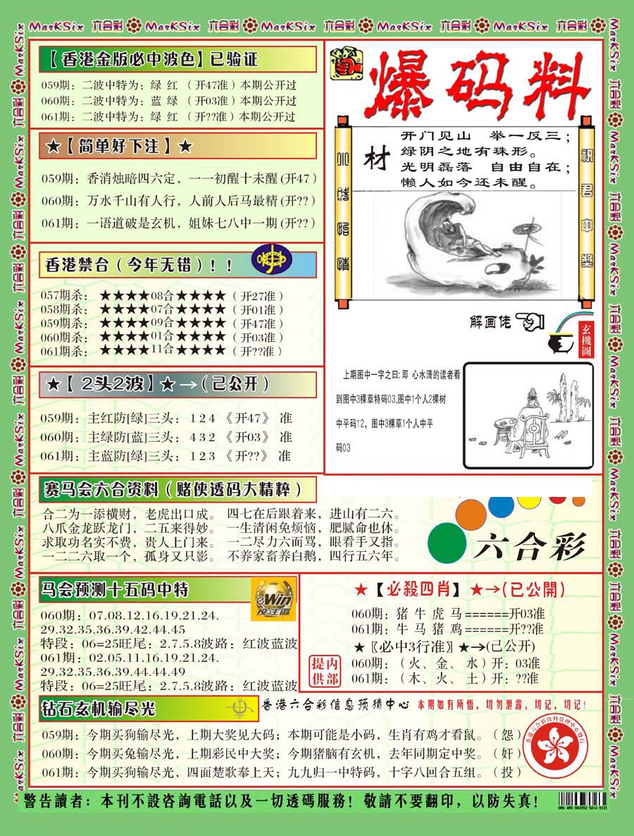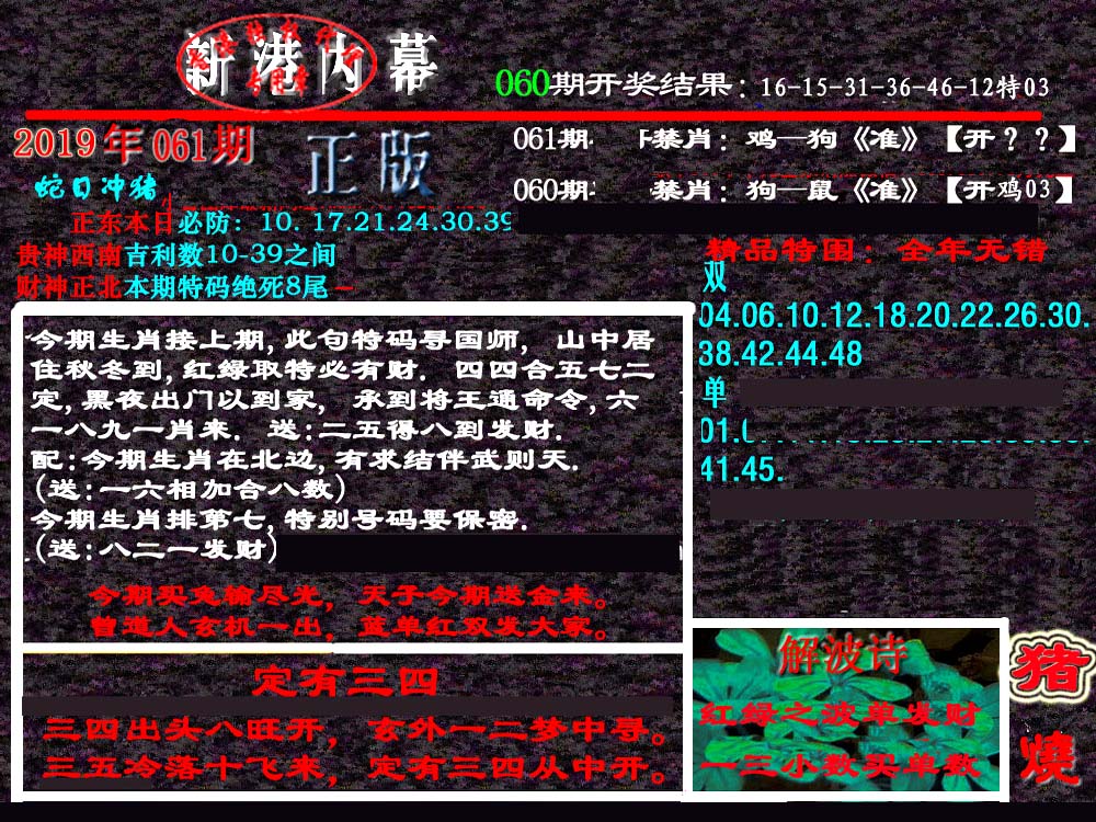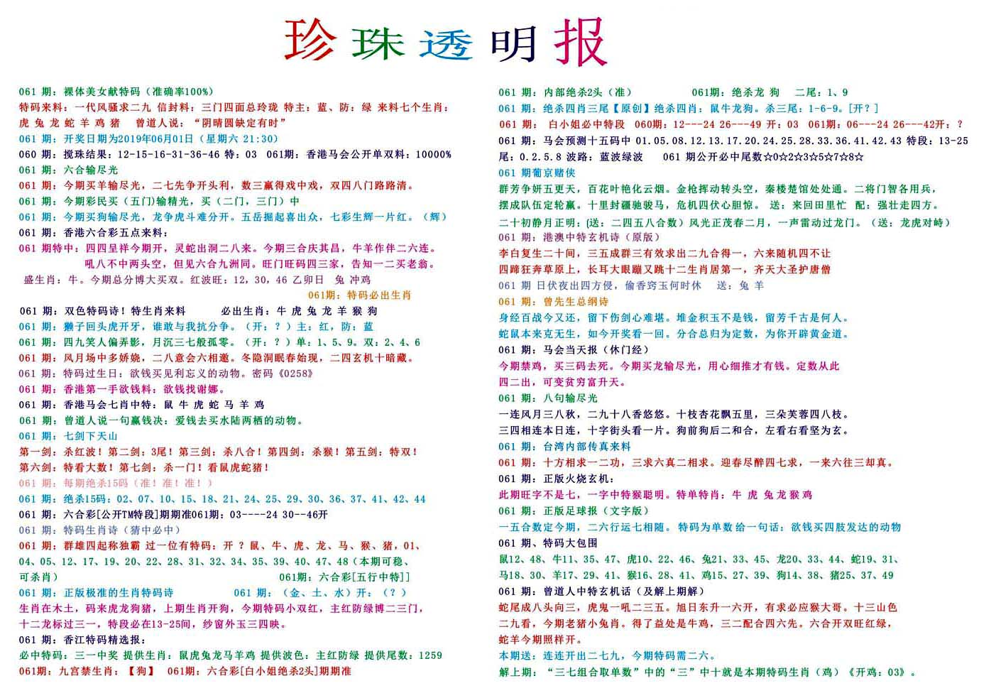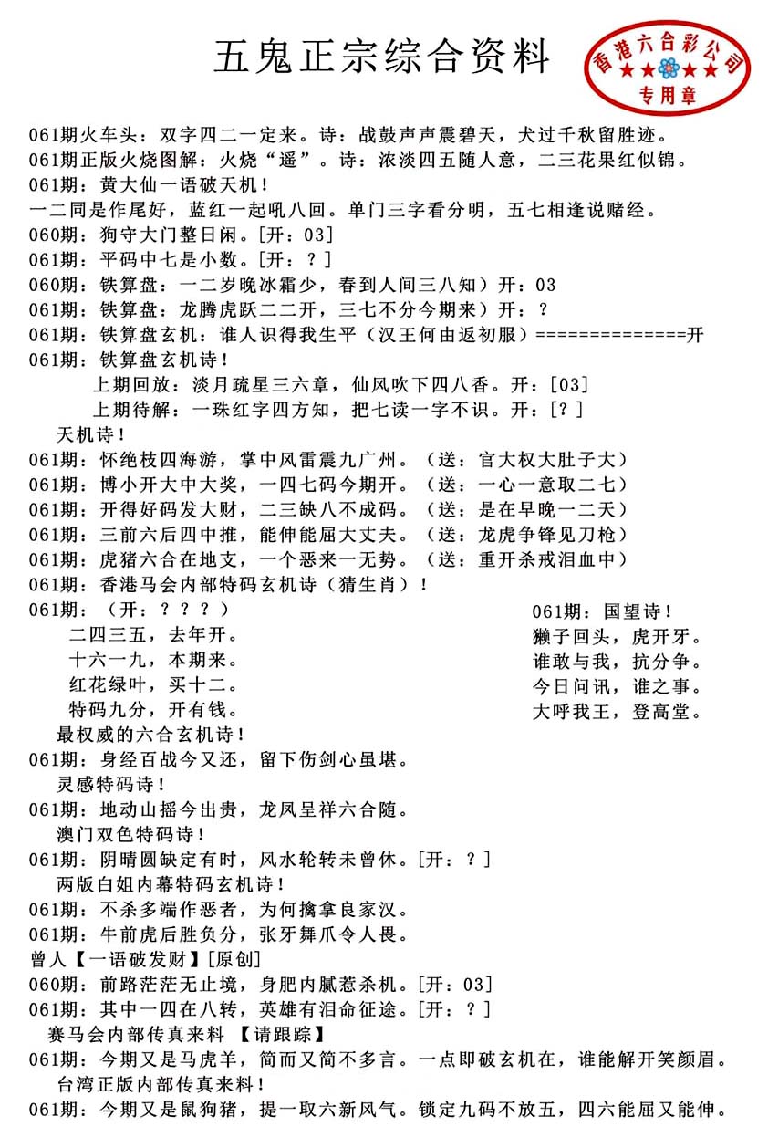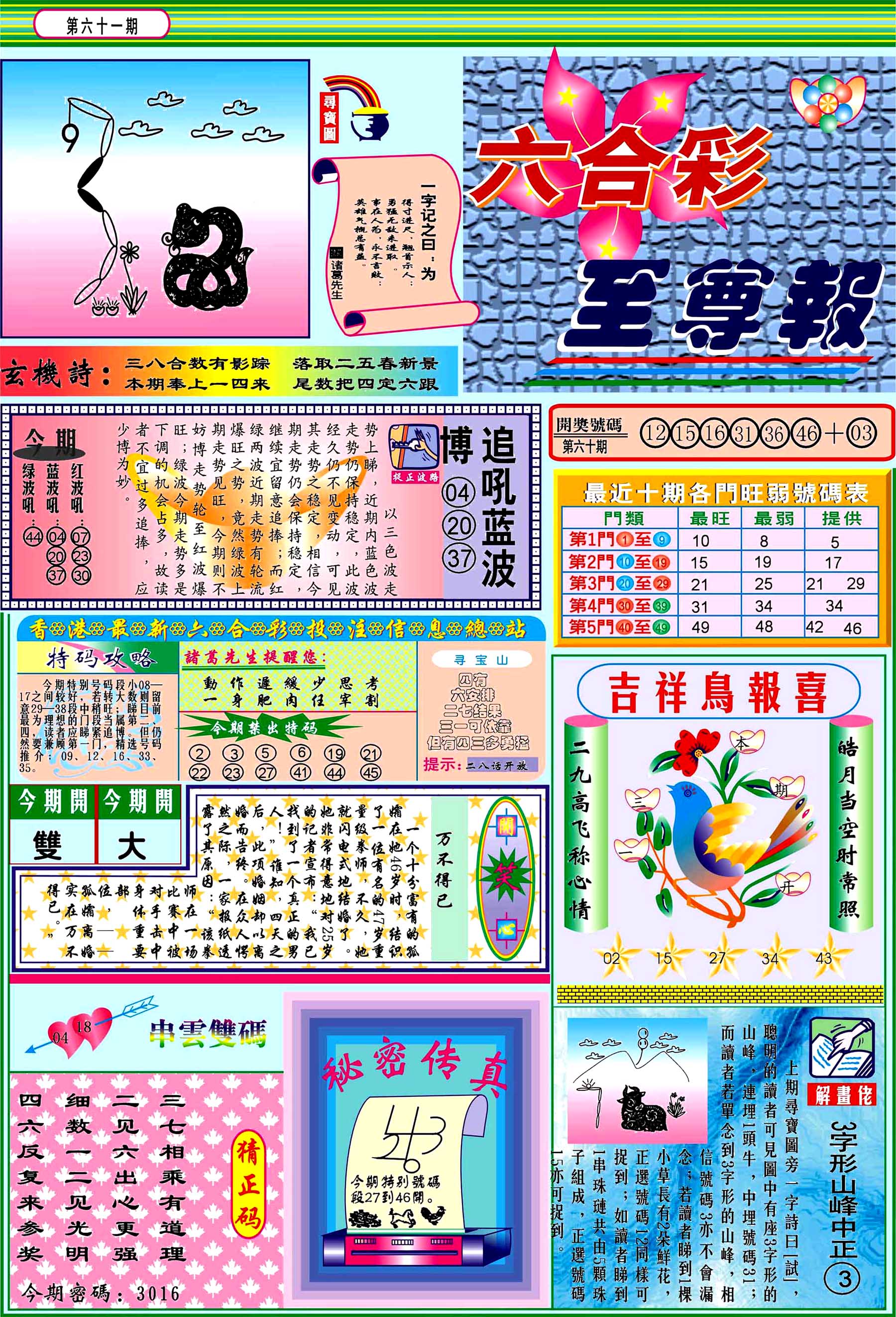 | 063 | 六合禅机A | 064 | 六合禅机B | 069 | 特 新 报A | 070 | 特 新 报B | |||||||||||||||||||||||||||||||||||||||||||||||||||