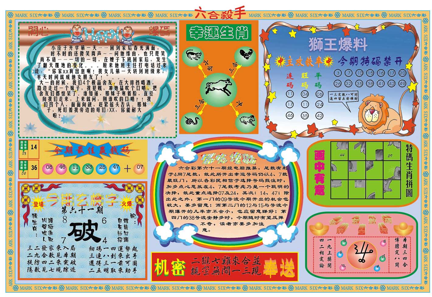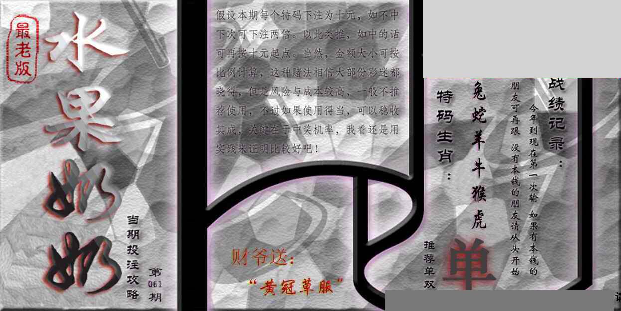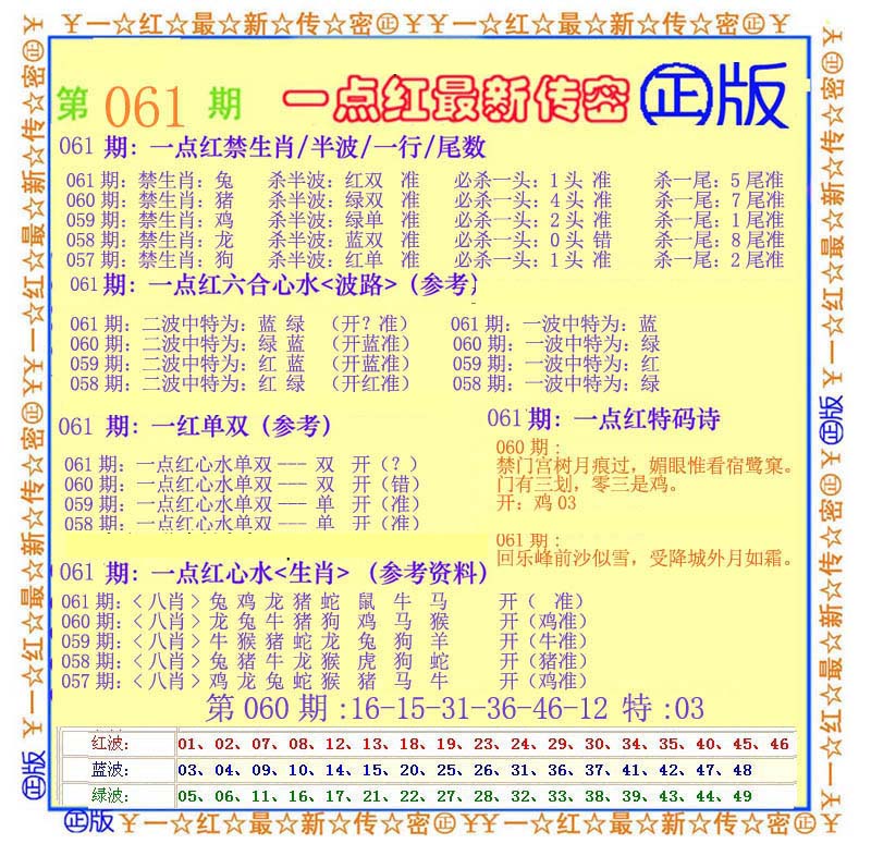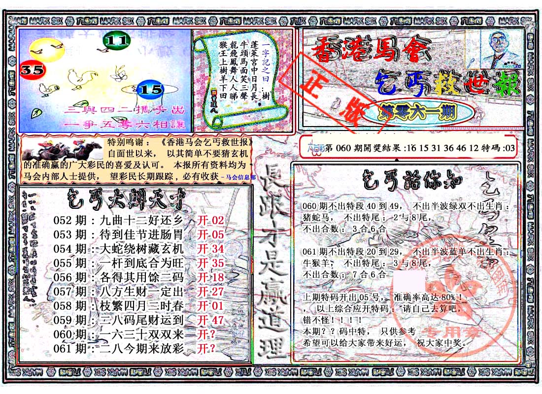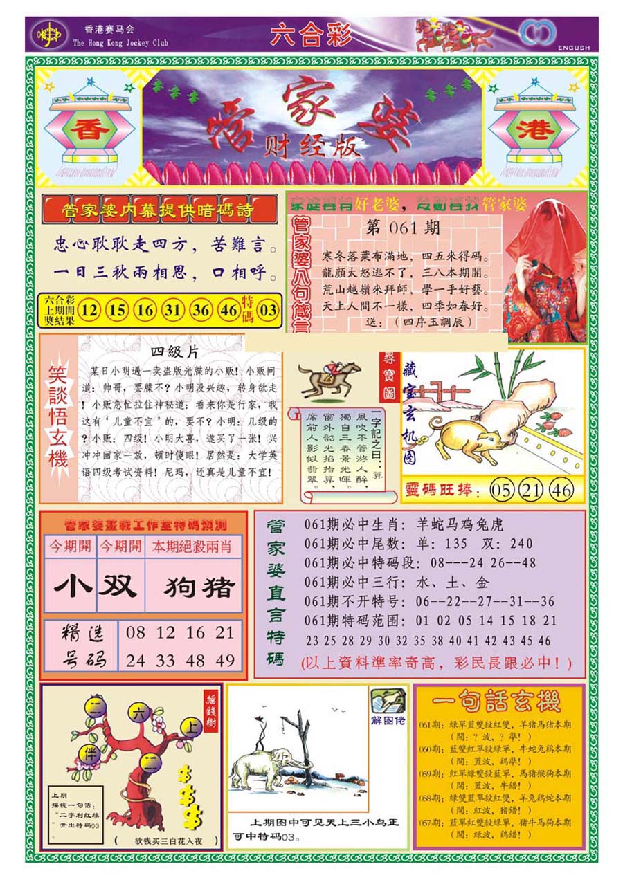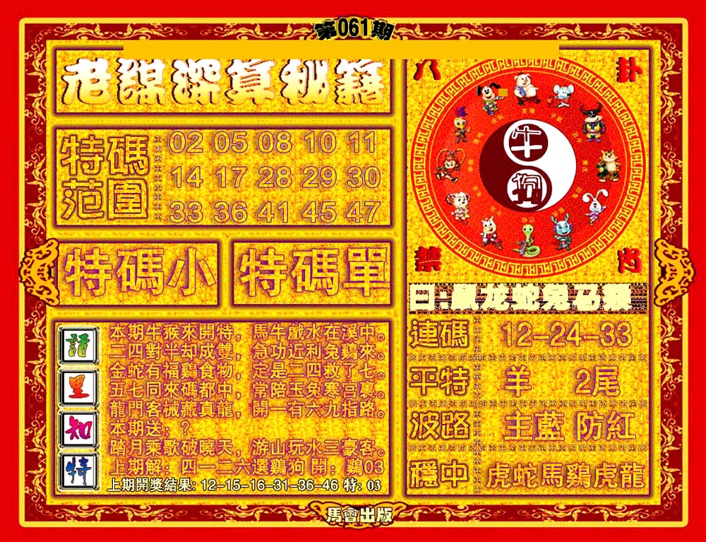 | 063 | 六合禅机A | 064 | 六合禅机B | 069 | 特 新 报A | 070 | 特 新 报B | |||||||||||||||||||||||||||||||||||||||||||||||||||