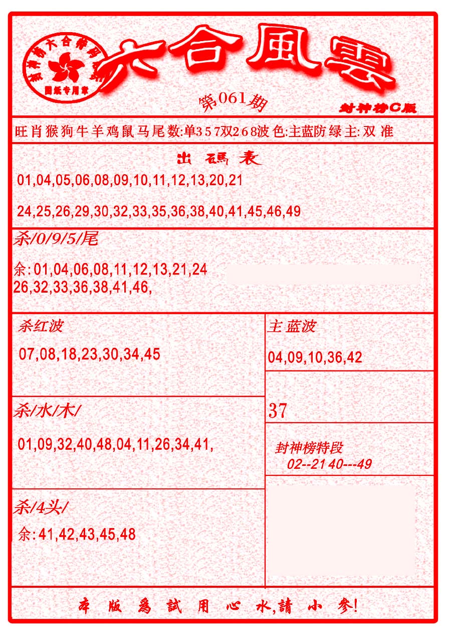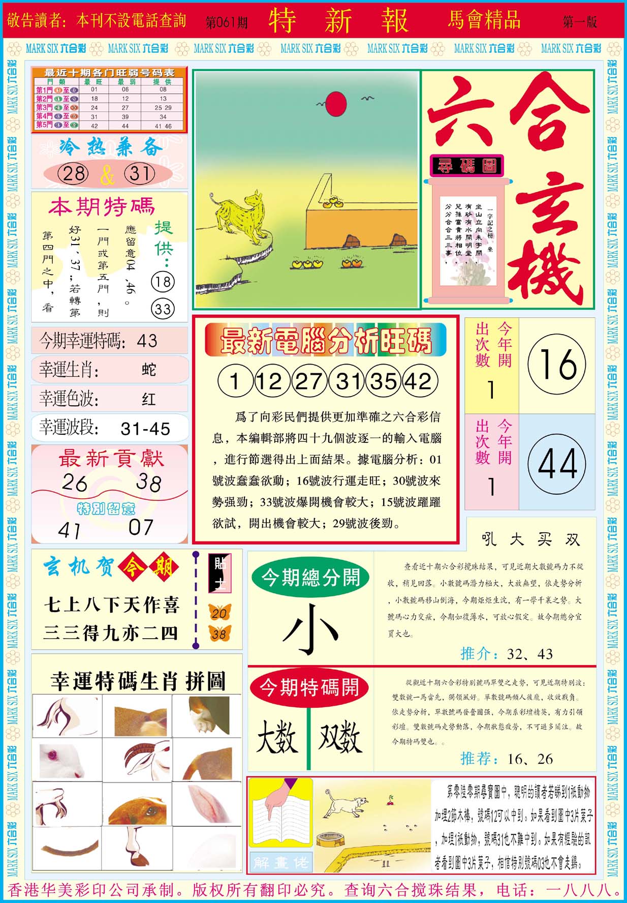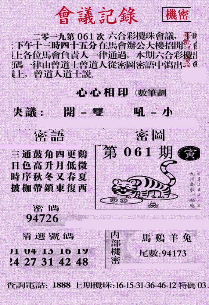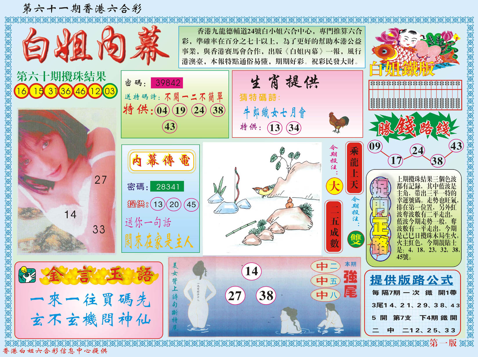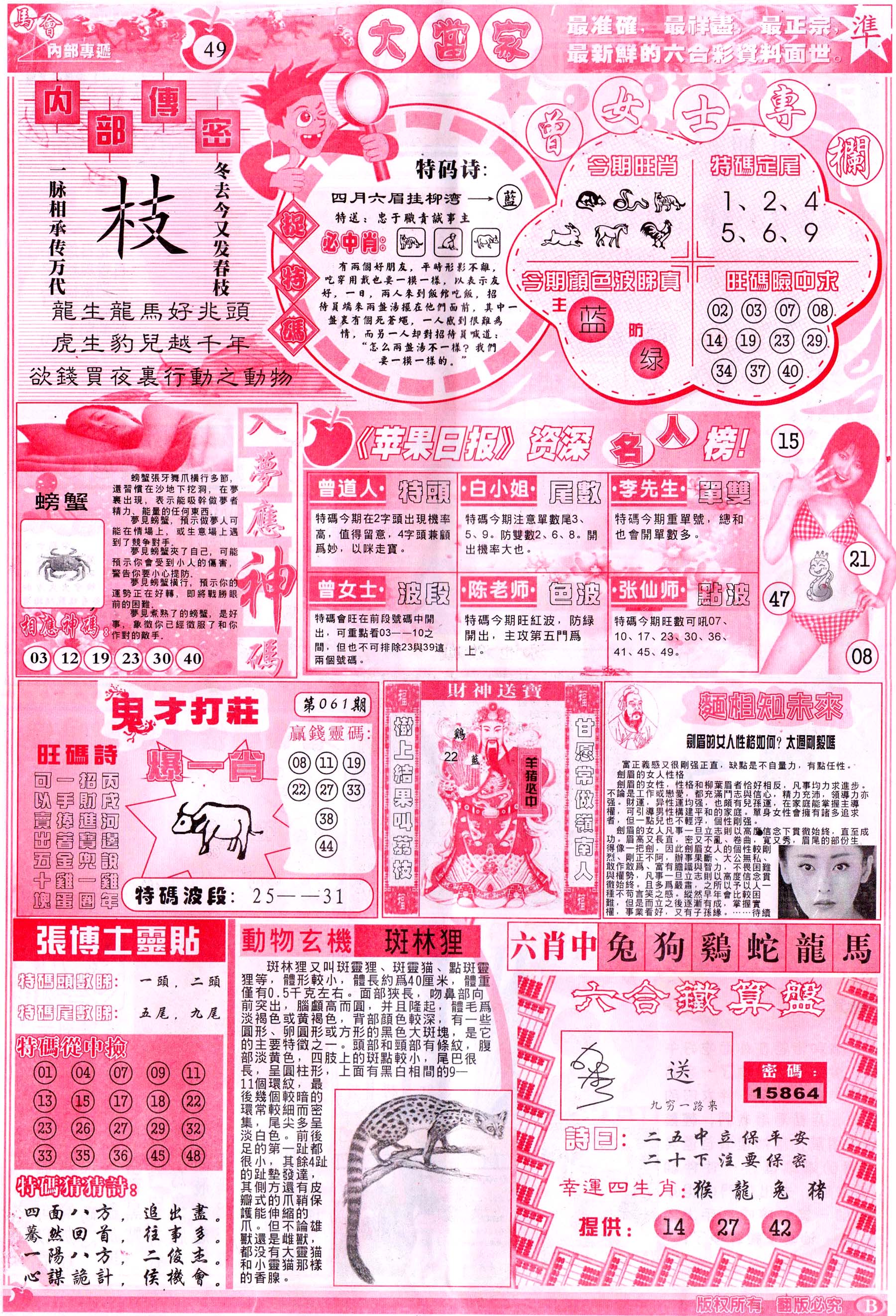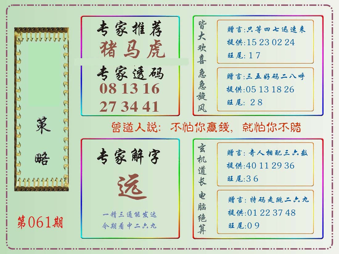 | 063 | 六合禅机A | 064 | 六合禅机B | 069 | 特 新 报A | 070 | 特 新 报B | |||||||||||||||||||||||||||||||||||||||||||||||||||