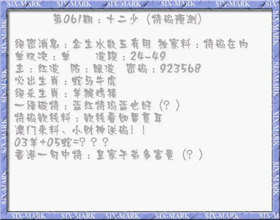 | 853 | 白小姐杀波段 | 853a | 白小姐杀波段 | 854 | 白小姐传密(精选) | 855 | 天线宝宝 | |||||||||||||||||||||||||||||||||||||||||||||||||||