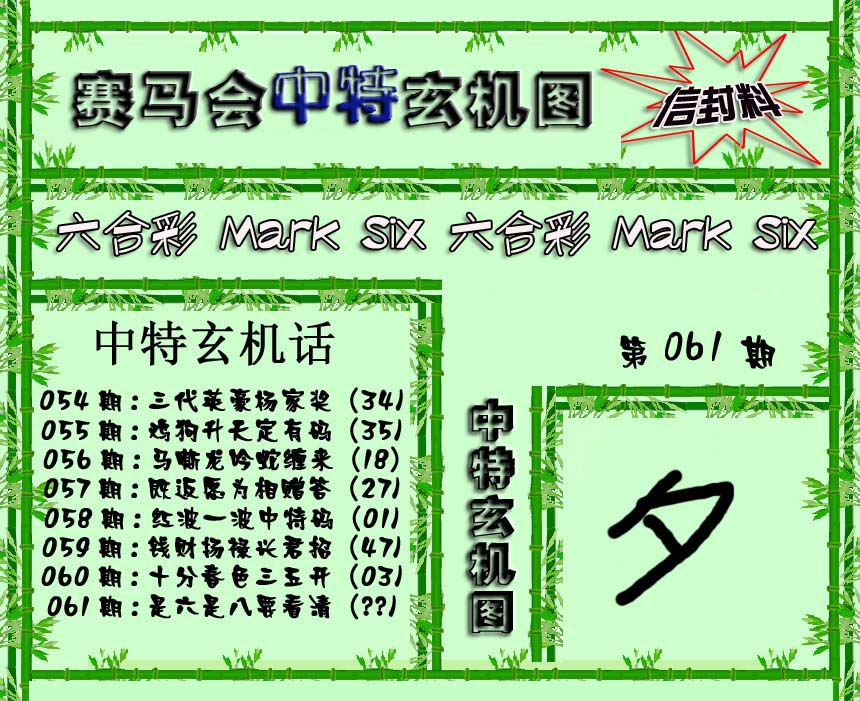 | 533 | 识破玄机 | 553 | 大劲赏 | 150 | 赢家家 | 156 | 内部透码(信封) | |||||||||||||||||||||||||||||||||||||||||||||||||||
