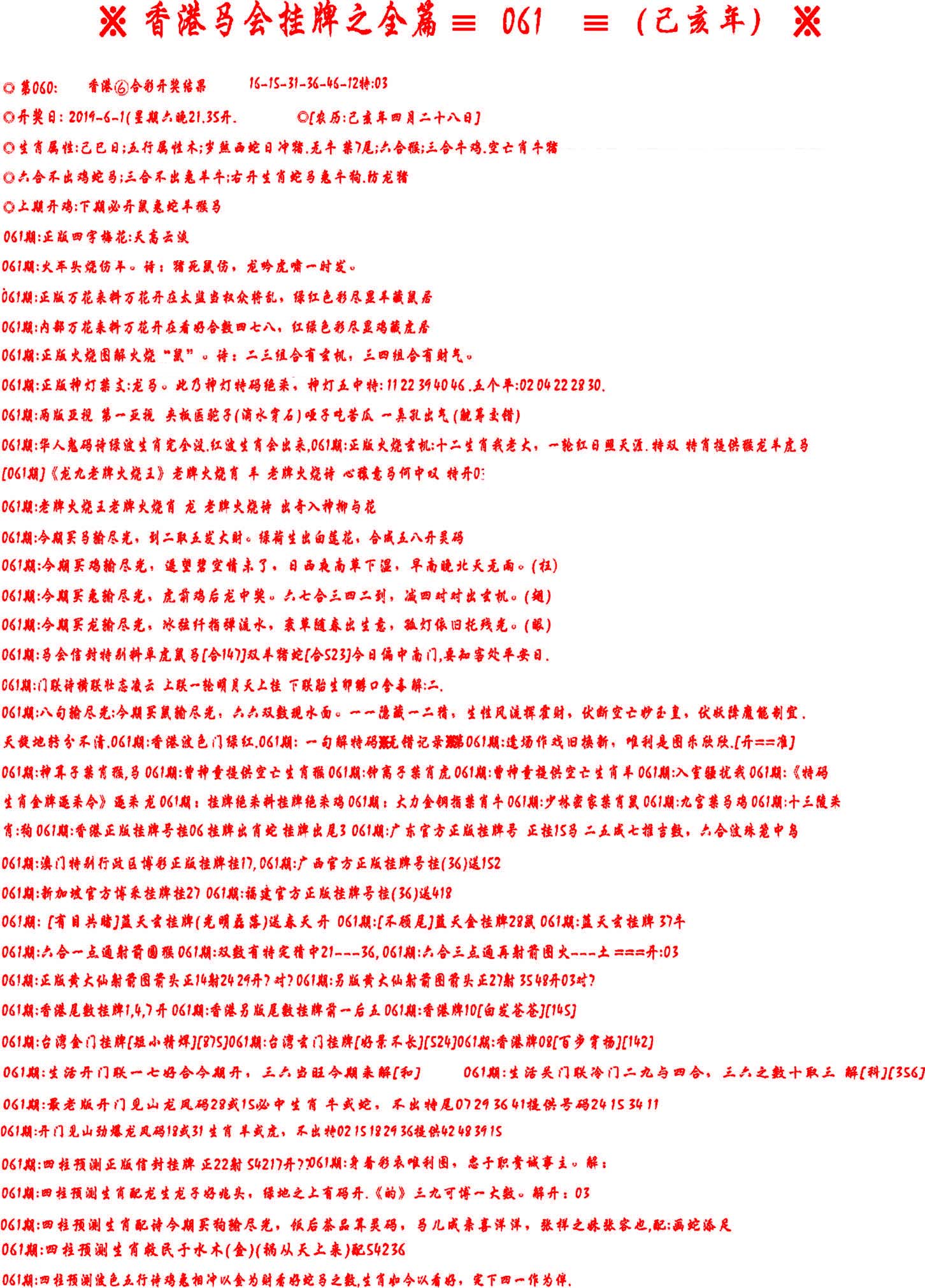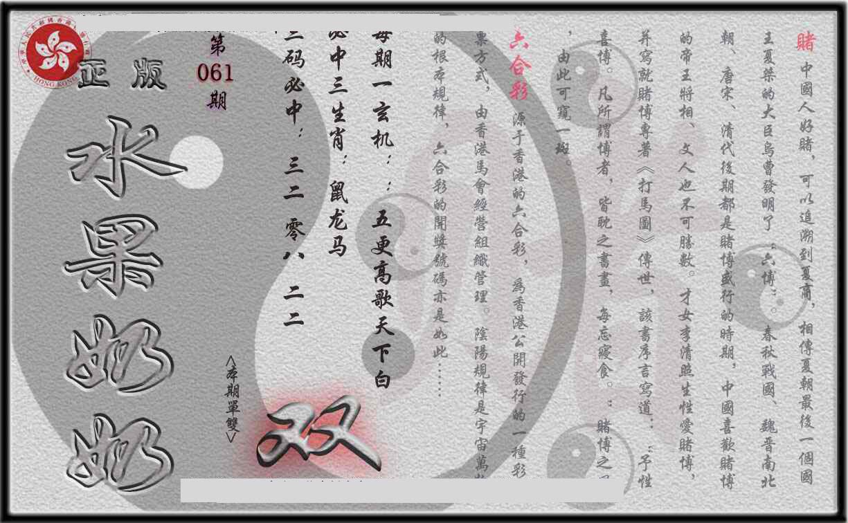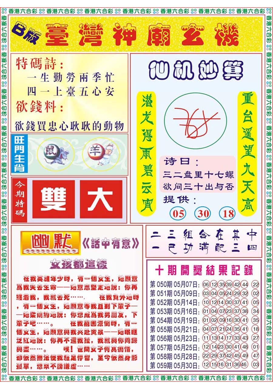 | 065 | 香港神算 | 066 | 澳门三合图 | 067 | 台湾神算通 | 068 | 六彩阴阳图 | |||||||||||||||||||||||||||||||||||||||||||||||||||