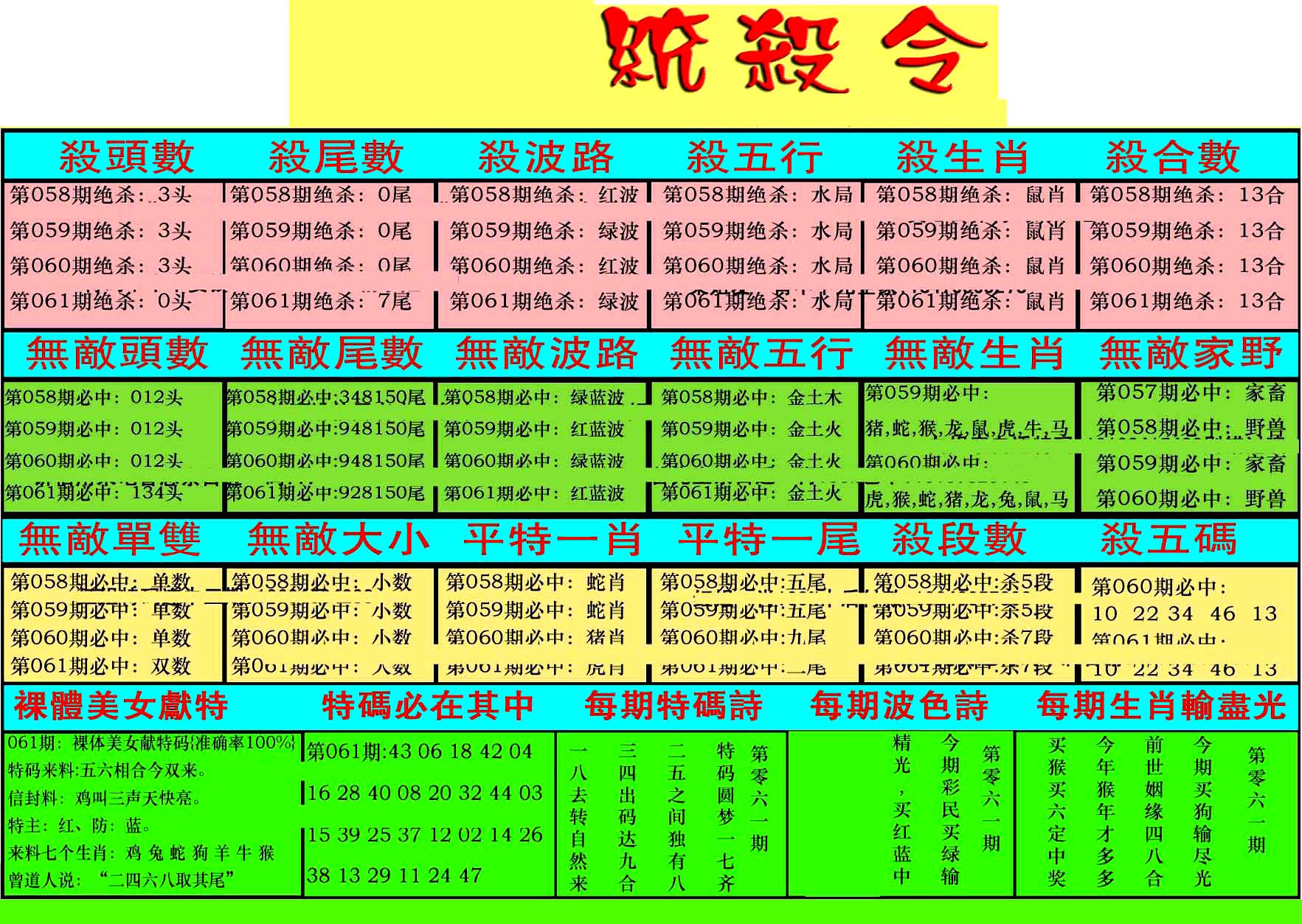 | 1659 | 另二代孔明报 | 1660 | 马经平特图 | 1661 | 杀杀杀A | 1662 | 杀杀杀B | |||||||||||||||||||||||||||||||||||||||||||||||||||