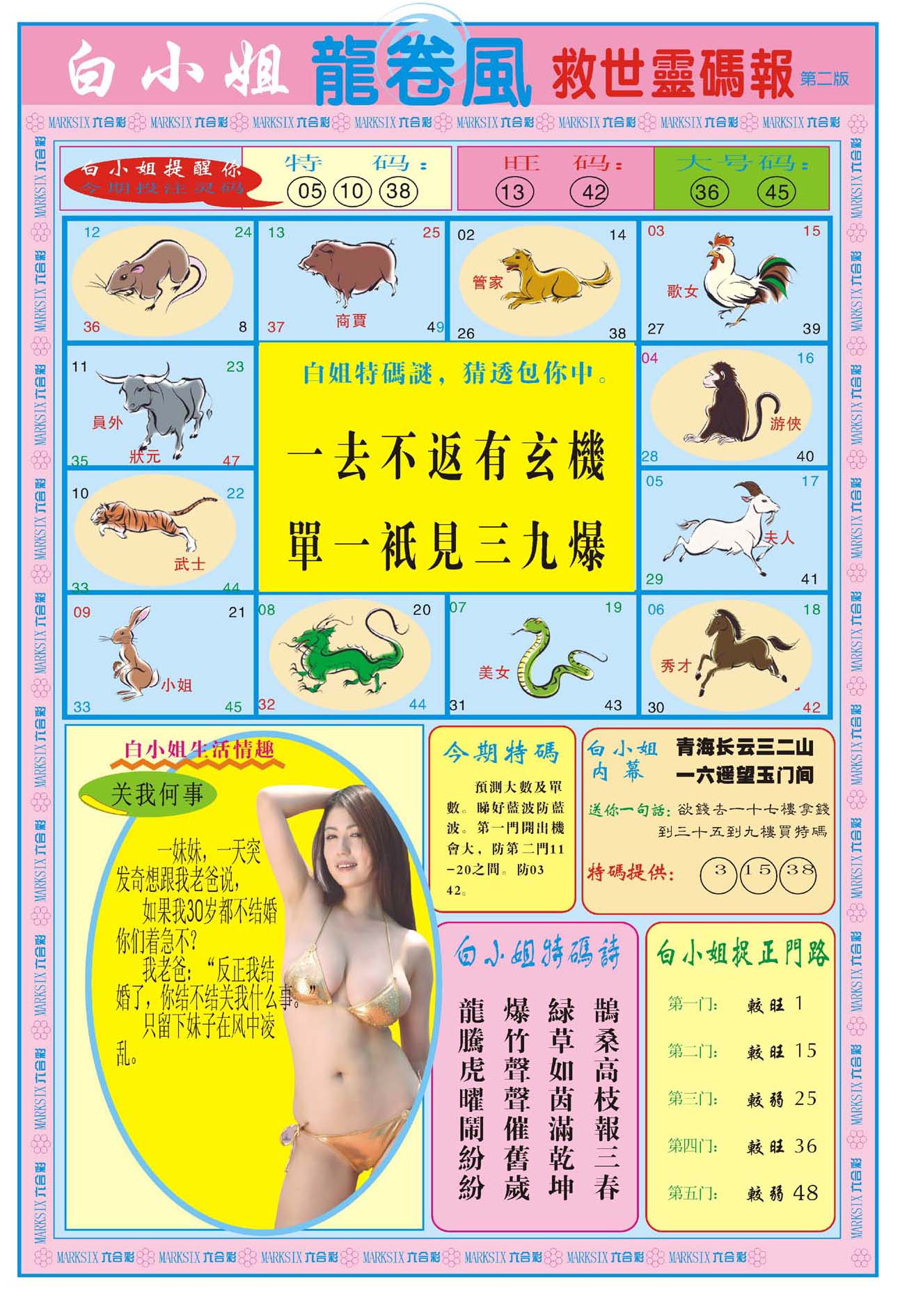 | 1336 | 统一玄机报 | 1337 | 正宗青龙五鬼报A | 1338 | 正宗青龙五鬼报B | 1339 | 美女六肖报 | |||||||||||||||||||||||||||||||||||||||||||||||||||