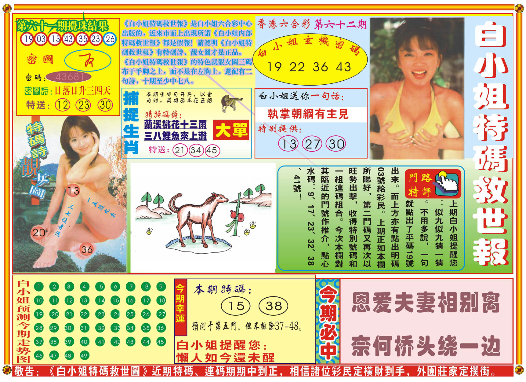 | 1700 | 冚家富贵B | 1701 | 管家婆财经版 | 1702 | 管家婆新传密 | 1703 | 香港三八婆密报 | |||||||||||||||||||||||||||||||||||||||||||||||||||